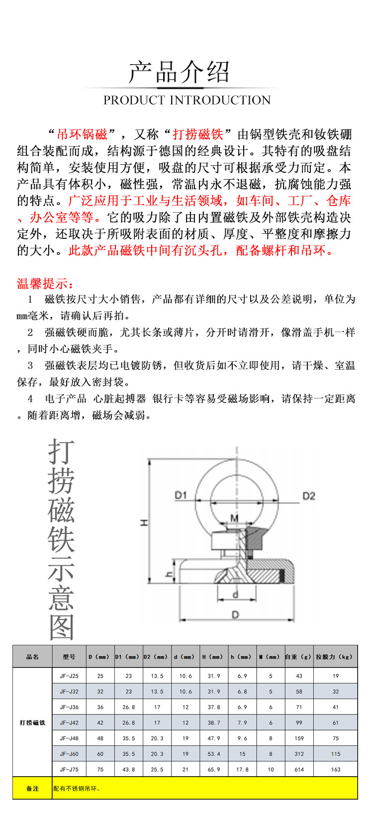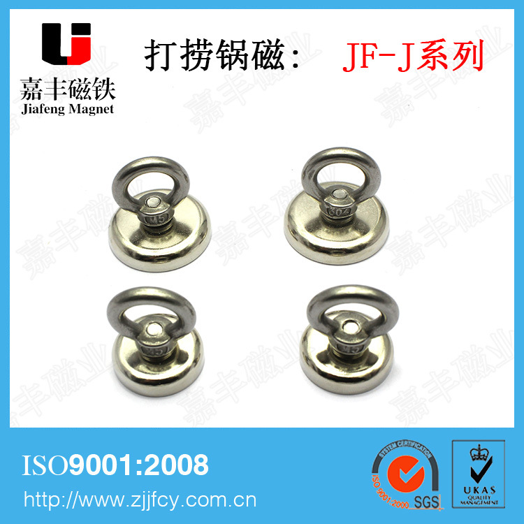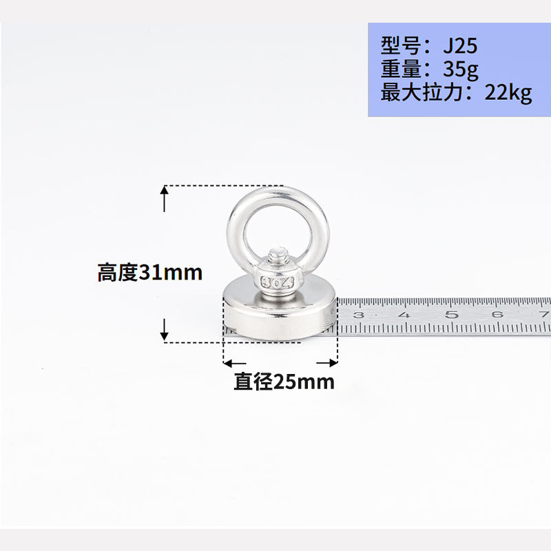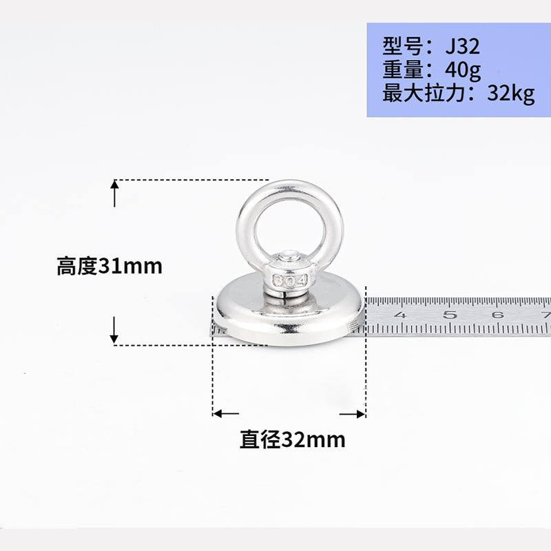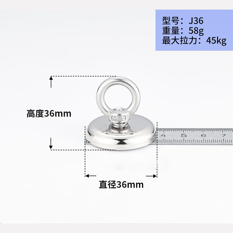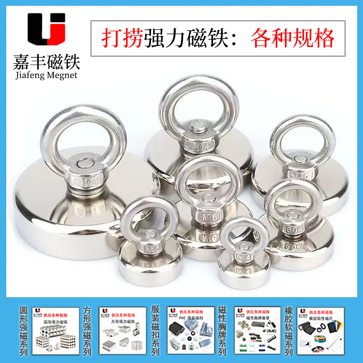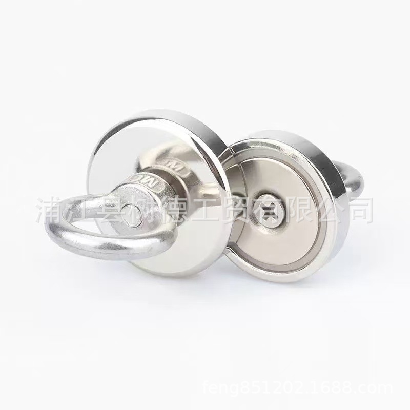 强力打捞磁铁圆形强磁吊环磁铁深水打捞磁铁吸盘钕铁硼强力吸铁石