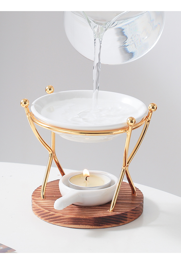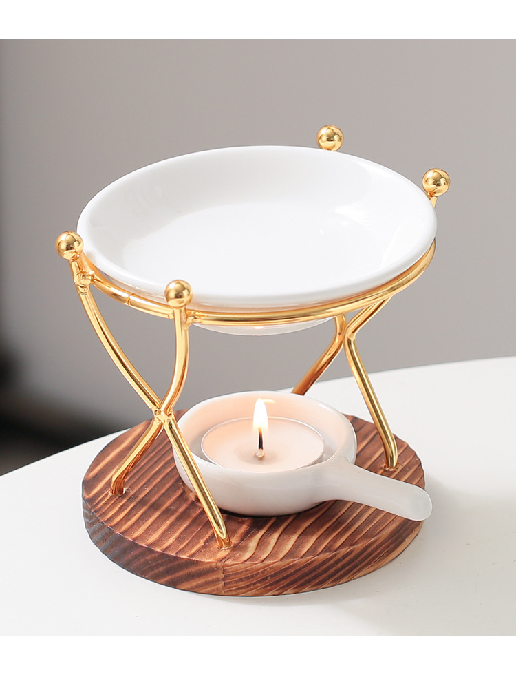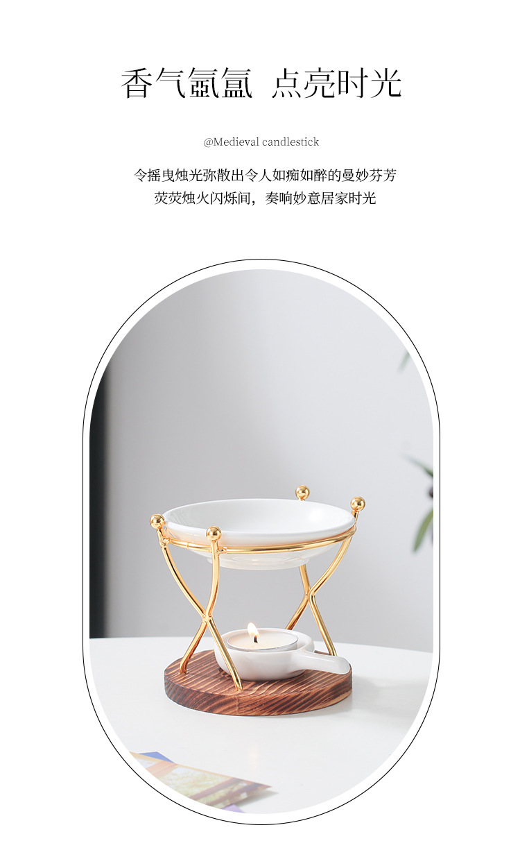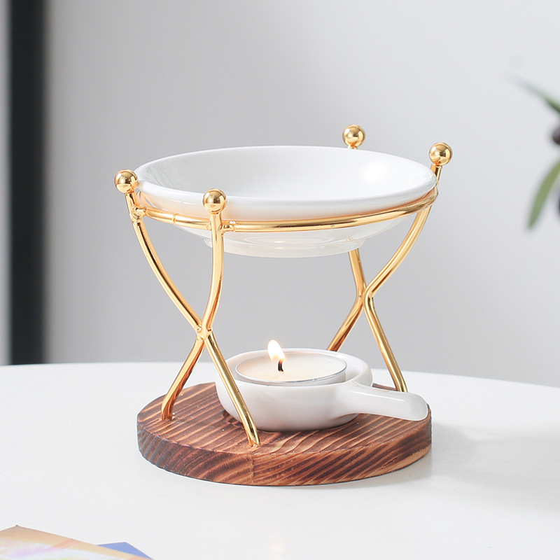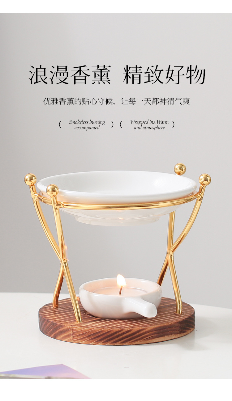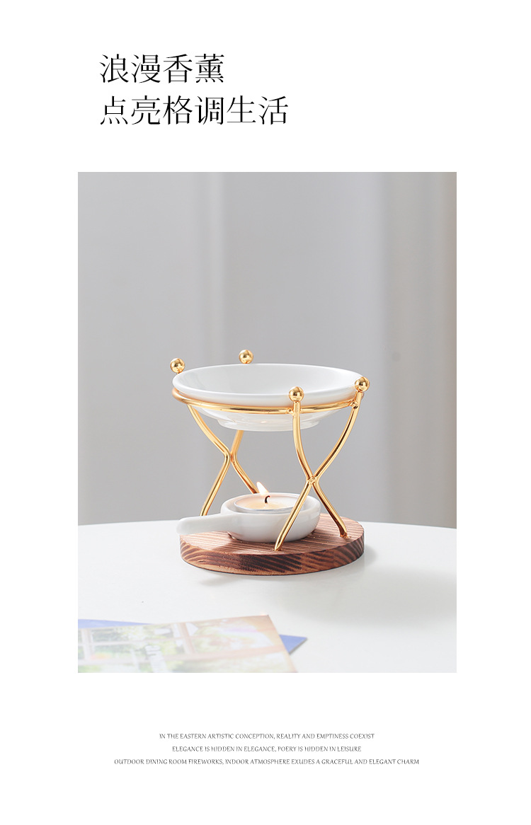 双人舞 烧木底铁艺香薰炉精油灯蜡烛灯炉香薰机跨境亚马逊外贸