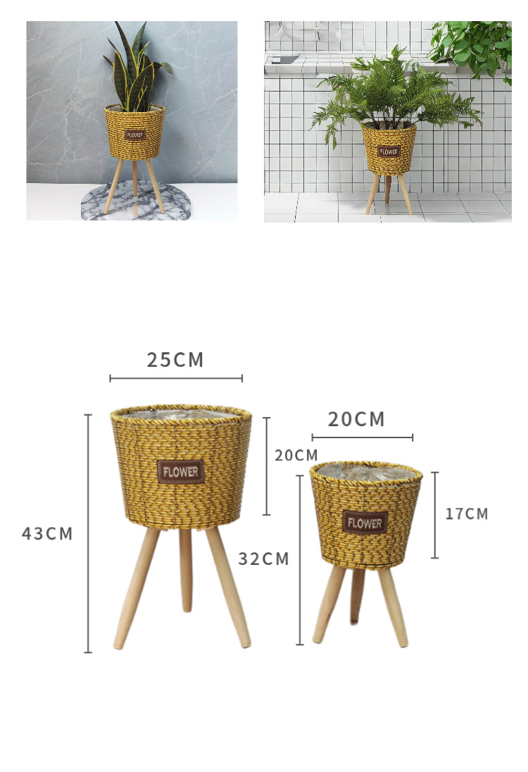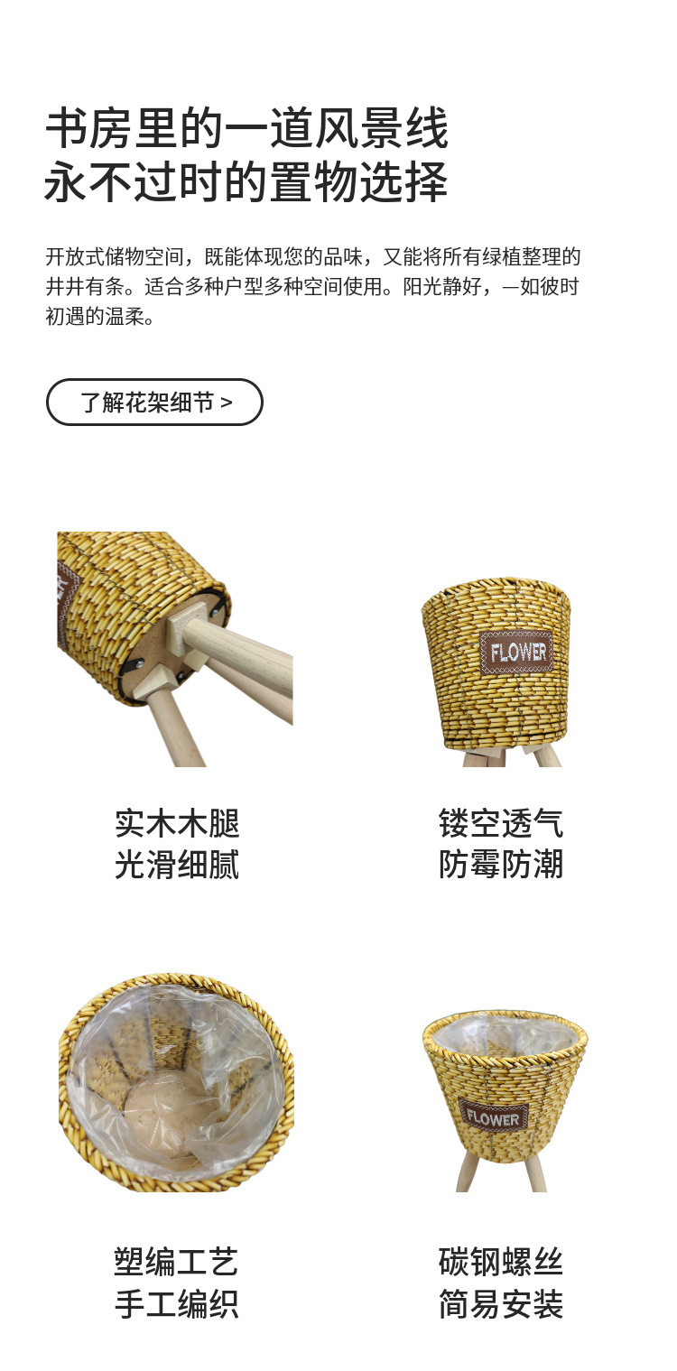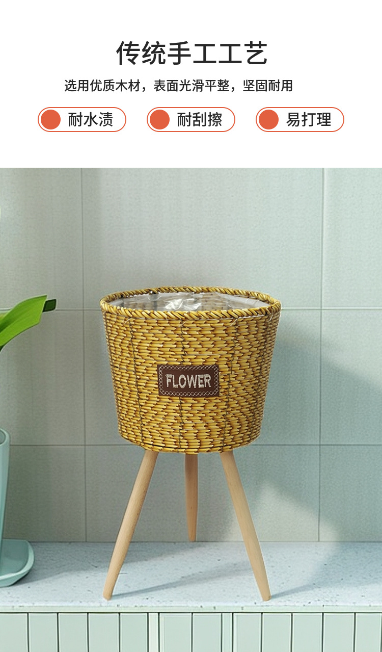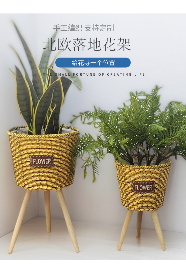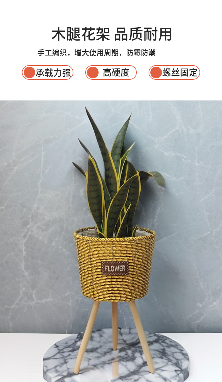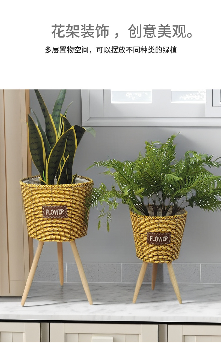 北欧2023新款竹条编织耐用结实高脚花架亚马逊客厅室内外阳台花盆