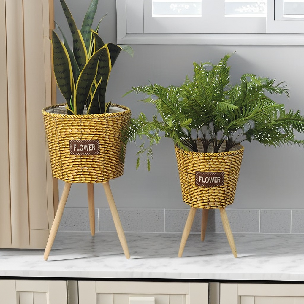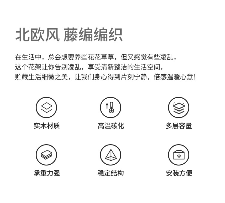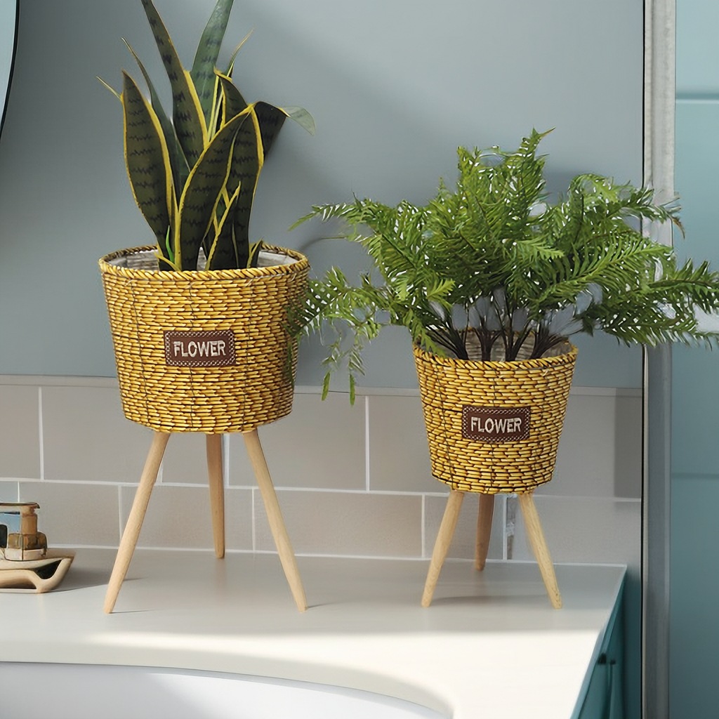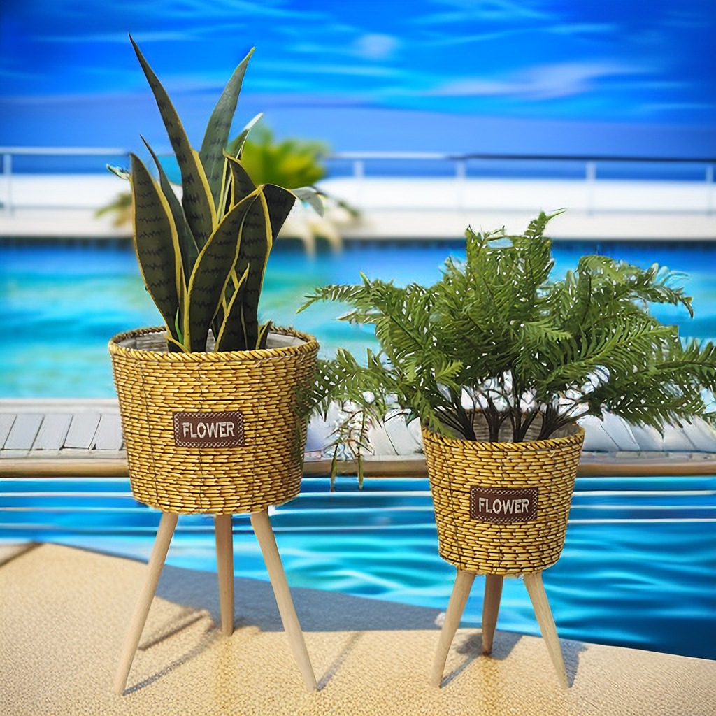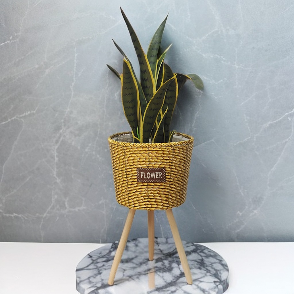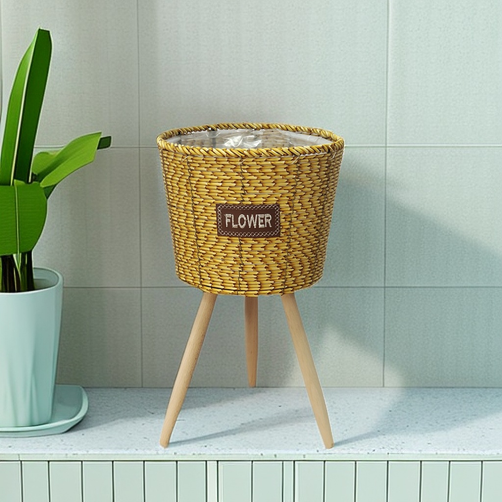 北欧2023新款竹条编织耐用结实高脚花架亚马逊客厅室内外阳台花盆