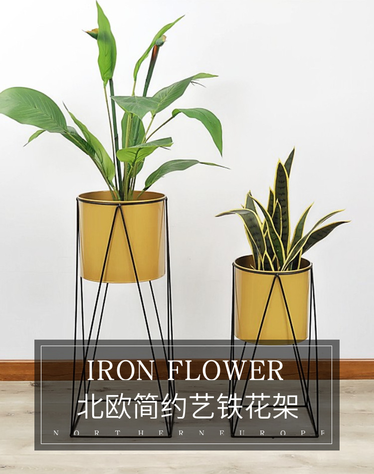 跨境铁艺花架花盆架简约桌面花架摆件装饰客厅金色花盆架落地花篮