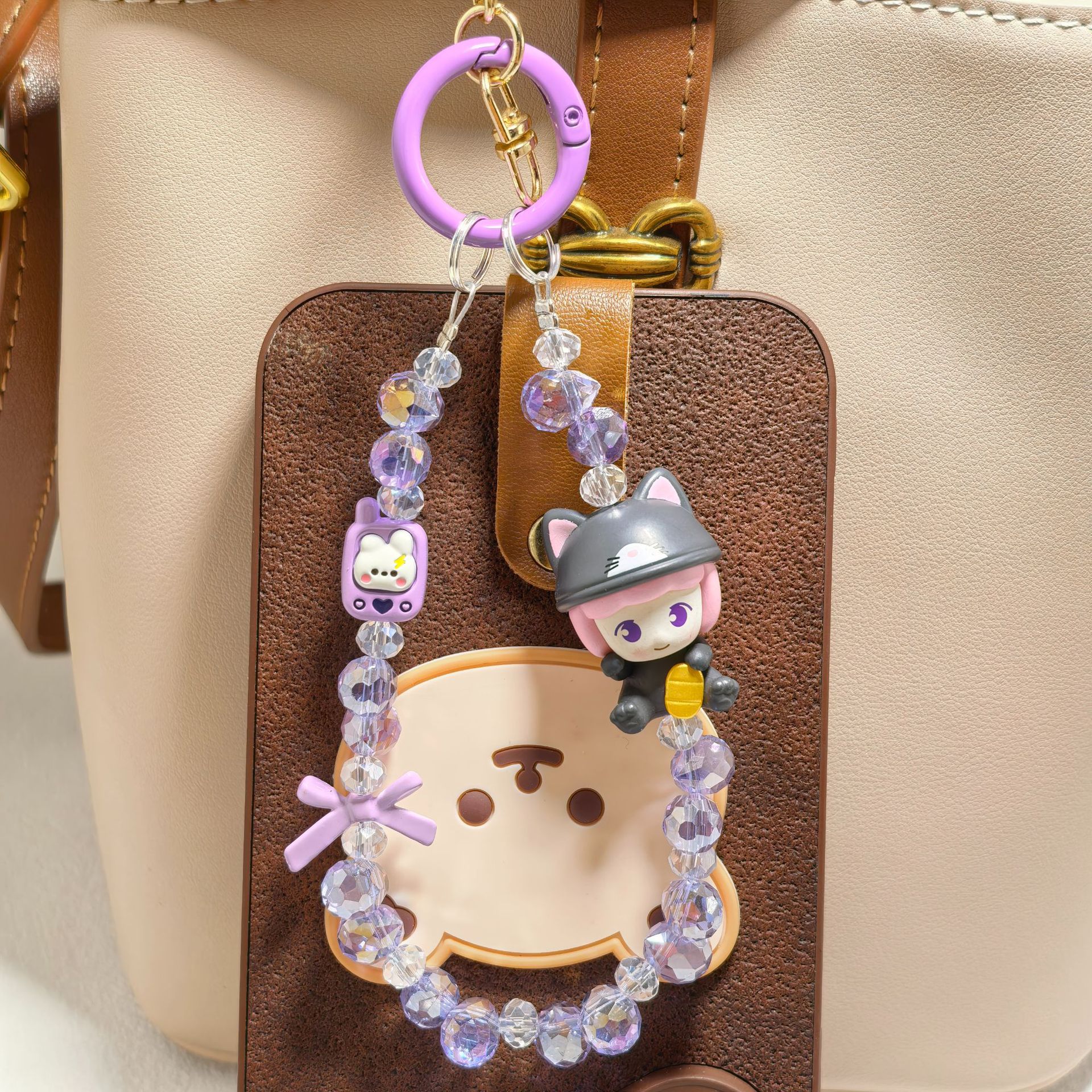 正品泡泡玛特萌粒水晶系列通孔手链饰品批发