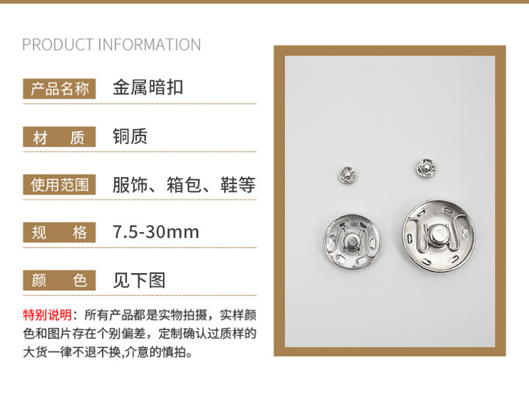 圆形内衣暗扣大衣纽扣隐形手缝金属按扣铜皮衣服子母扣掀扣扣子
