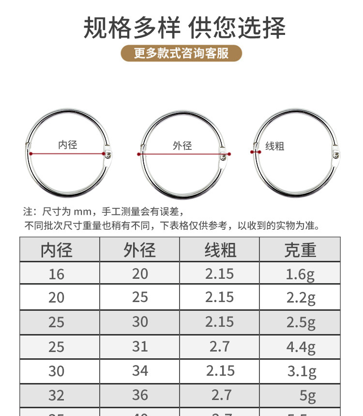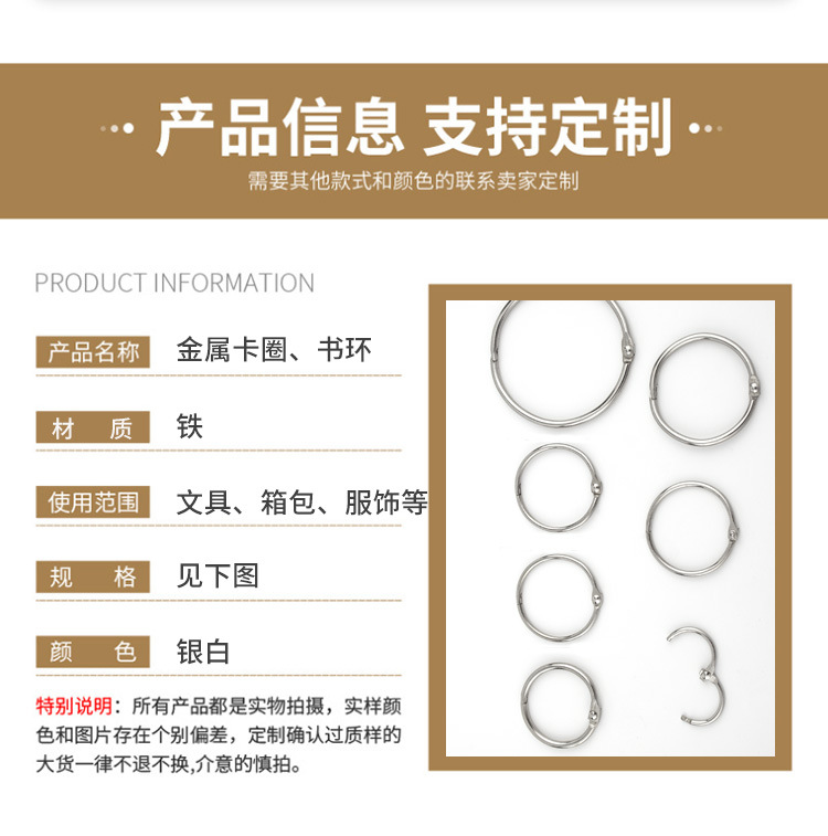 厂家直供开口环活动开口圈金属活动书圈挂历圈卡片环相册装订圈