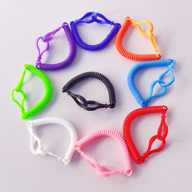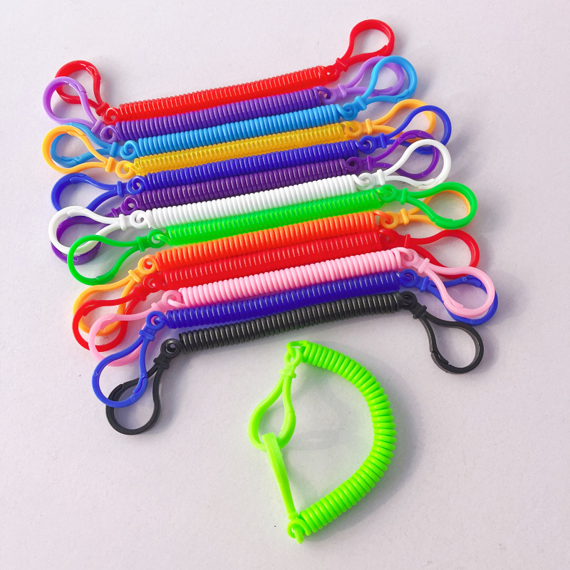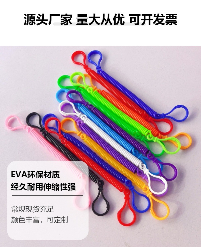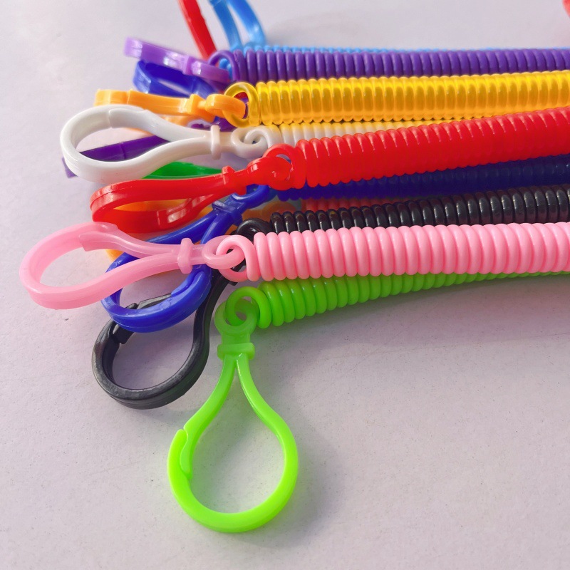 厂家批发彩色塑料扣弹簧绳双头灯泡扣弹簧链玩具闪光球伸缩吊绳
