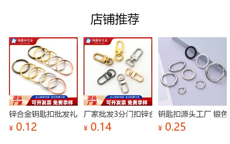 厂家批发龙虾扣平圈旋转8字扣链条配件玩具公仔diy挂件金属钥匙扣