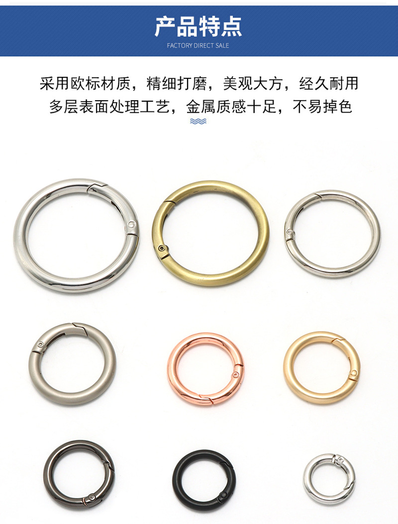 厂家直销金属钥匙扣 多层挂镀弹簧圈开口圈 高保色圆形扣环登山扣