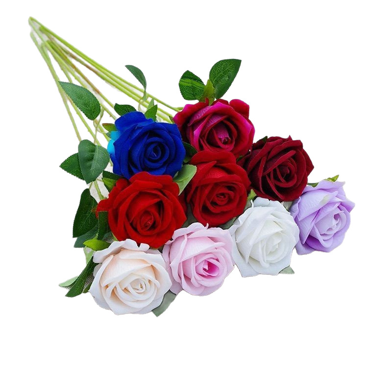 单支绒布玫瑰花婚庆家居装饰花情人节花束花墙插花假花