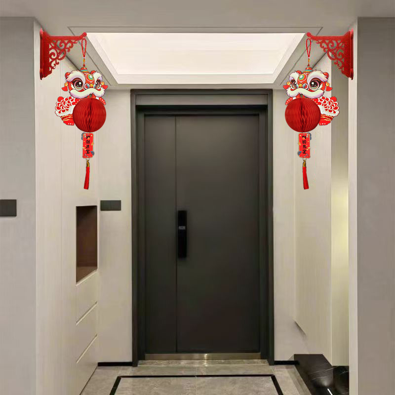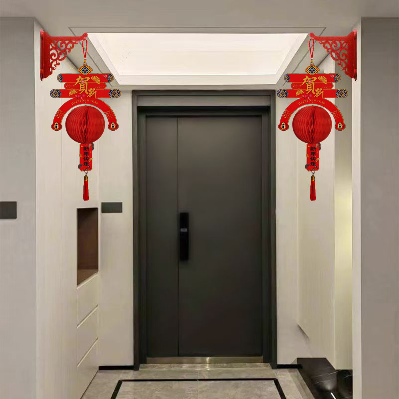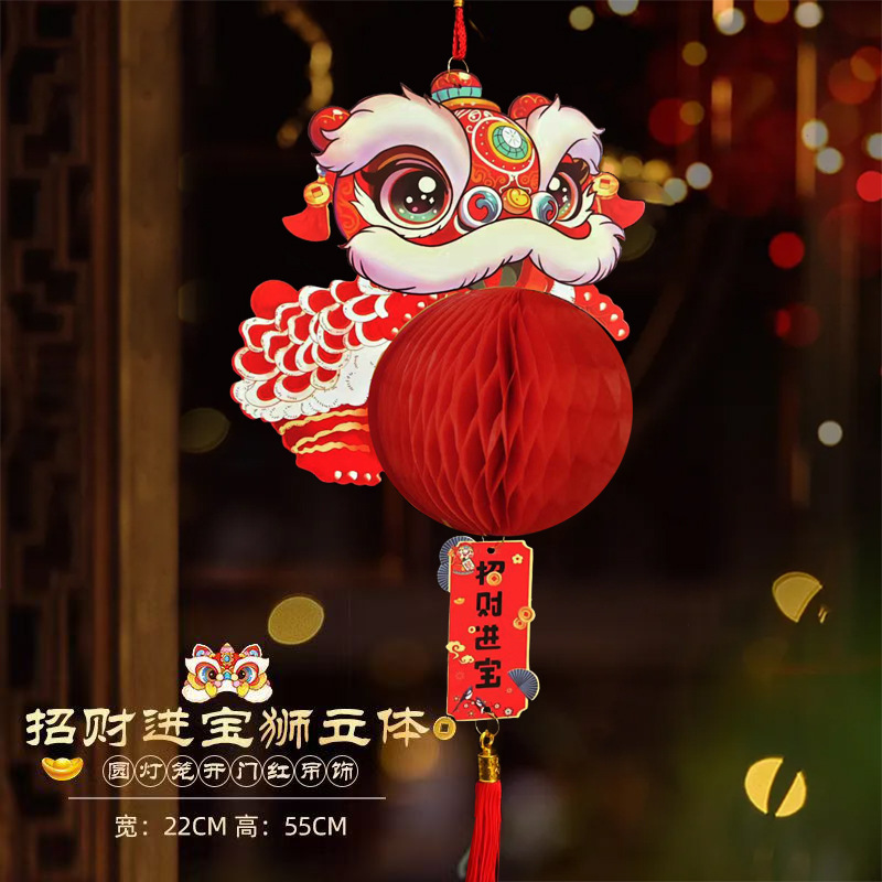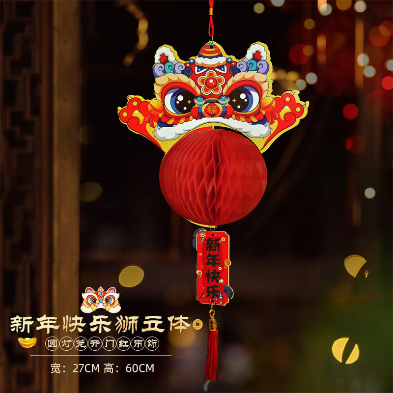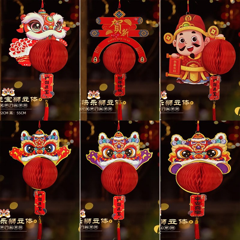 2025新年装饰双面彩印立体挂卡春节元旦年货灯笼挂件门店布置用品