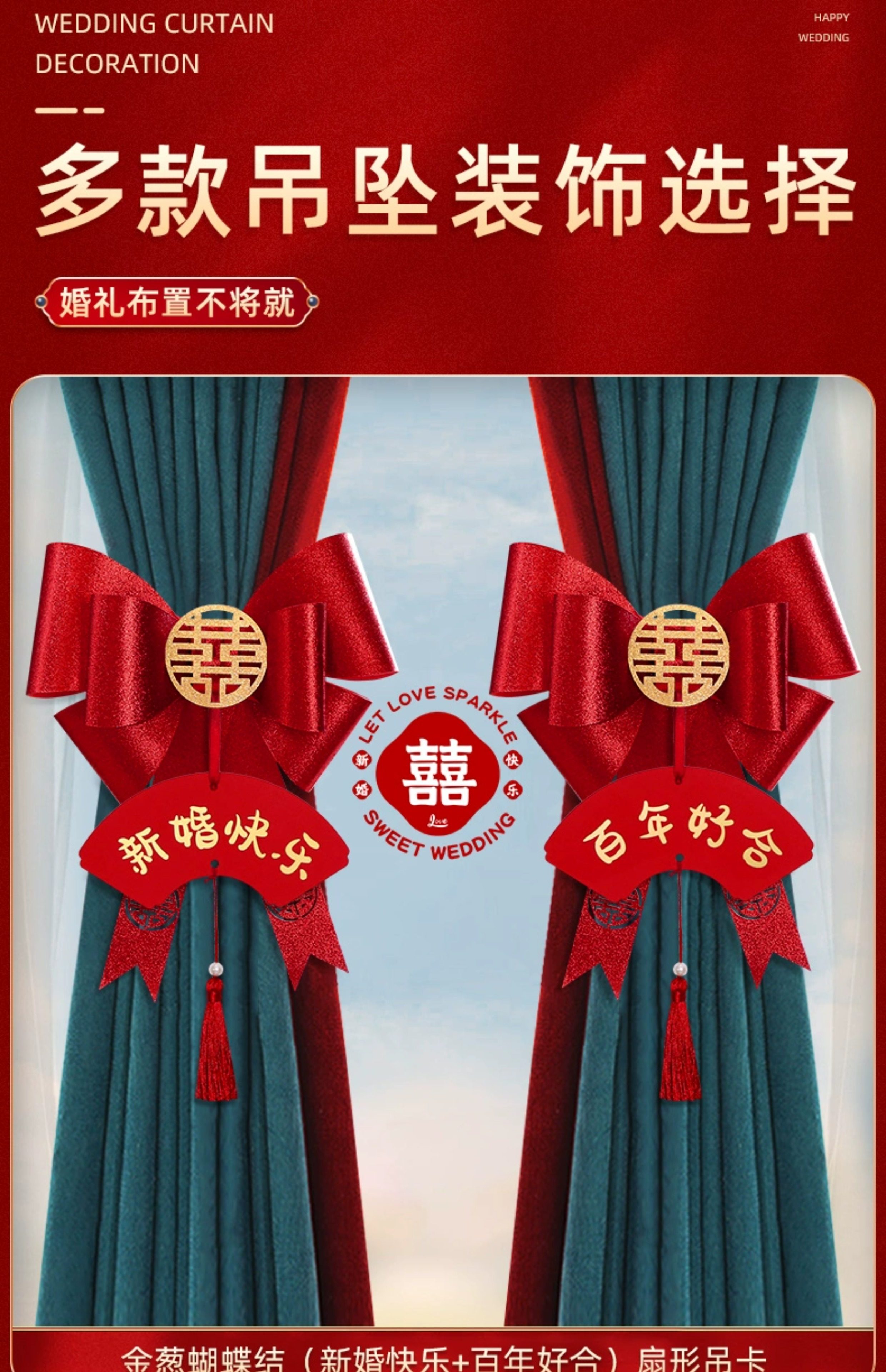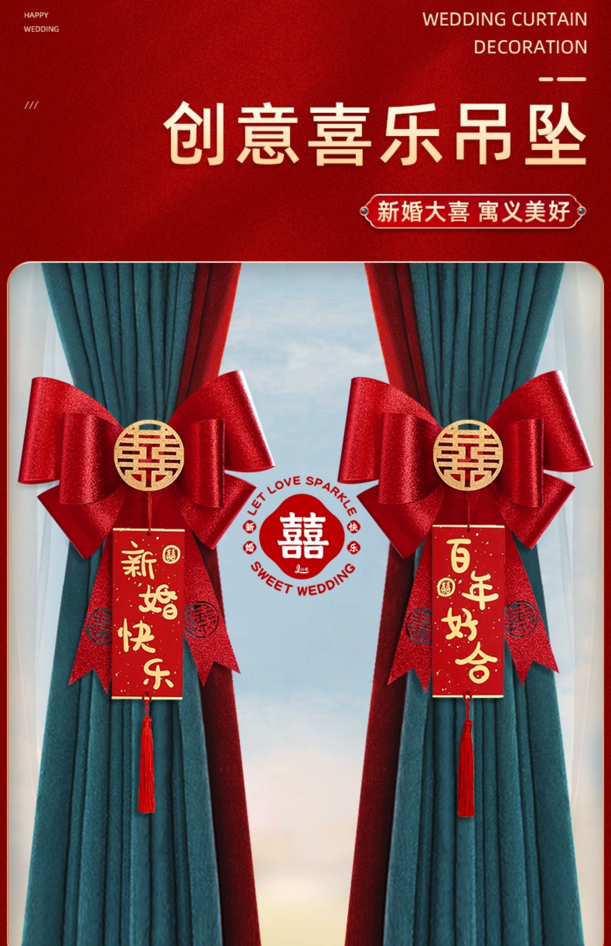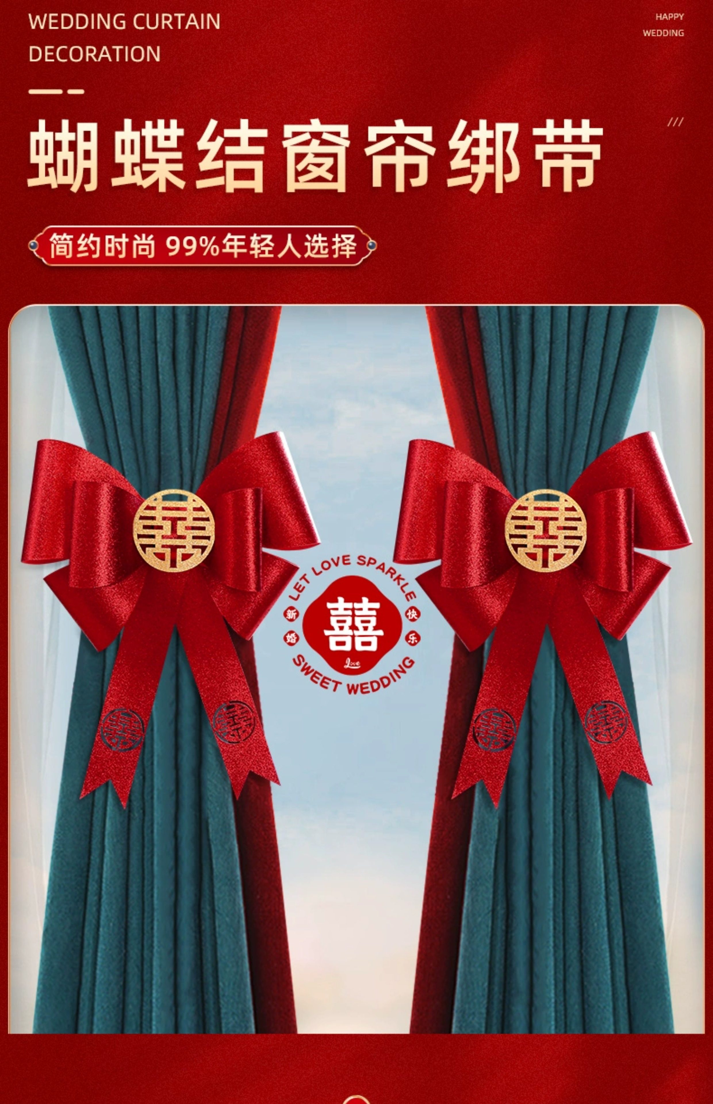 结婚窗帘绑带装饰婚房布置套装婚礼男方女方新房卧室房间客厅拉花