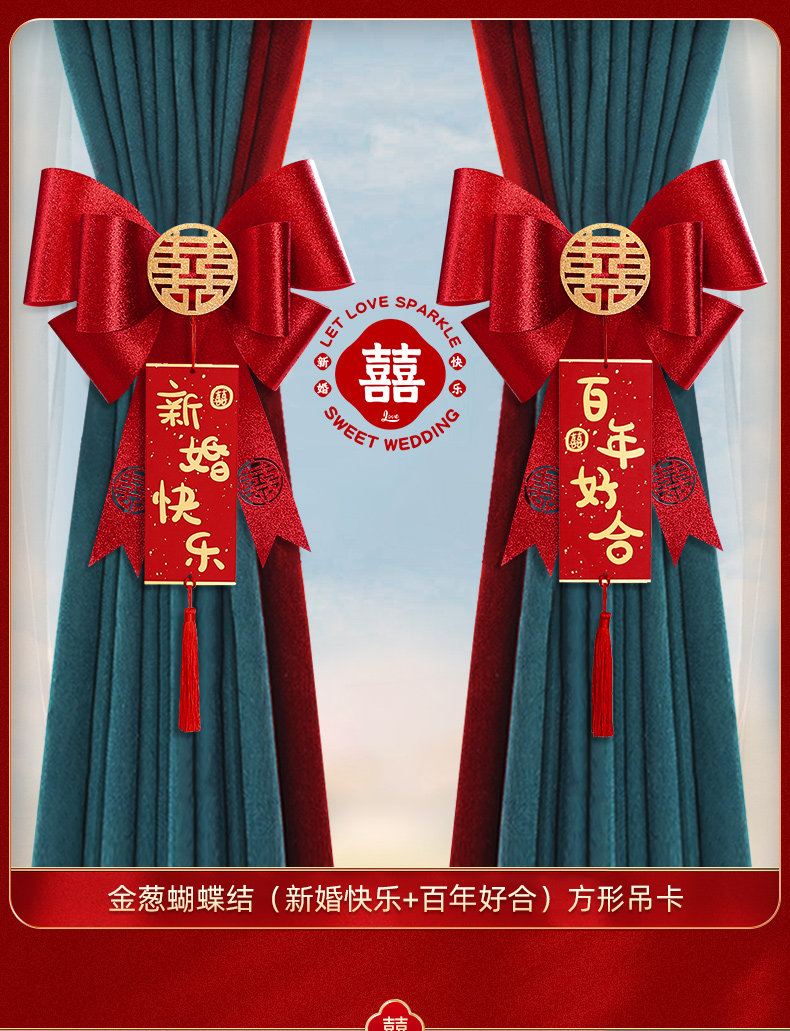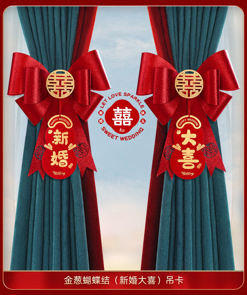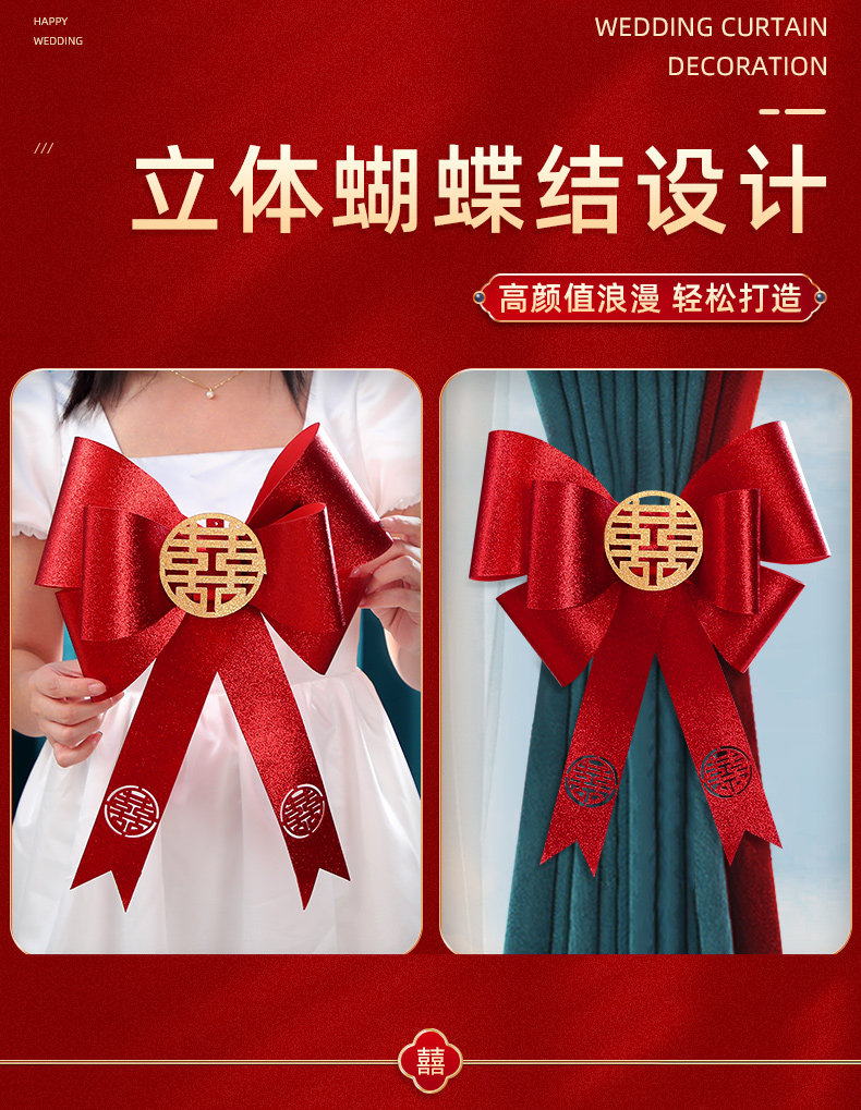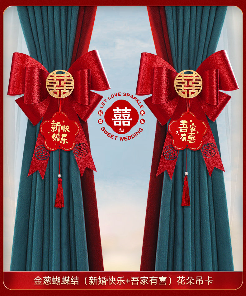 结婚窗帘绑带装饰婚房布置套装婚礼男方女方新房卧室房间客厅拉花