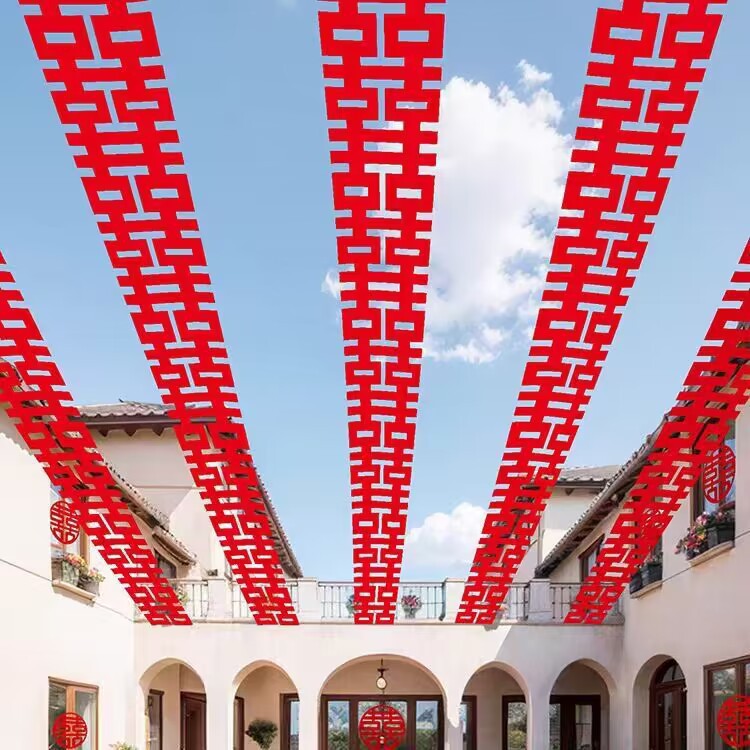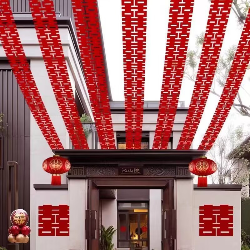 结婚礼长条喜字贴婚房布置套装农村庭院子装饰室外阳台囍字串挂件
