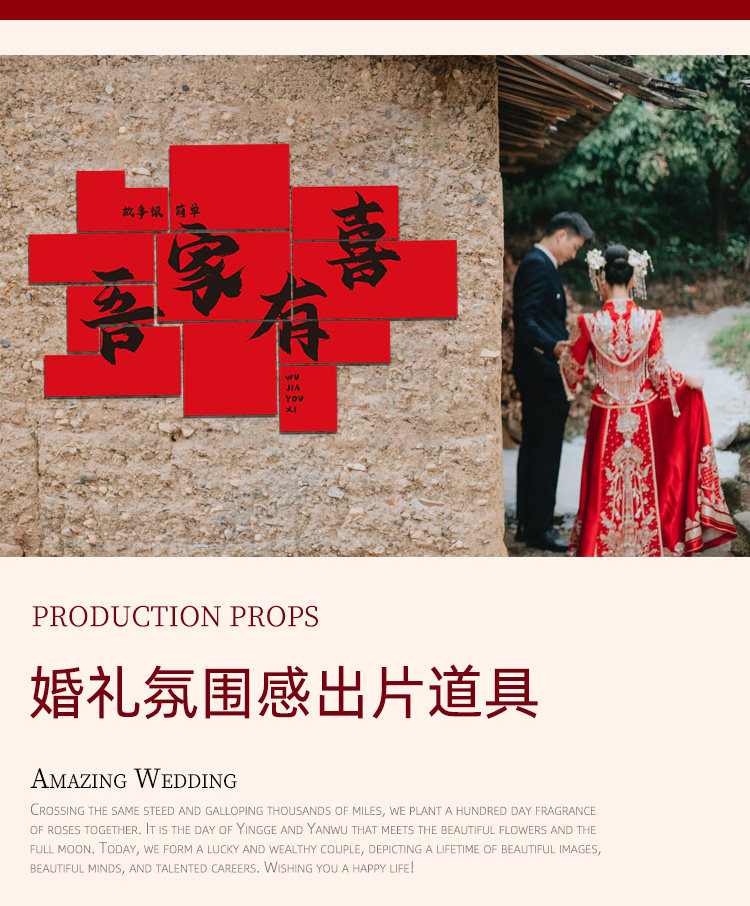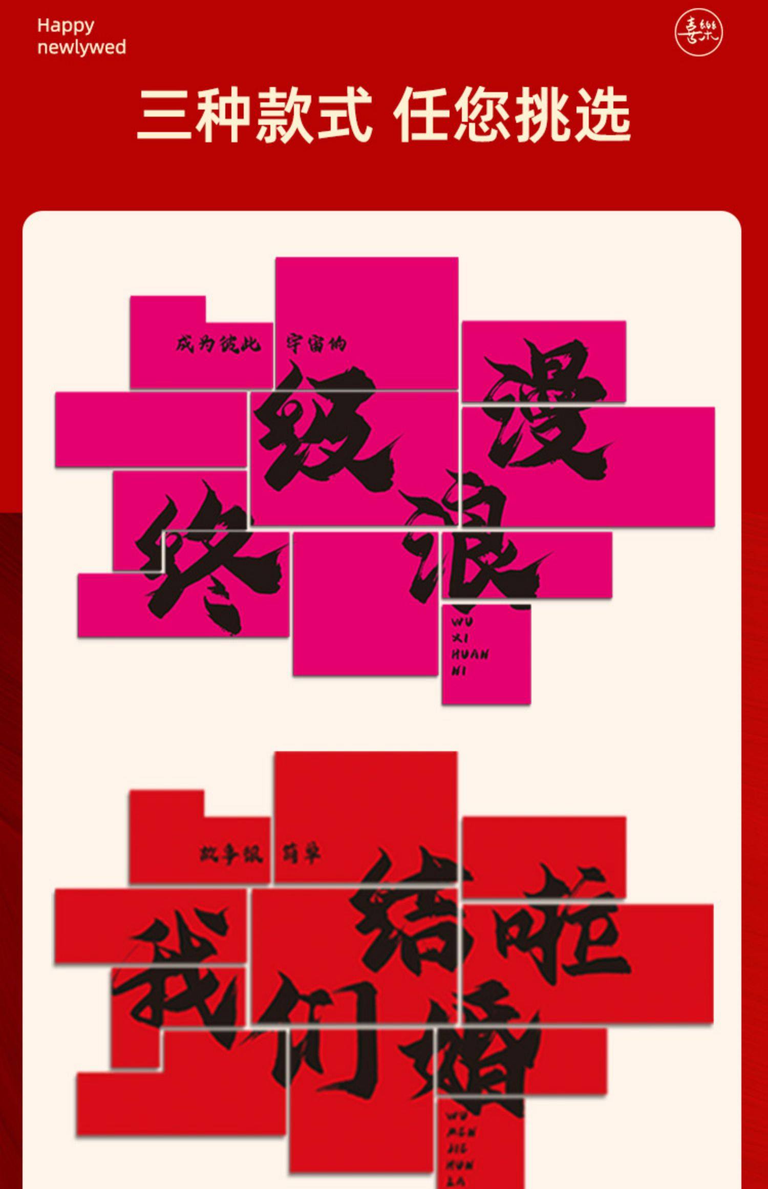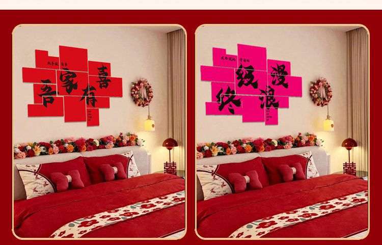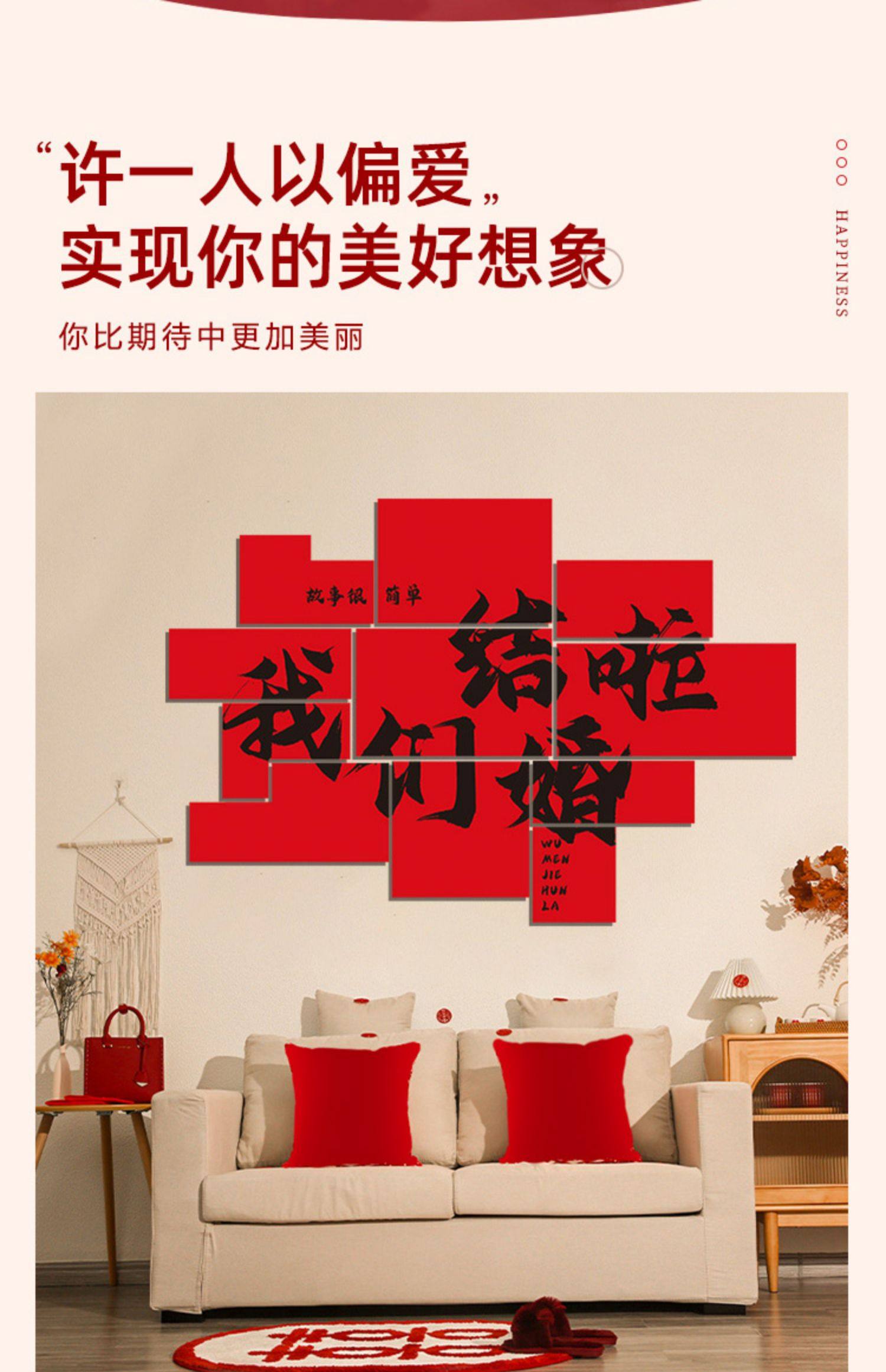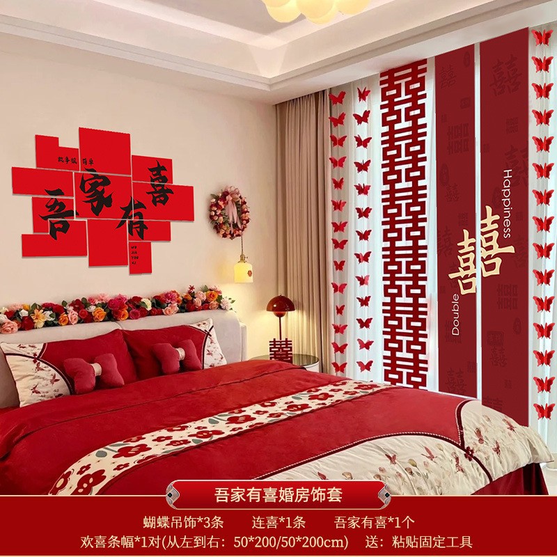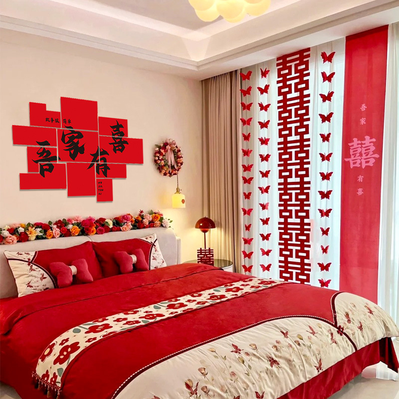 婚房布置套装结婚新房客厅男女方卧室沙发背景墙装饰婚礼喜字拉花