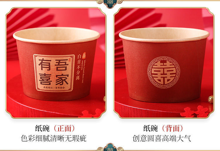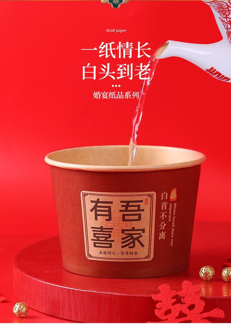 结婚一次性纸杯纸碗套装婚礼宴请喜杯子喜碗餐具婚宴酒席用品大全