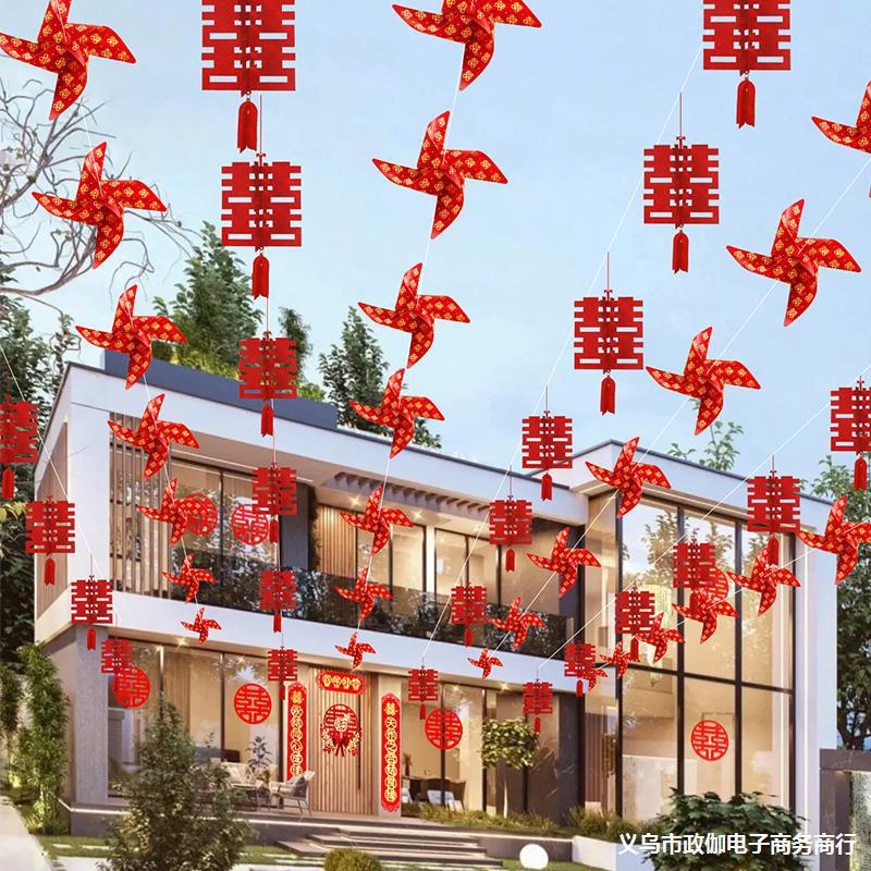 结婚用品院子庭院布置农村别墅婚房布置拉花风车婚庆婚礼现场浪漫