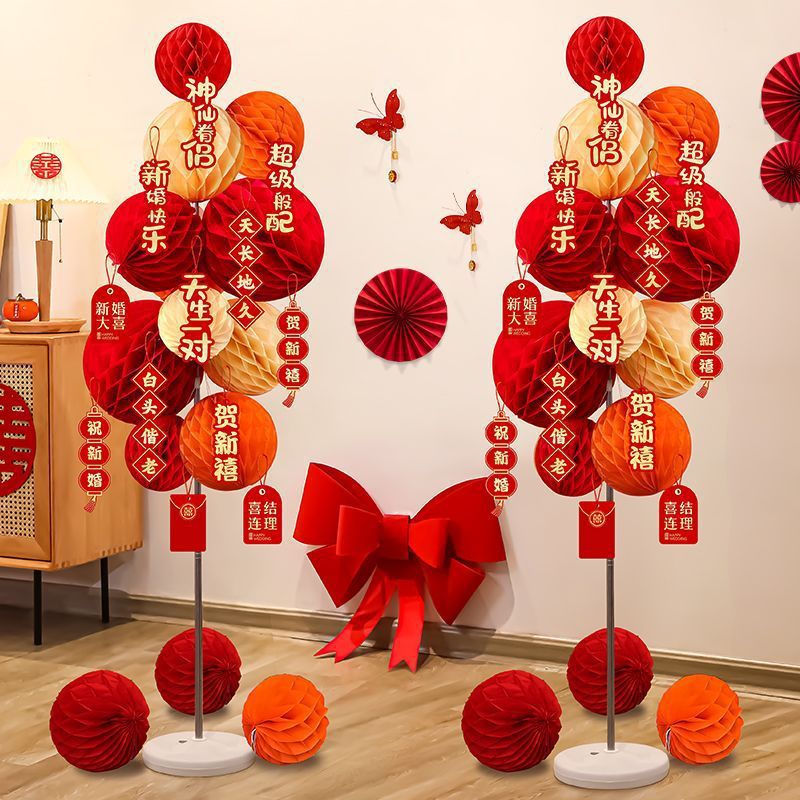 蜂窝球纸拉花灯笼年会订婚派对氛围装饰元宵背景布置商场活动挂饰