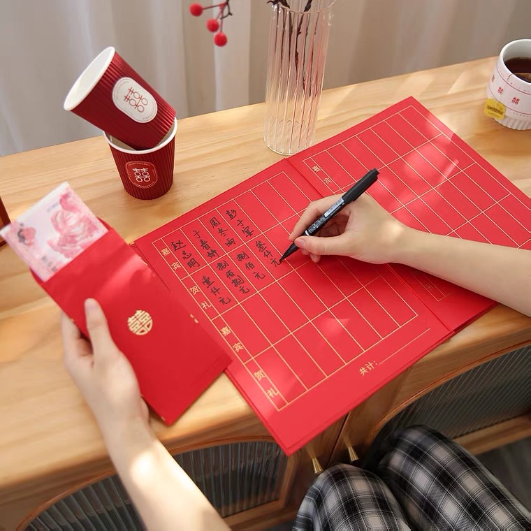 喜事礼金簿批发结婚用品新人婚礼签到本套装订婚嘉宾礼薄记账本