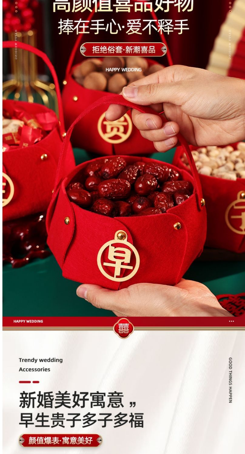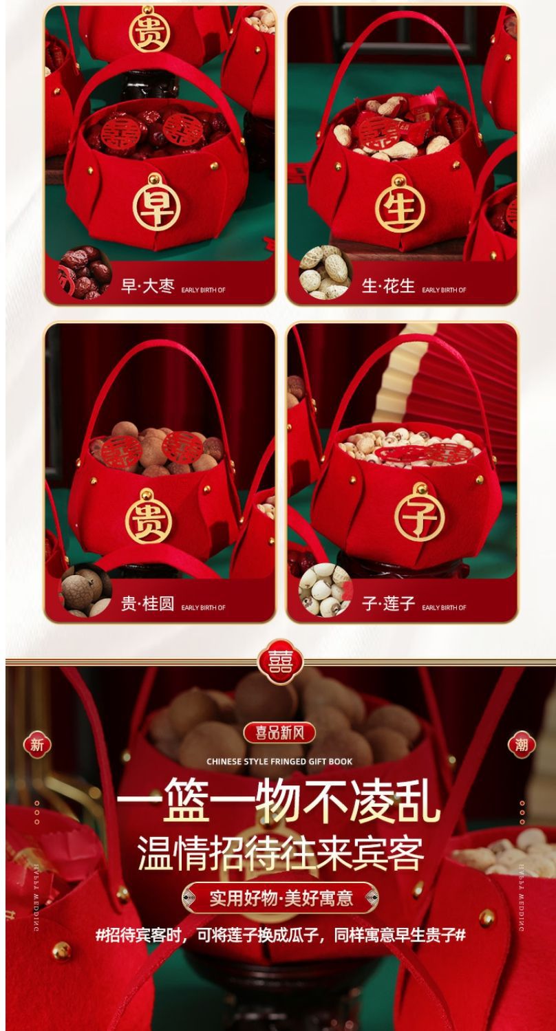 结婚用品大全早生贵子提篮模具压床娃娃摆件乾果盒订婚宴婚礼摆件