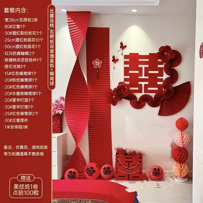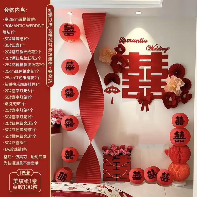 婚房布置套装结婚大喜字贴女方出阁房间装饰男方新房卧室酒店专用