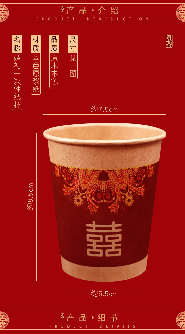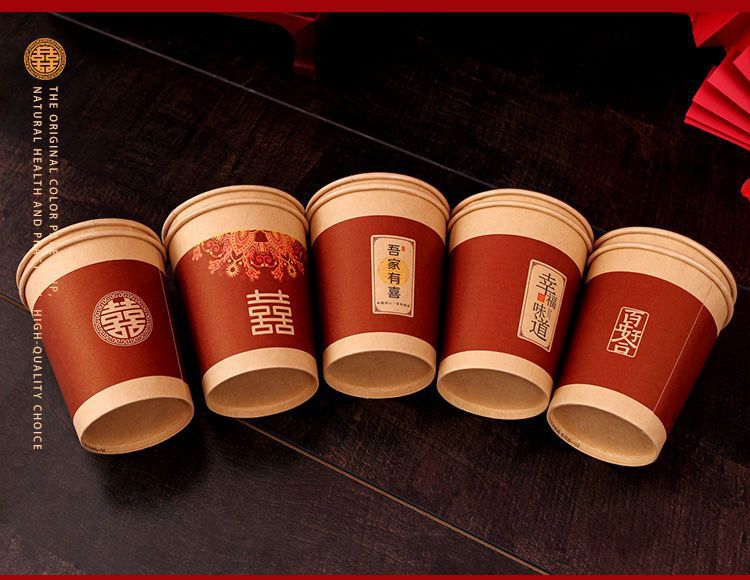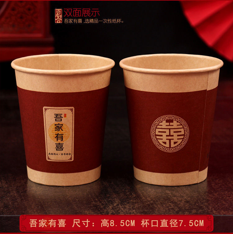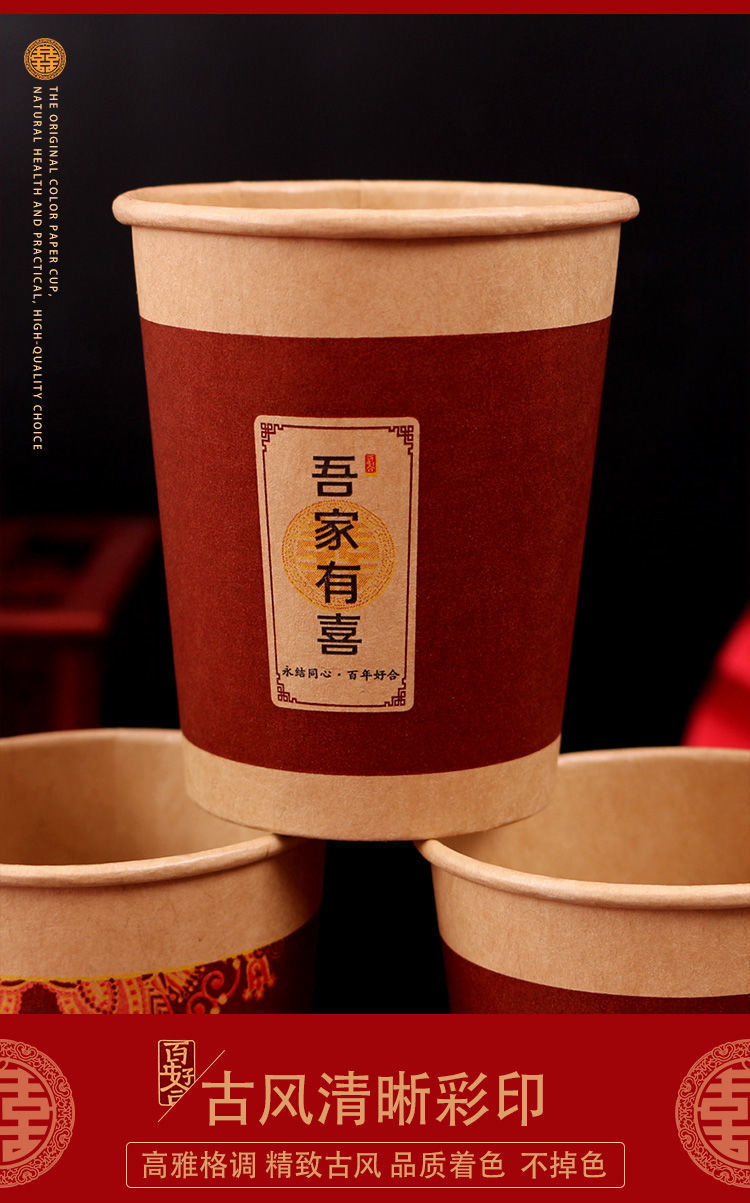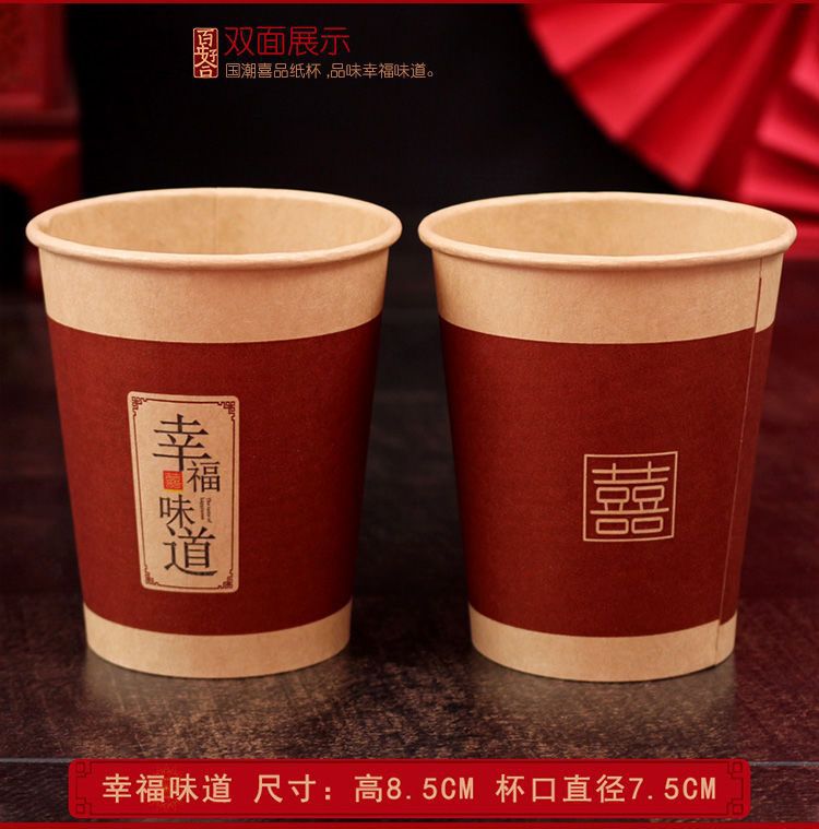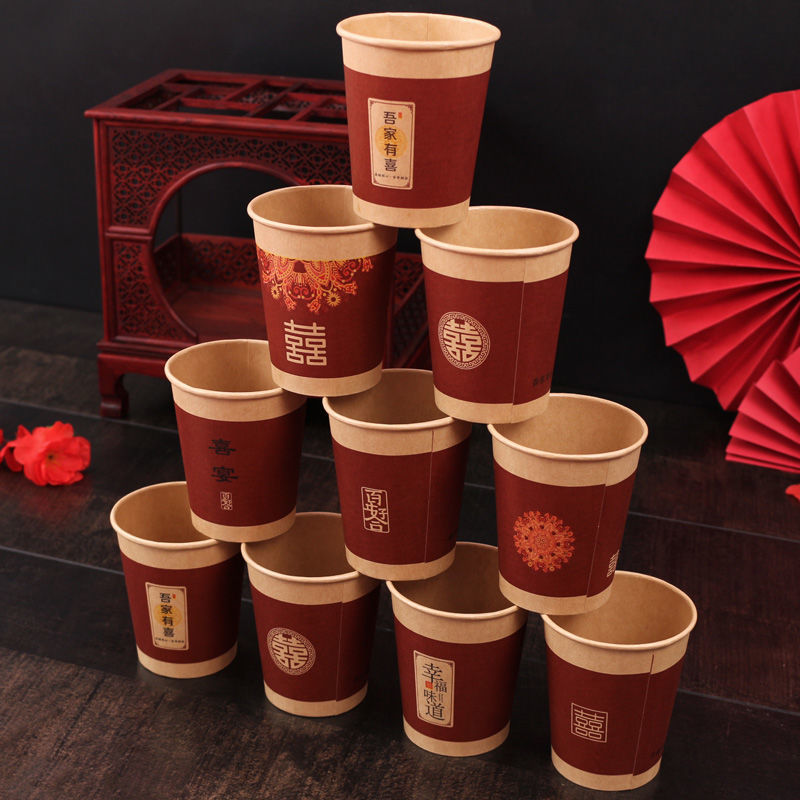 结婚纸杯婚礼家用喜字杯订婚喜事红色水杯婚庆用品大全一次性杯子