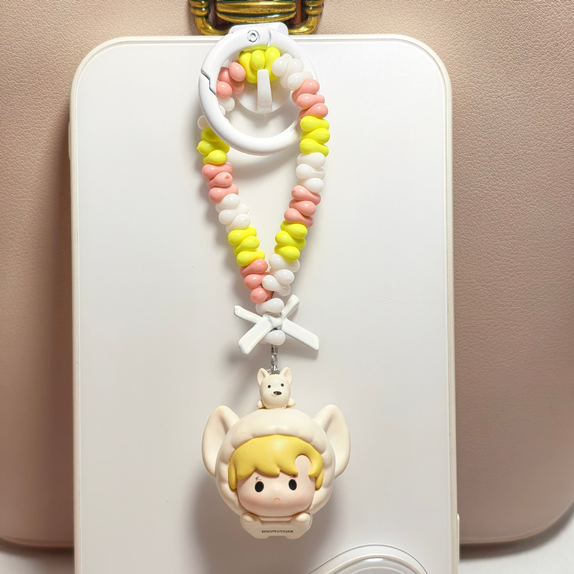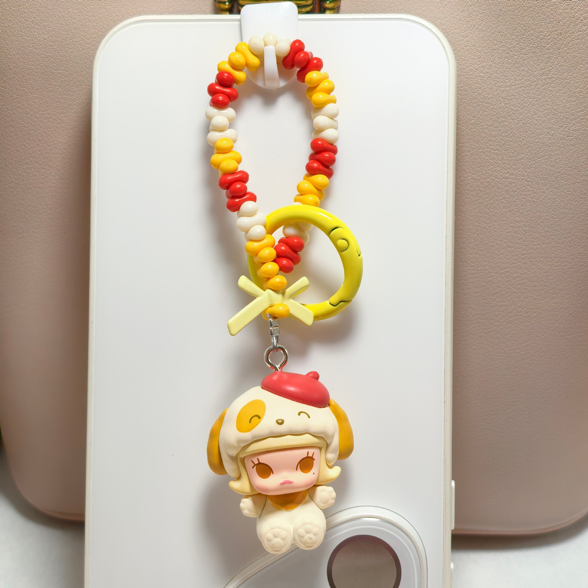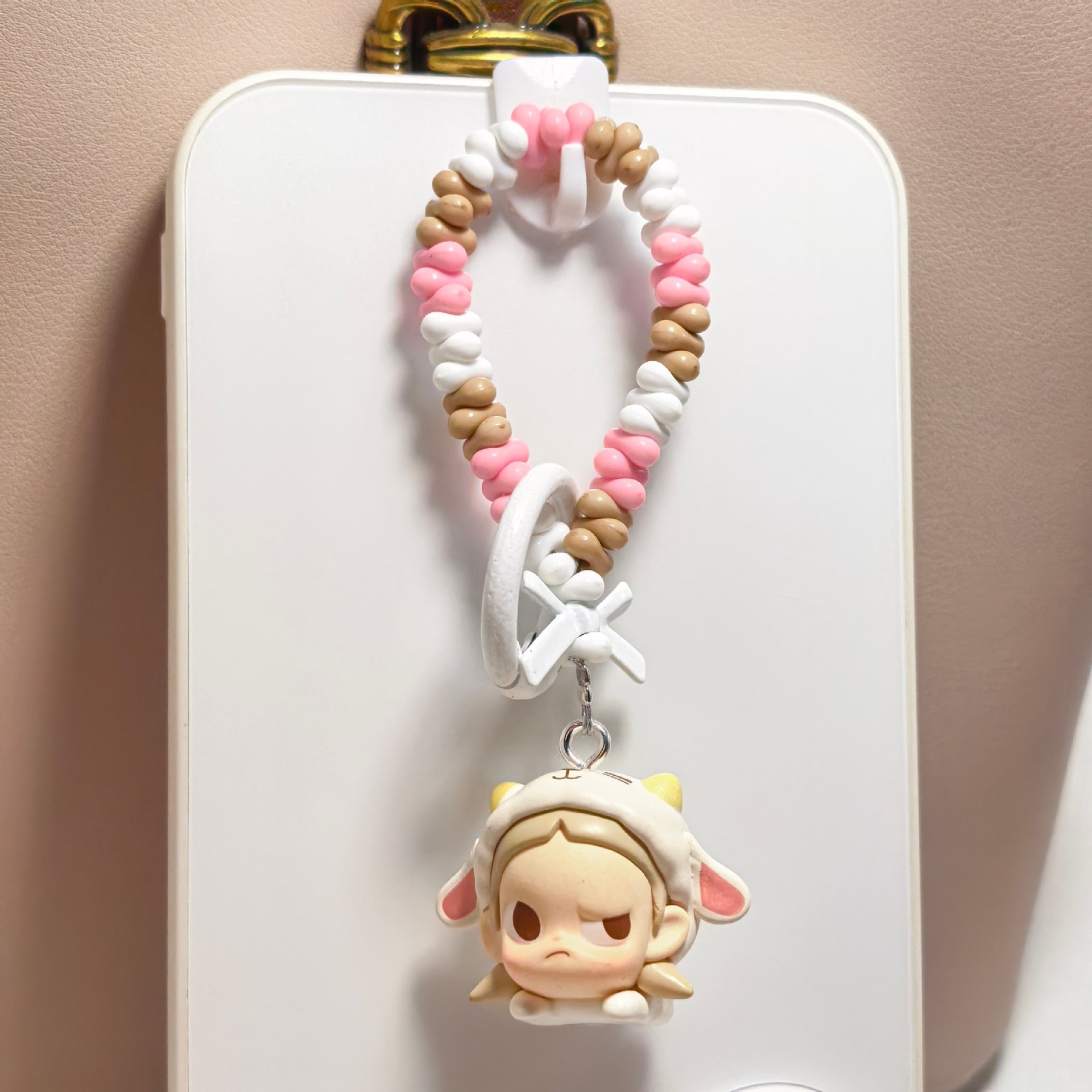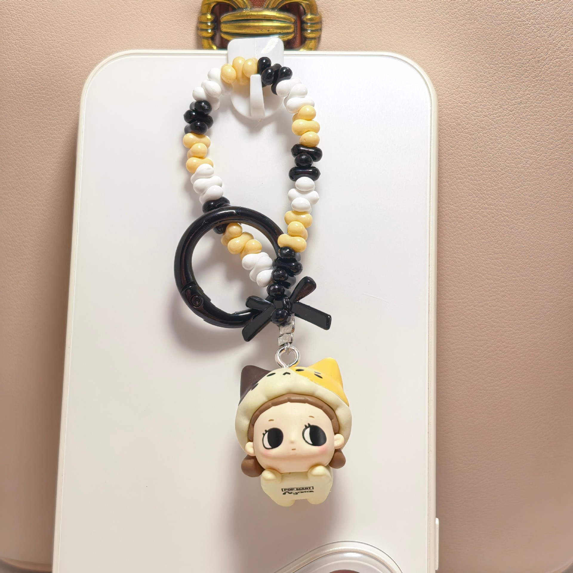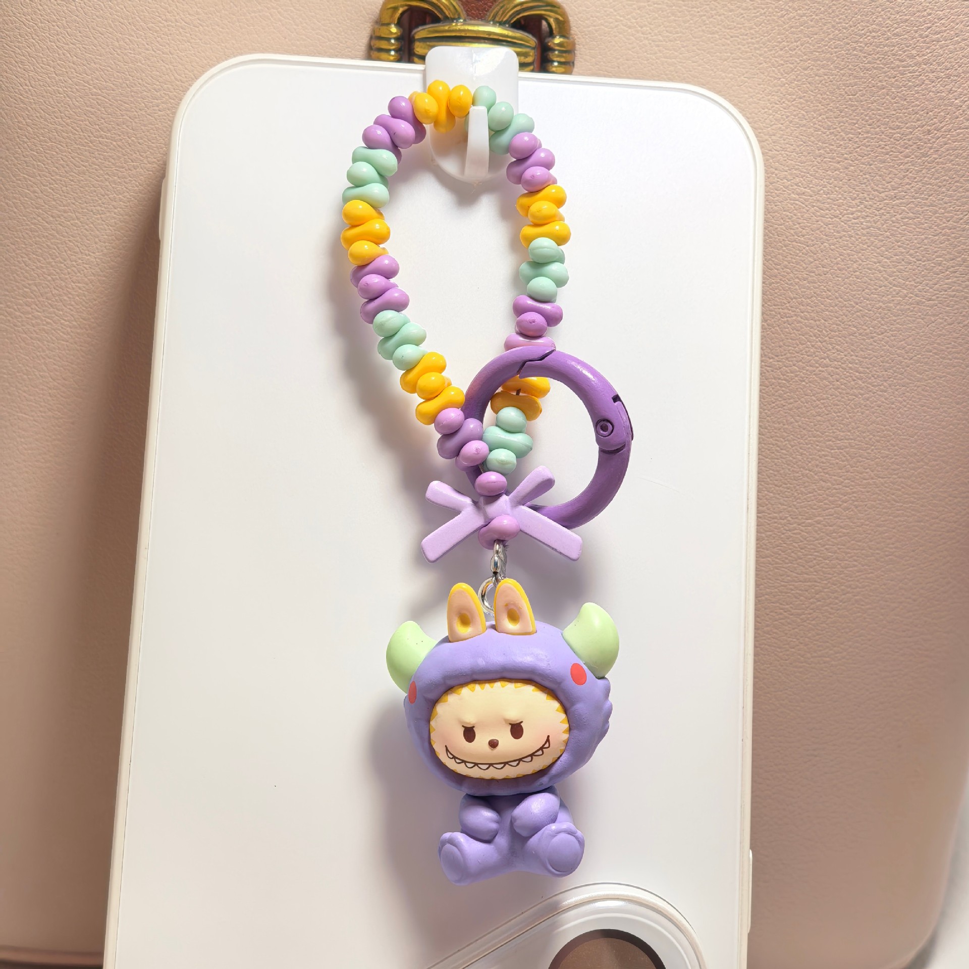 正版泡泡玛特新款手工串珠蝴蝶结小提溜手机挂件手机链
