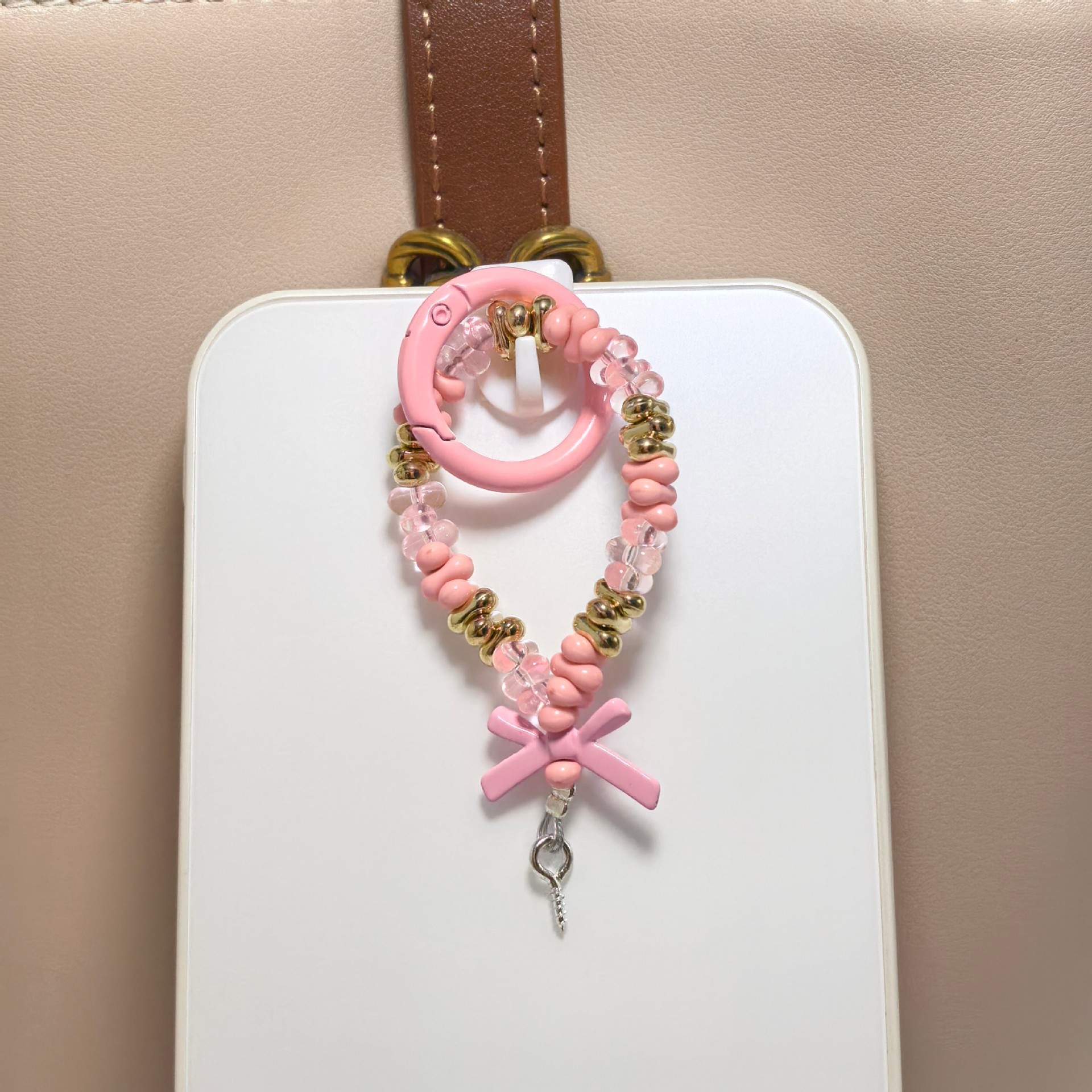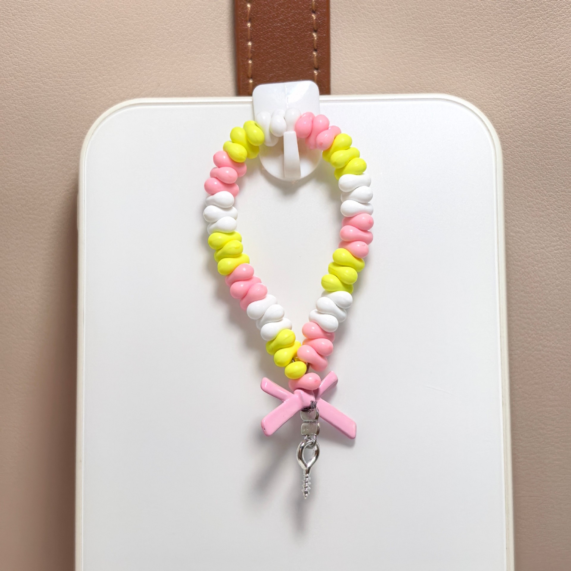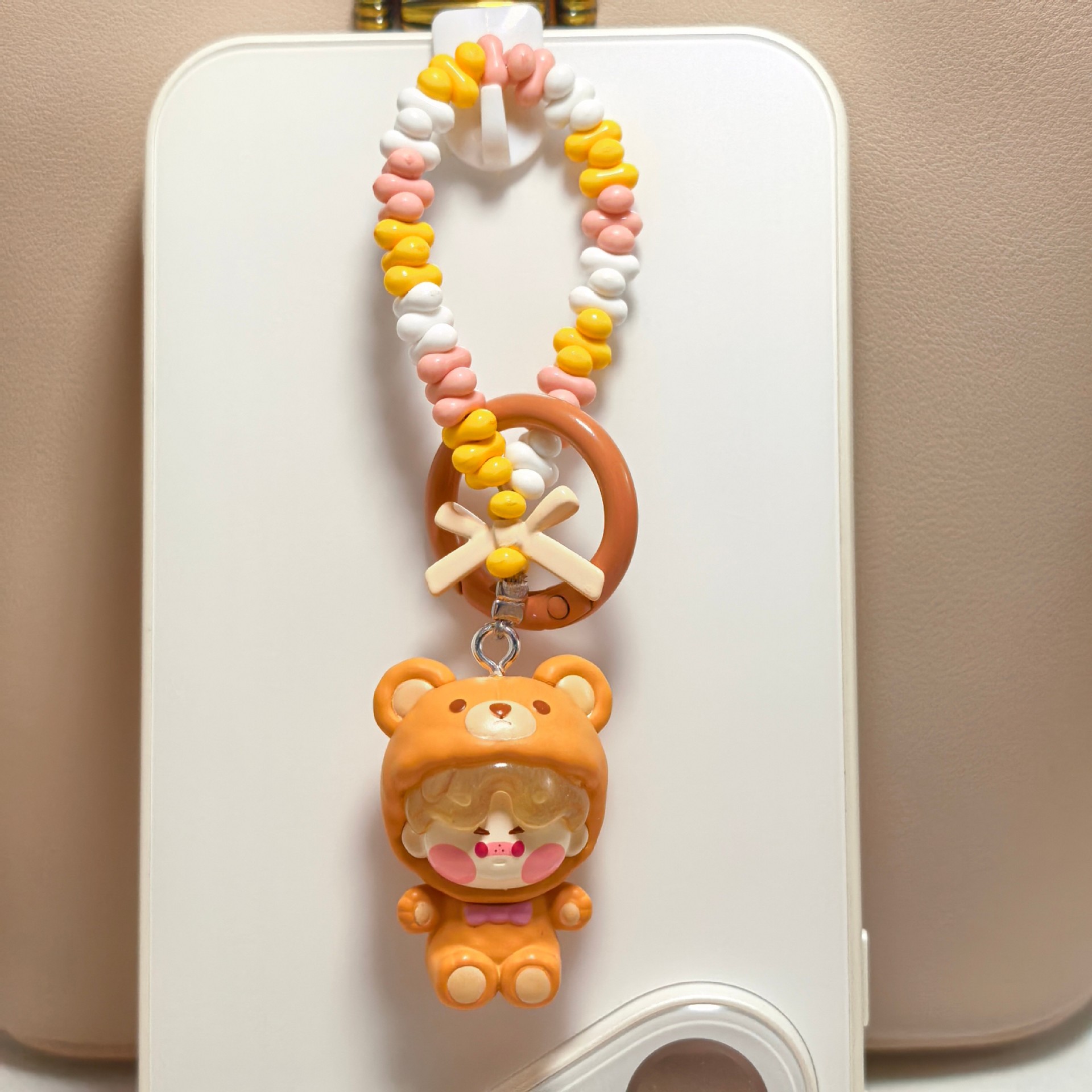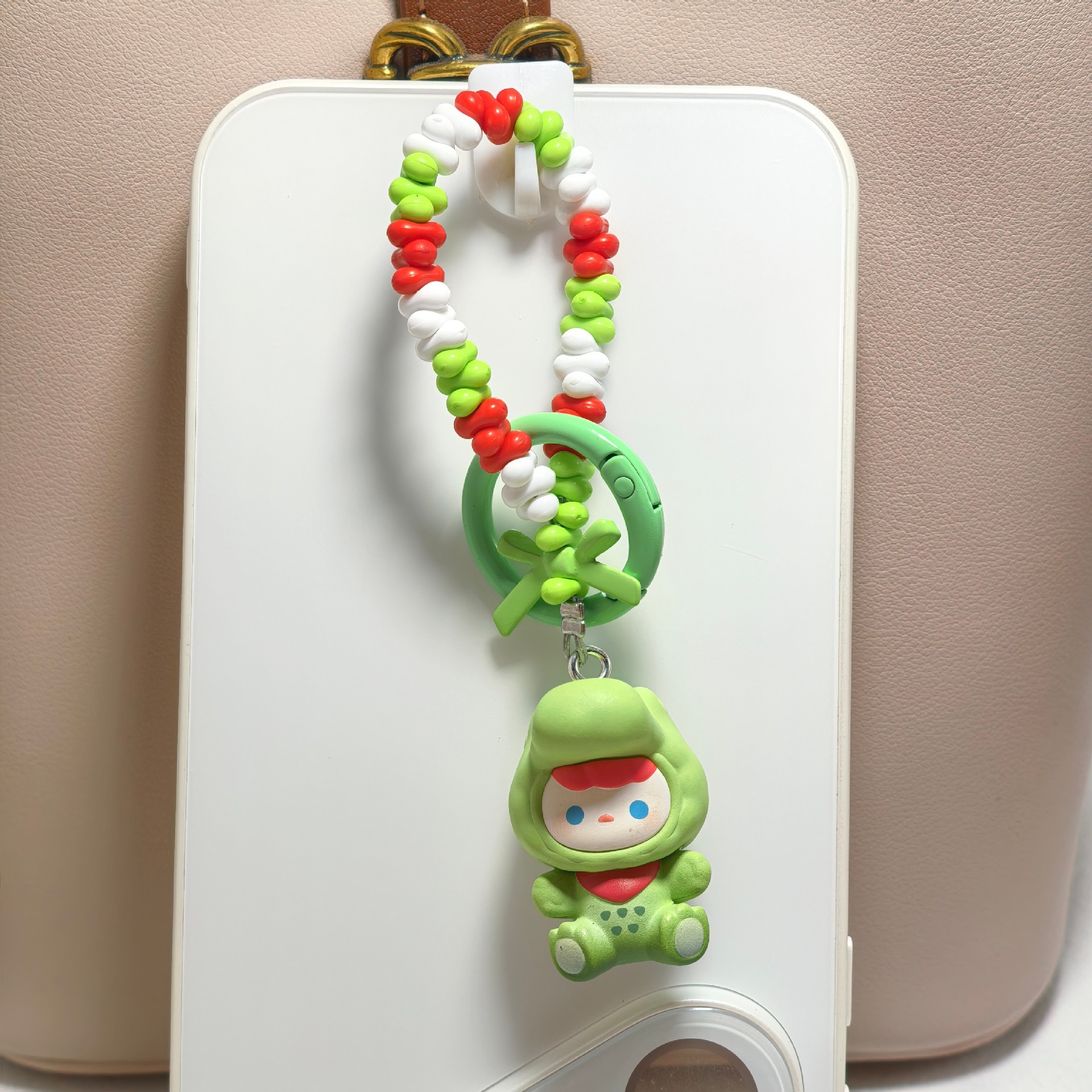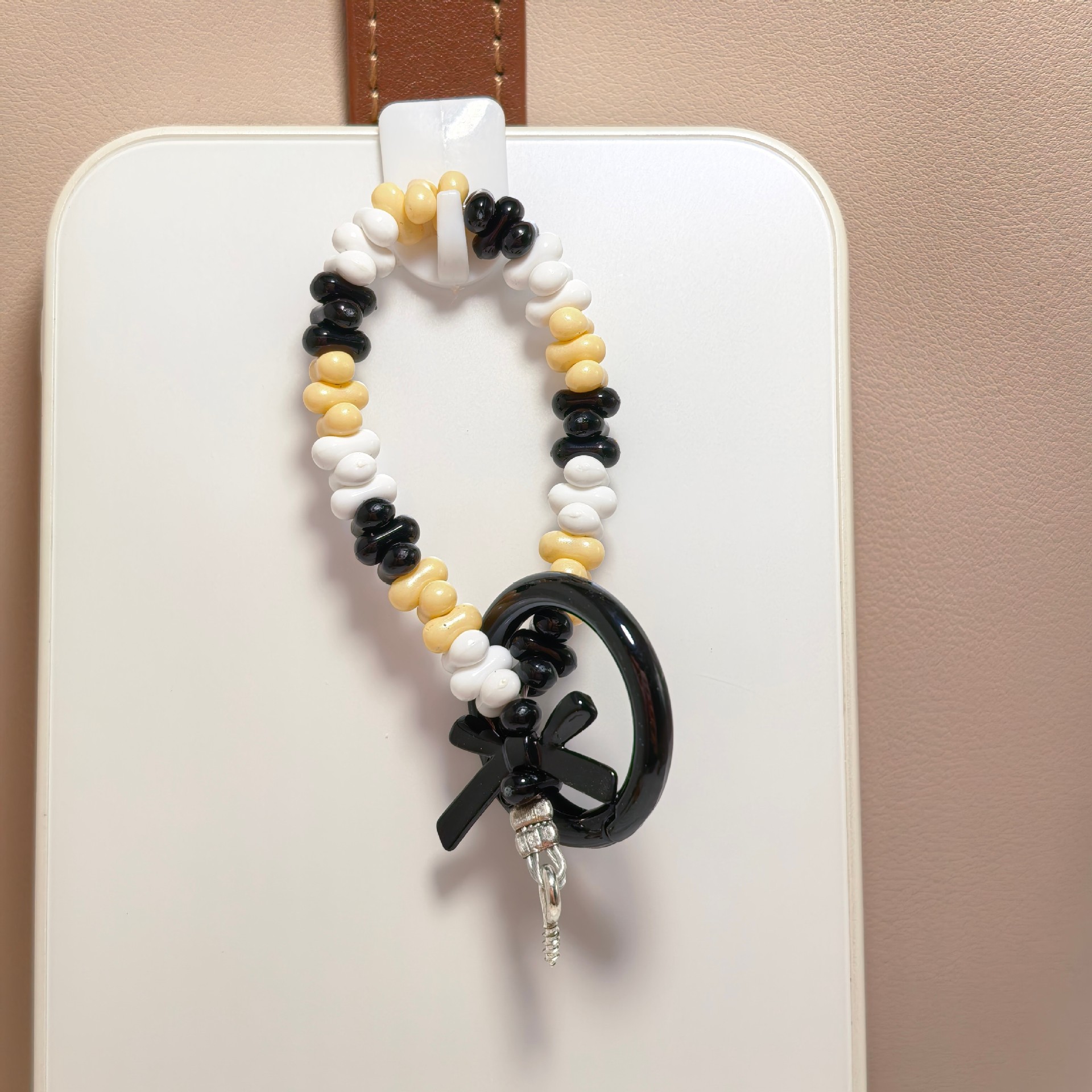 正版泡泡玛特新款手工串珠蝴蝶结小提溜手机挂件手机链