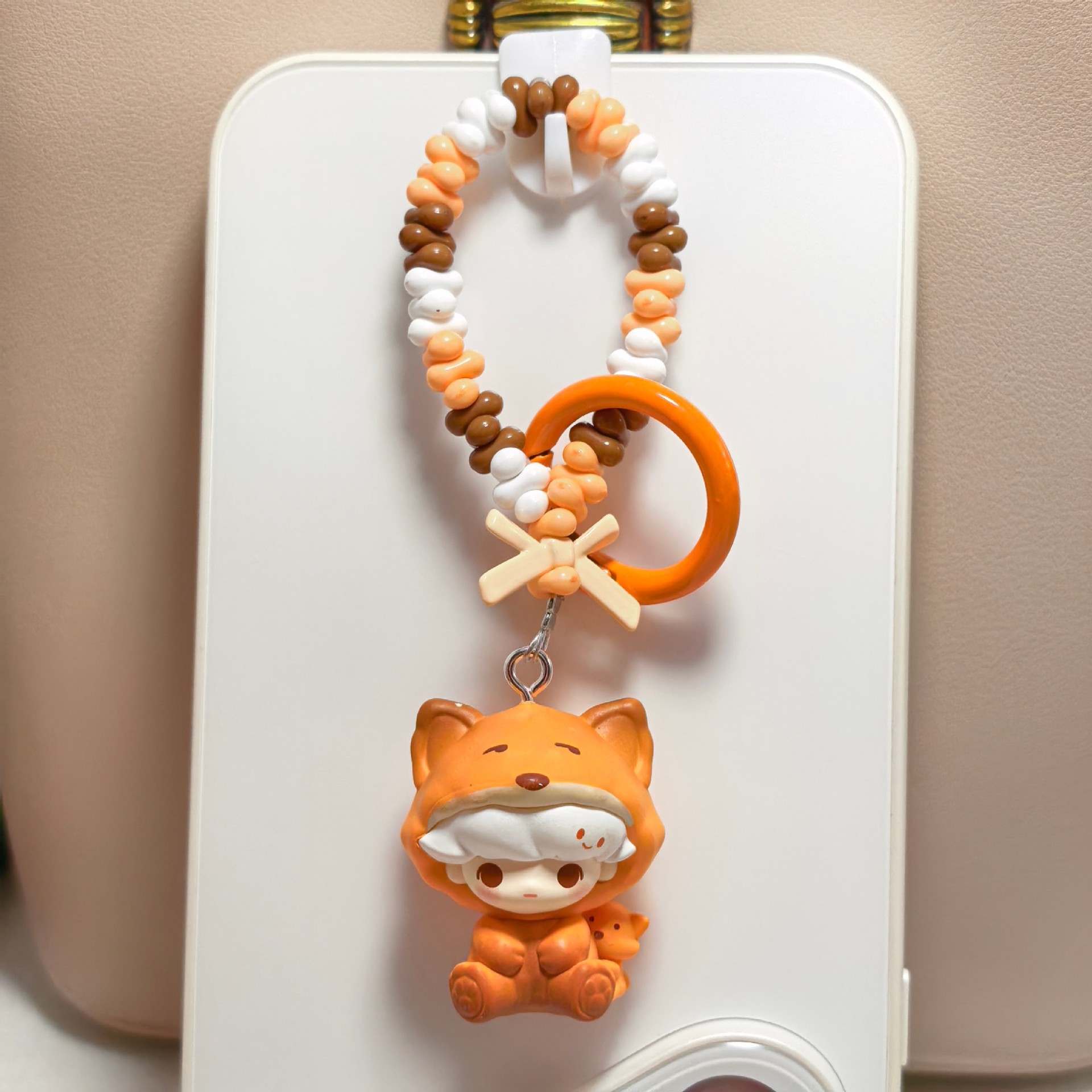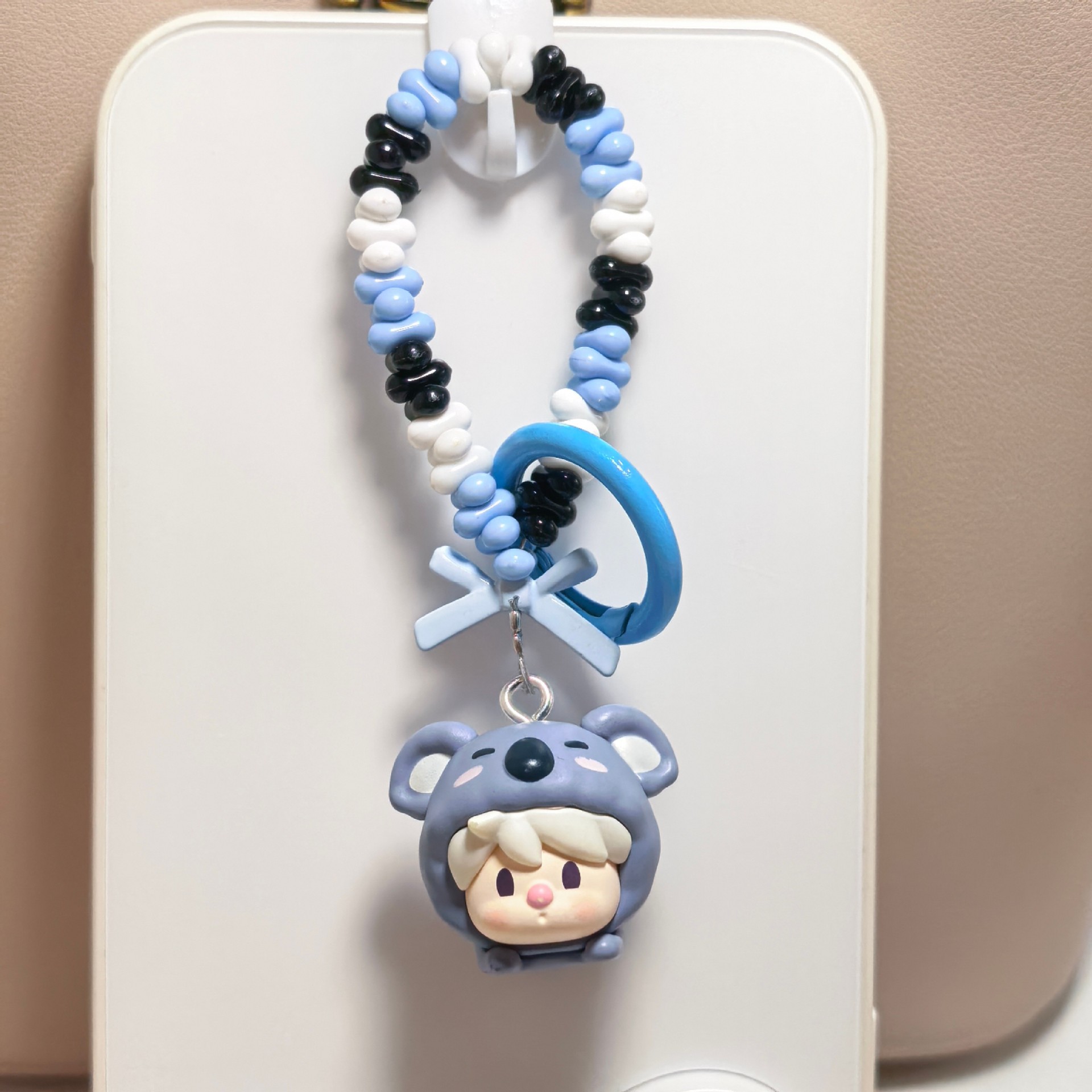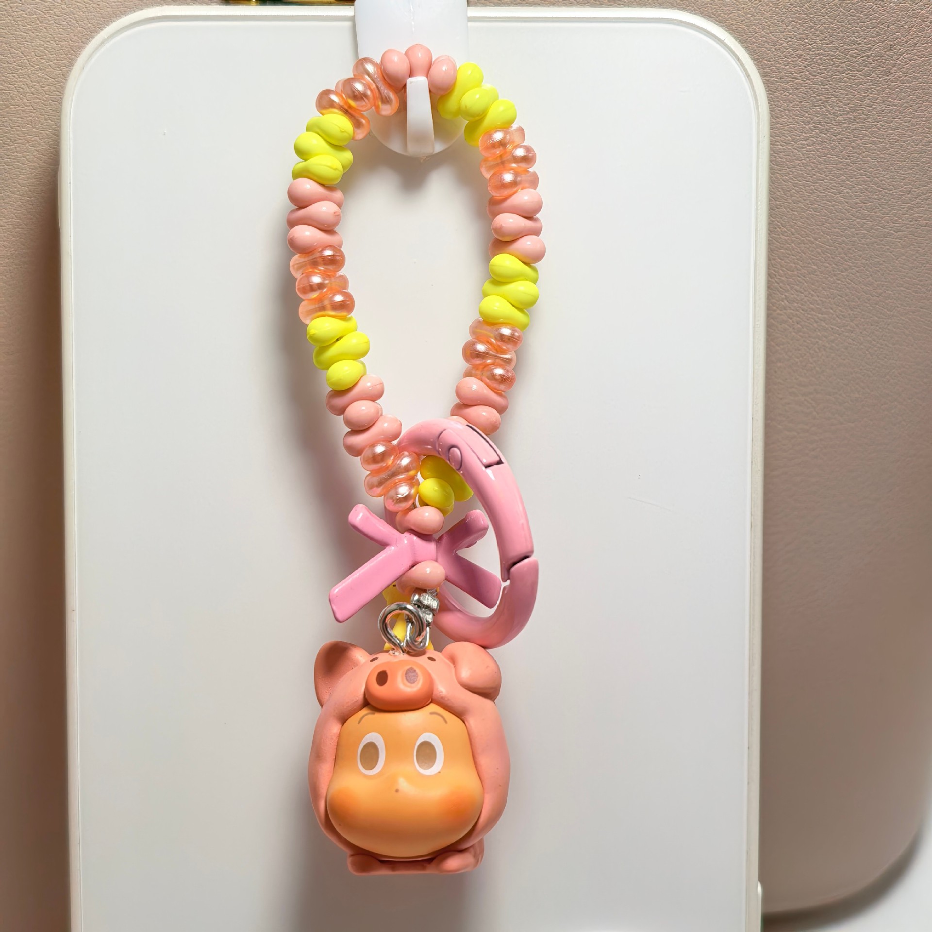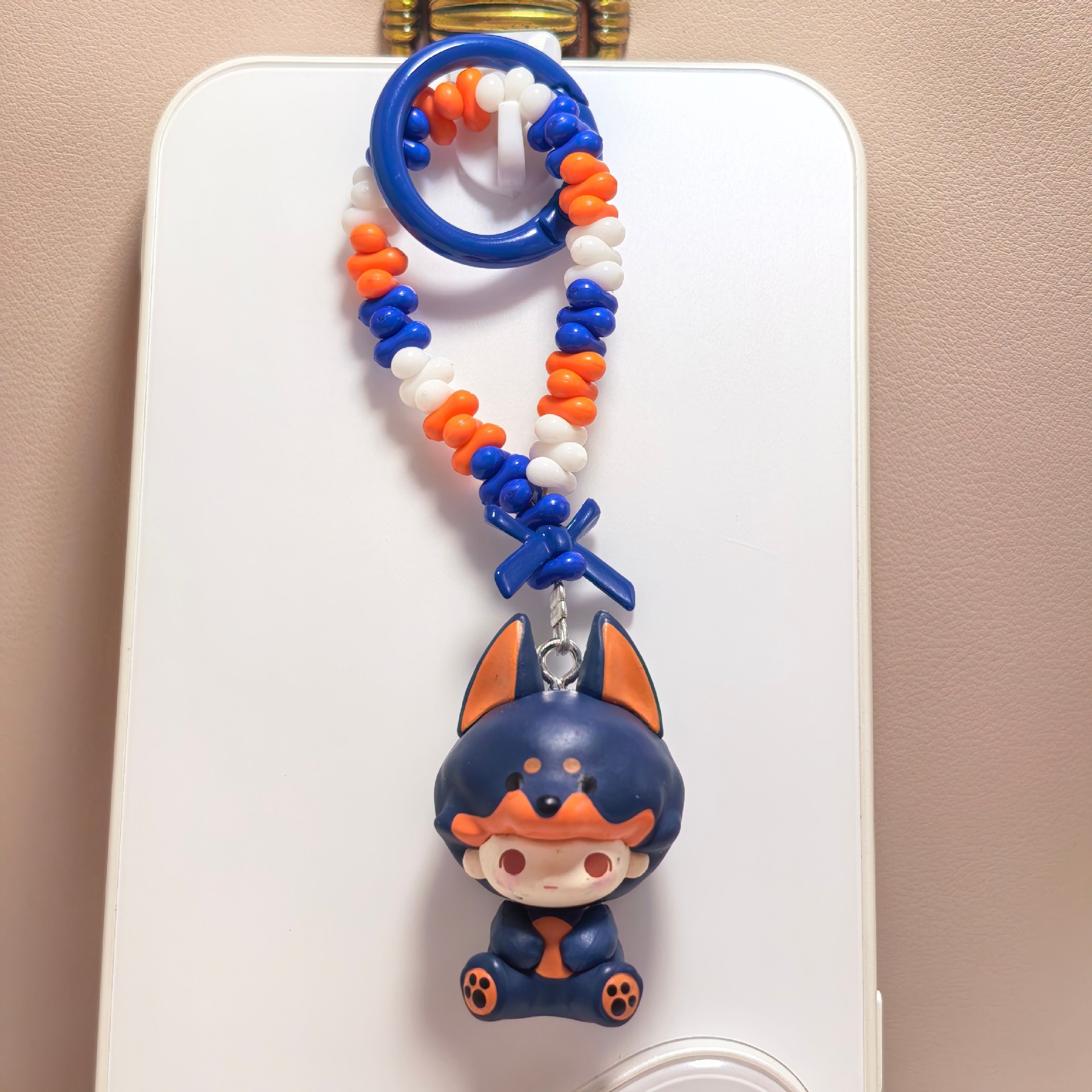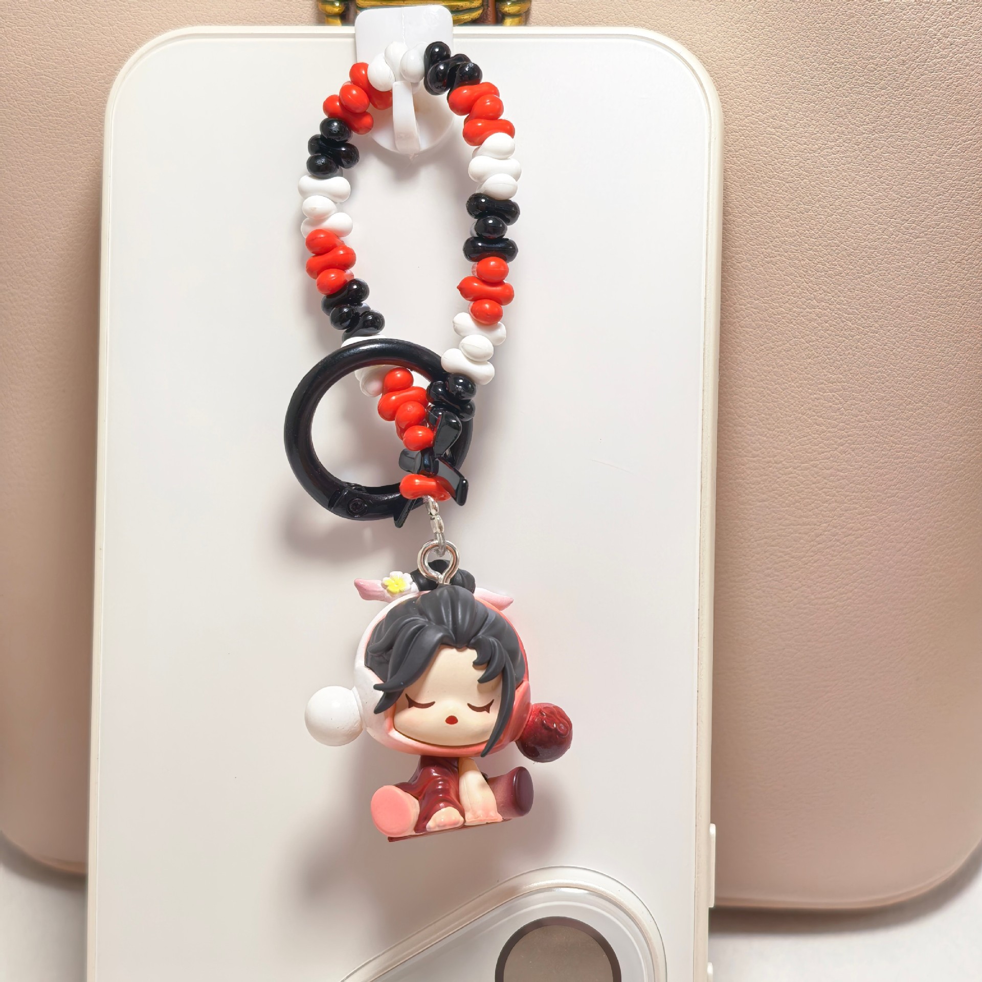 正版泡泡玛特新款手工串珠蝴蝶结小提溜手机挂件手机链