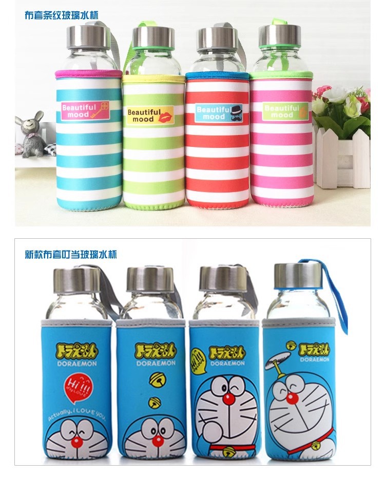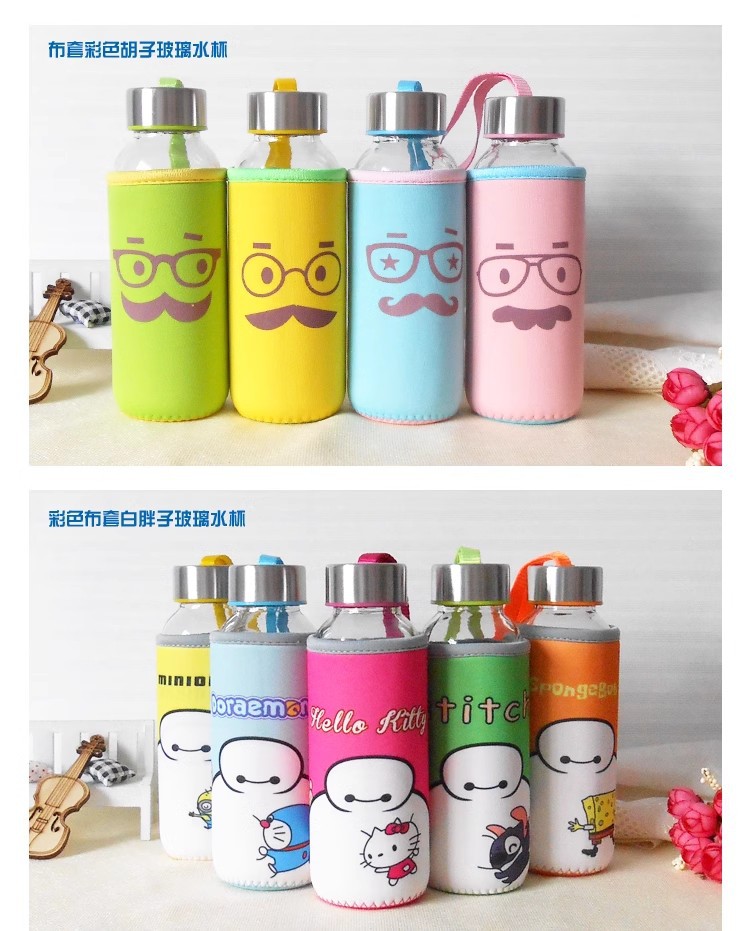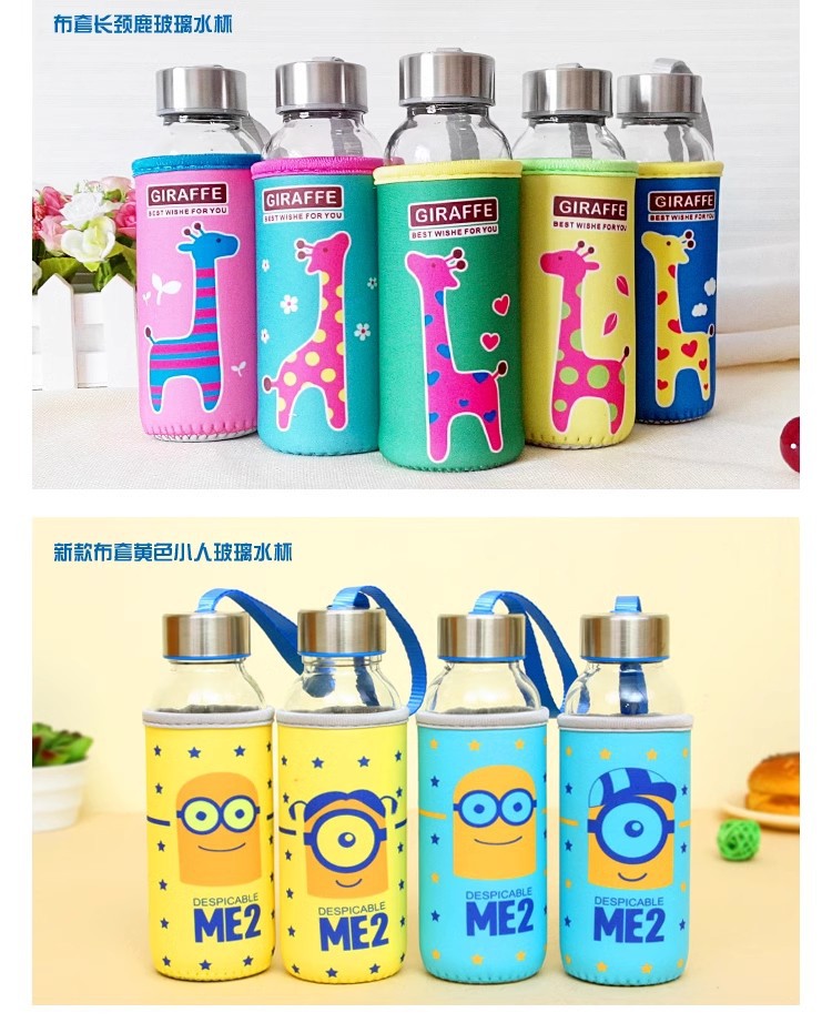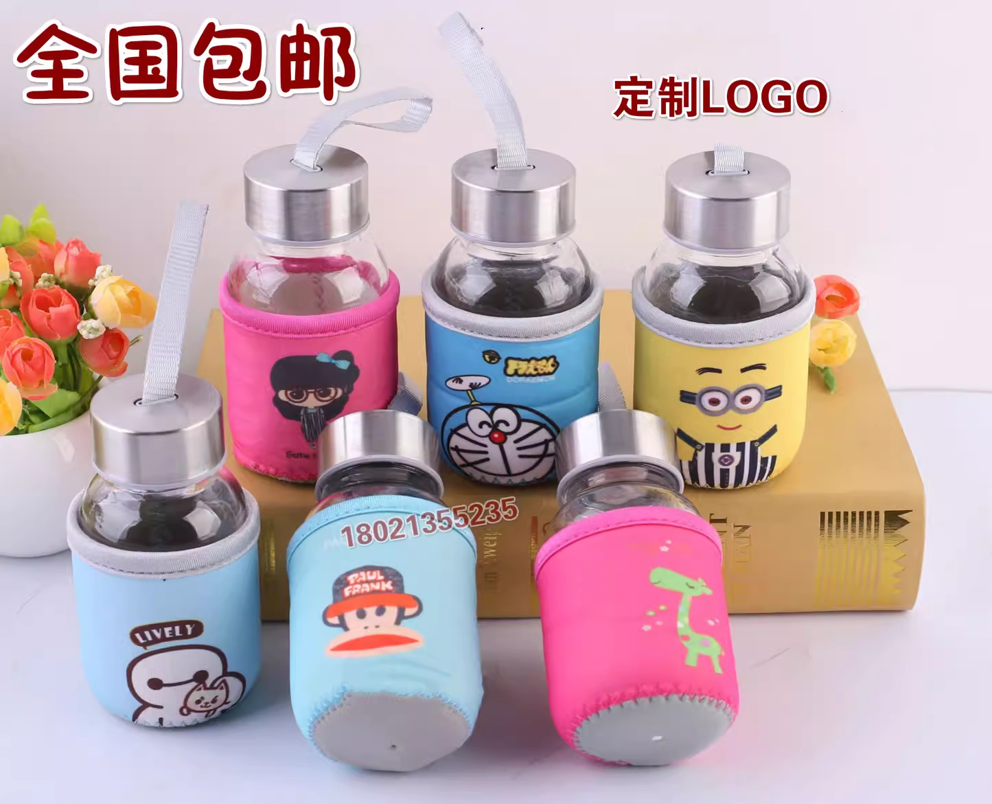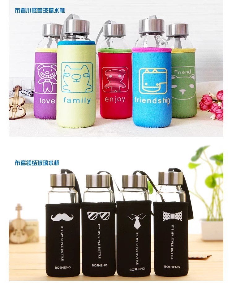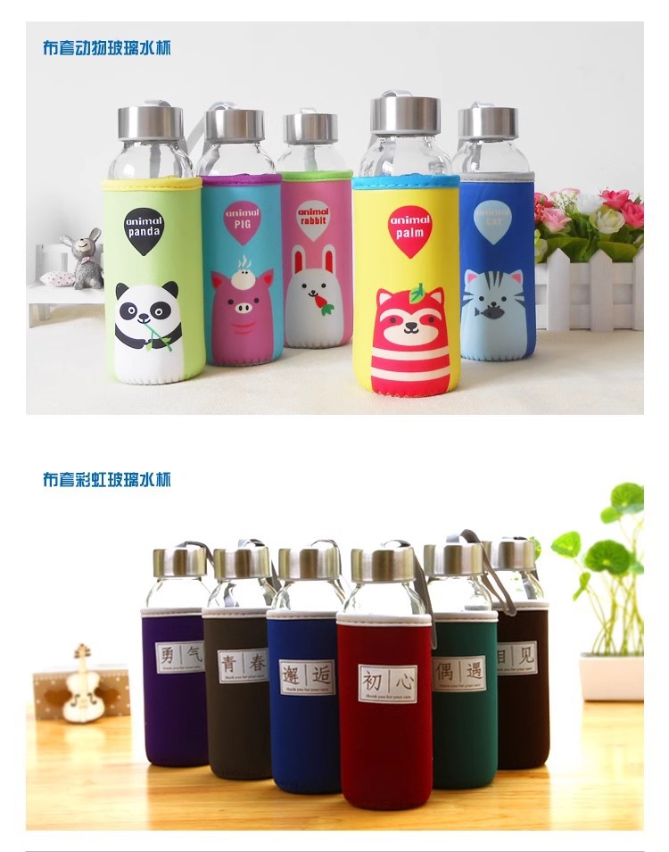 随手杯便携玻璃杯布套杯防摔水杯子卡通杯套防烫杯子带盖运动茶杯