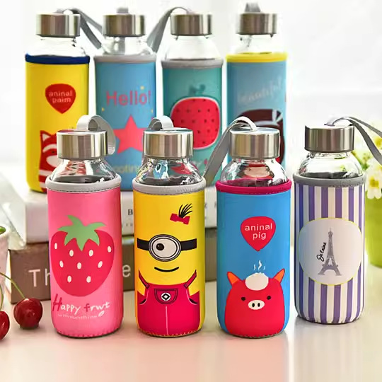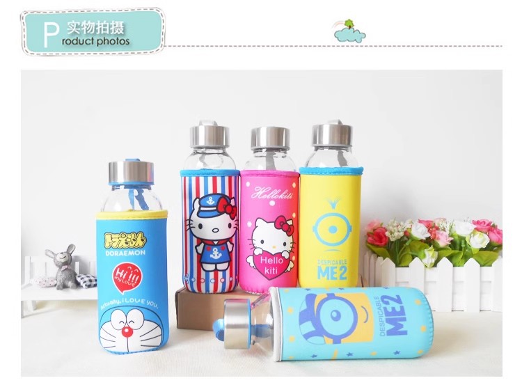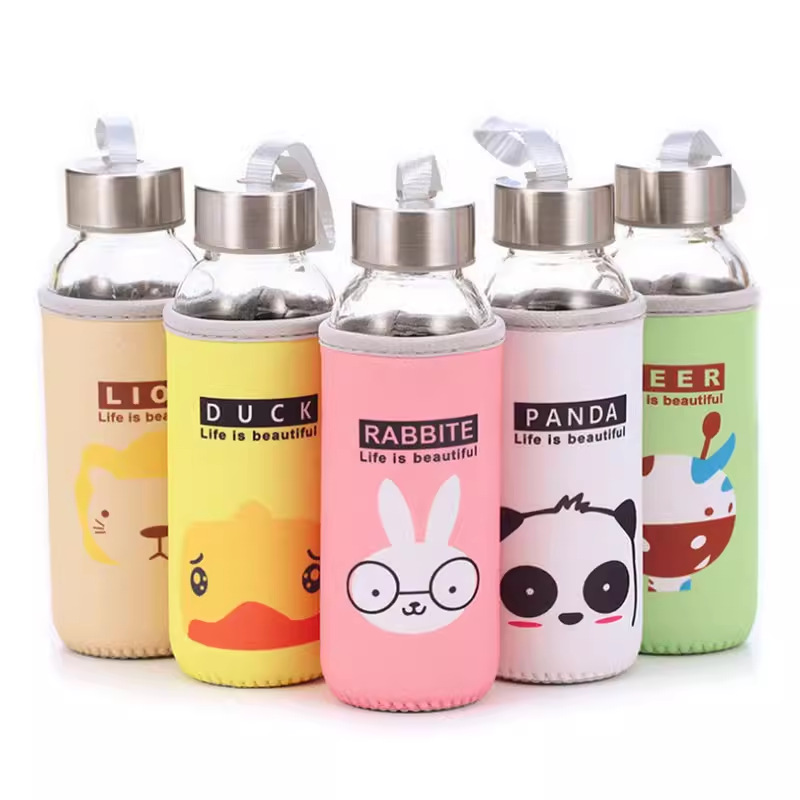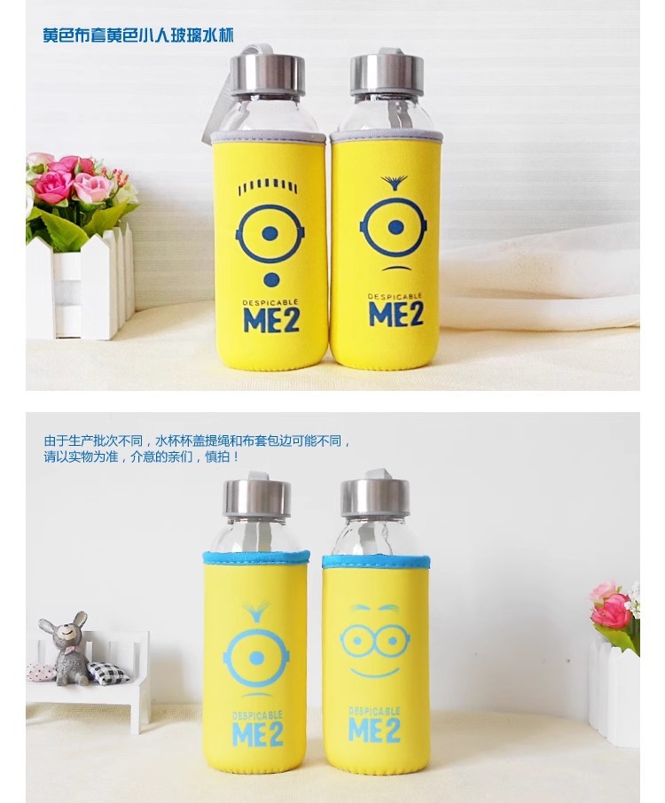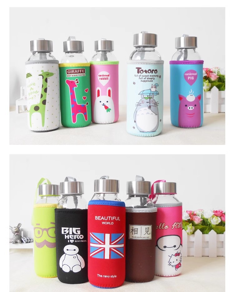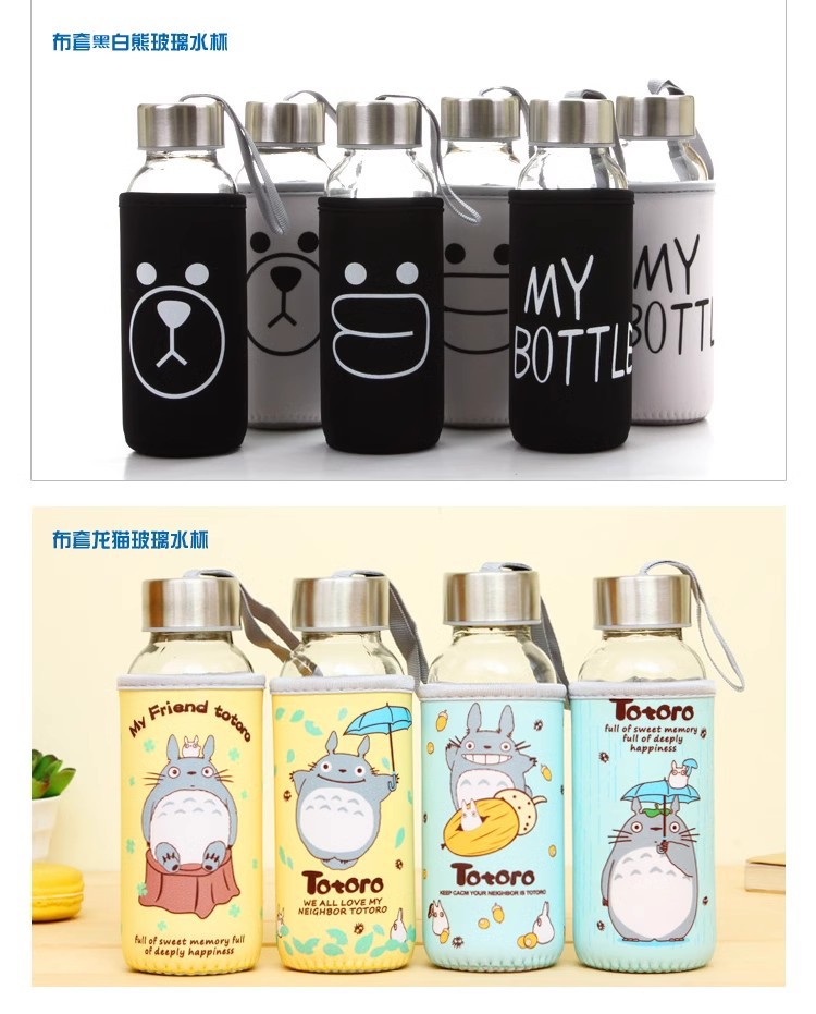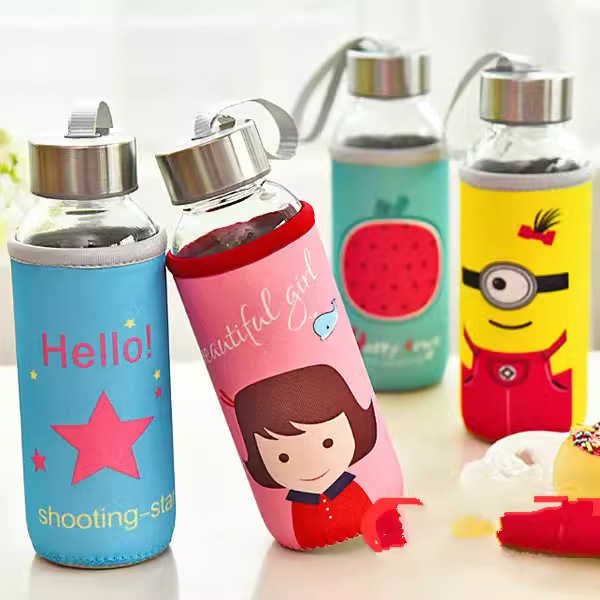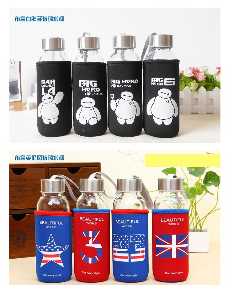 随手杯便携玻璃杯布套杯防摔水杯子卡通杯套防烫杯子带盖运动茶杯