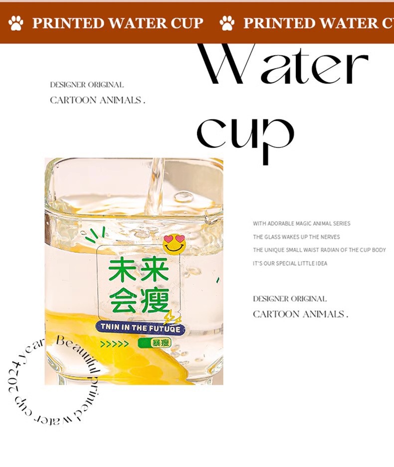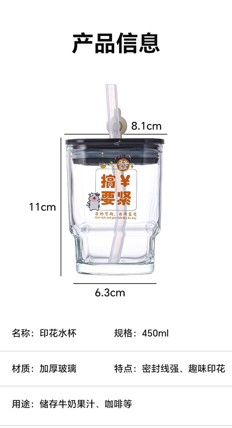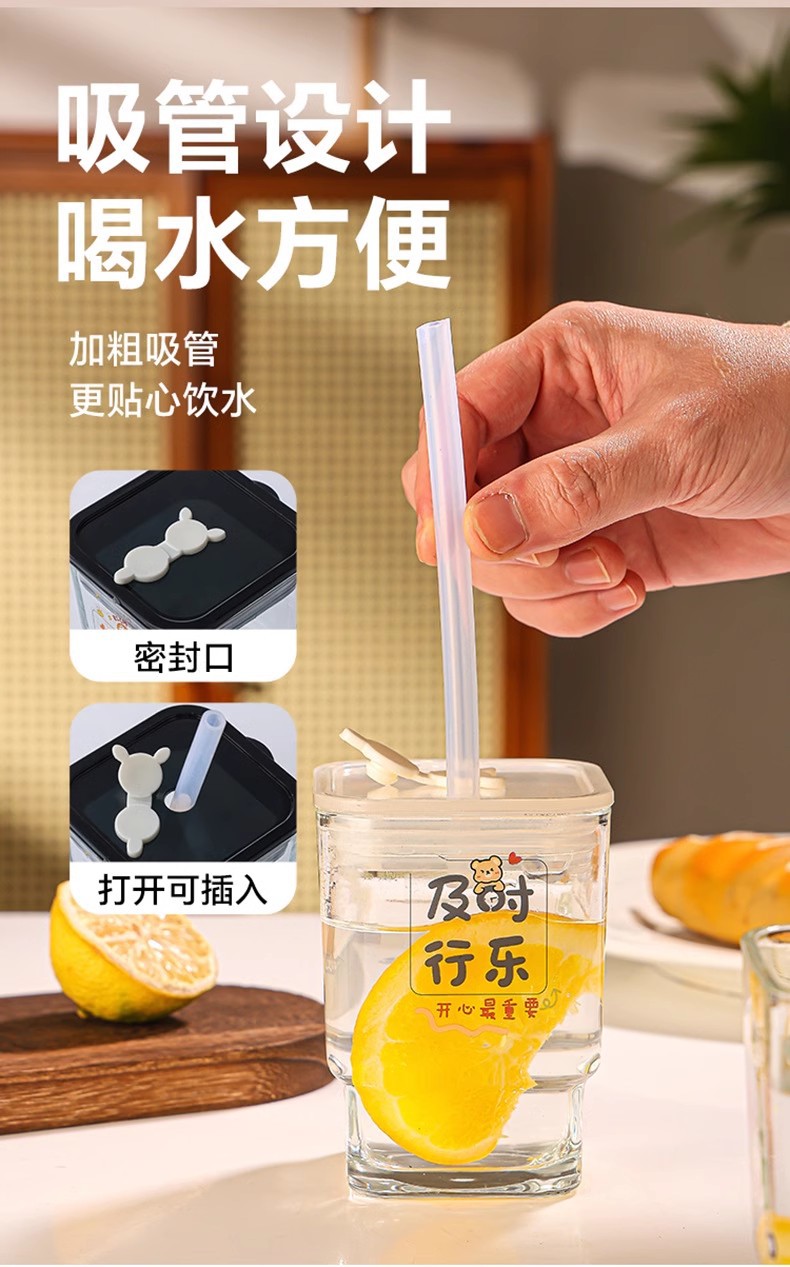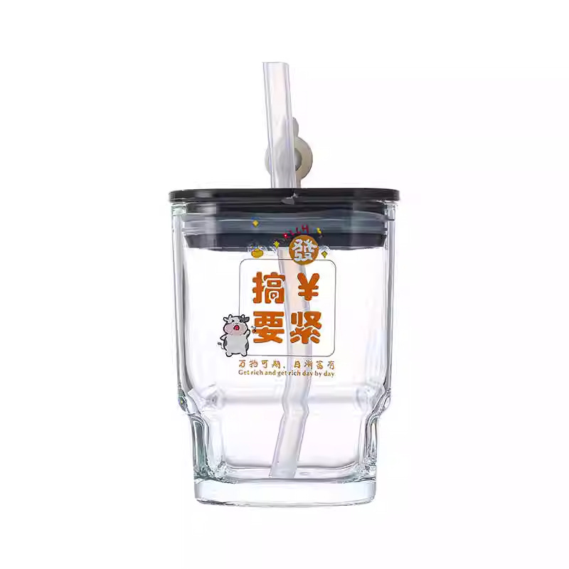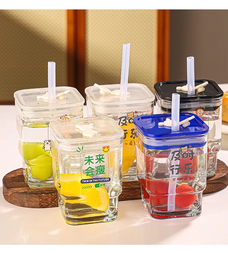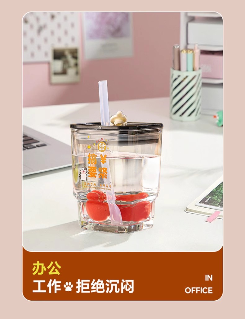 高颜值吸管杯方形玻璃水杯创意玻璃杯办公室家用双饮杯伴手礼杯子