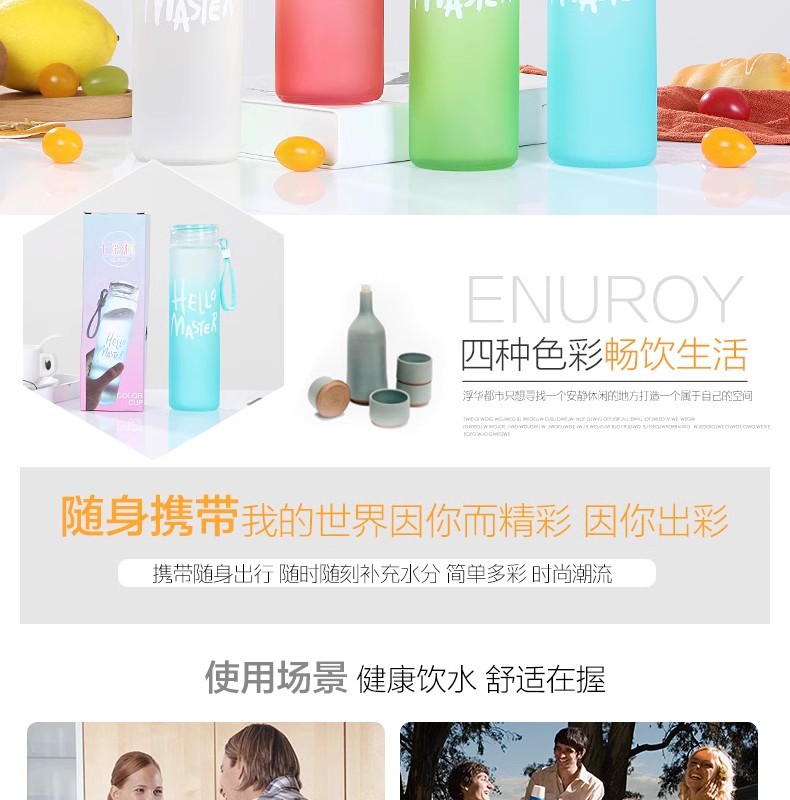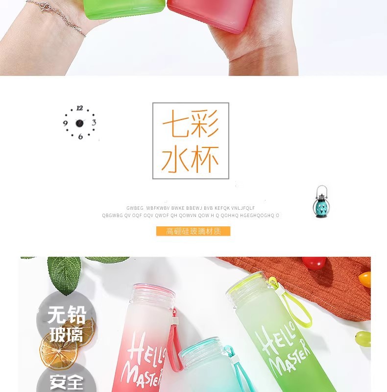 定制渐变色杯便携水杯磨砂七彩杯玻璃杯水杯杯子情侣杯男女学生杯