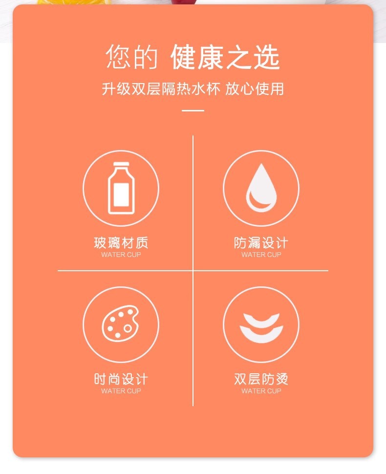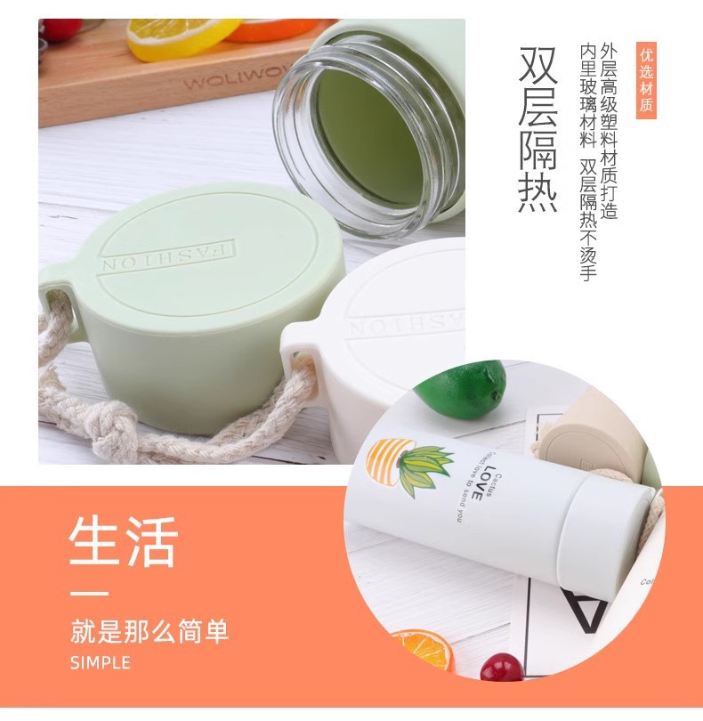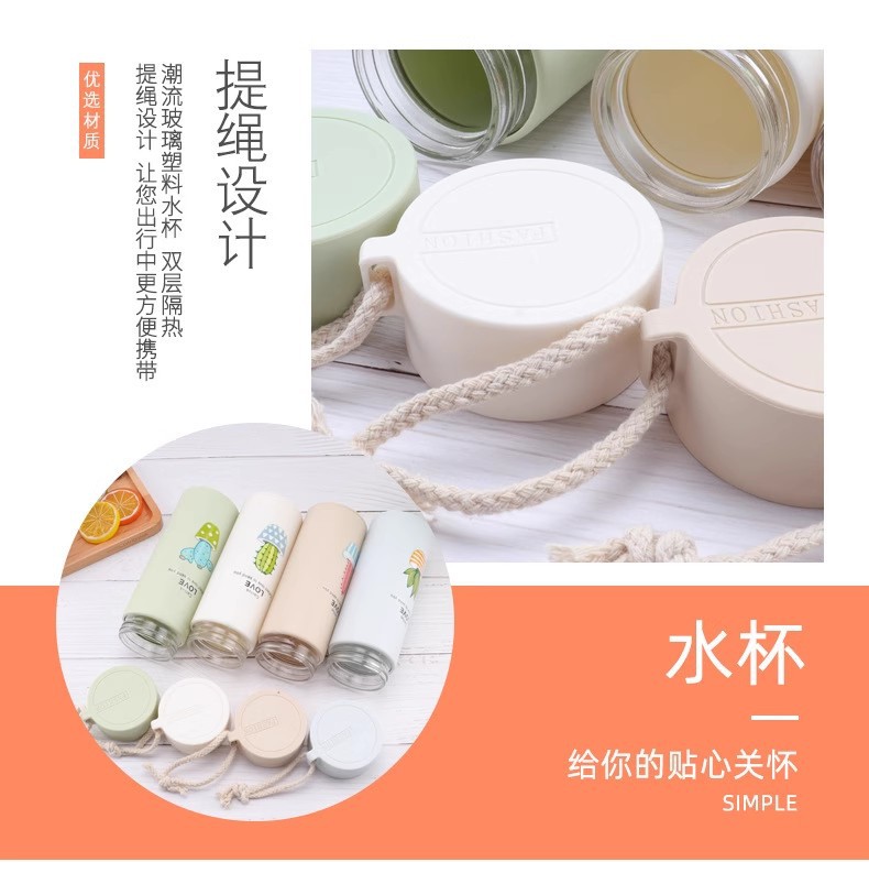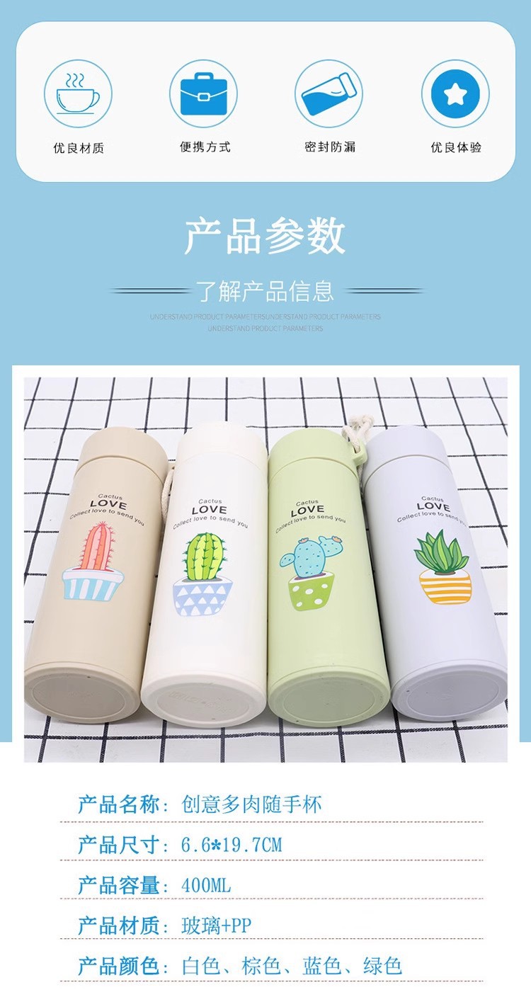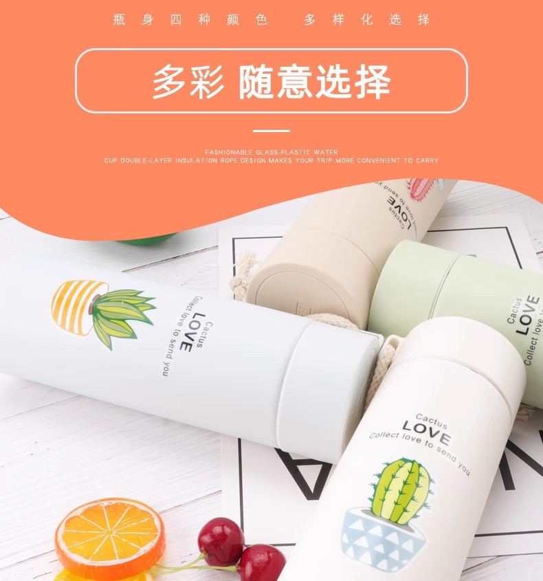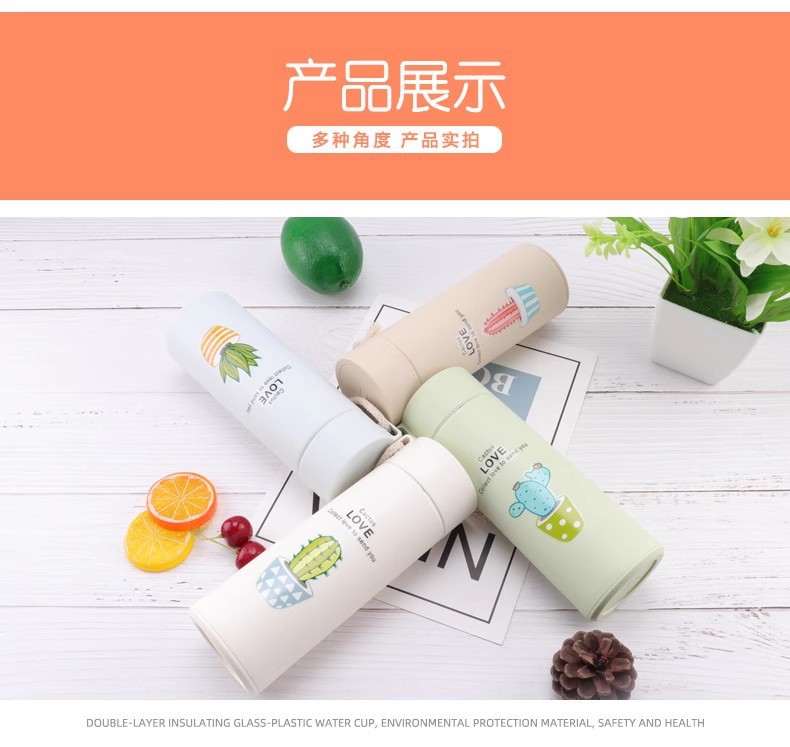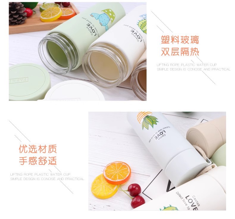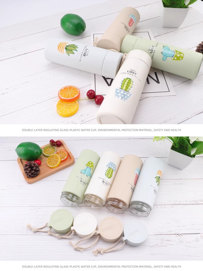 广告杯定制logo多肉卡通商务杯双层塑料壳玻璃水杯开业活动礼品杯