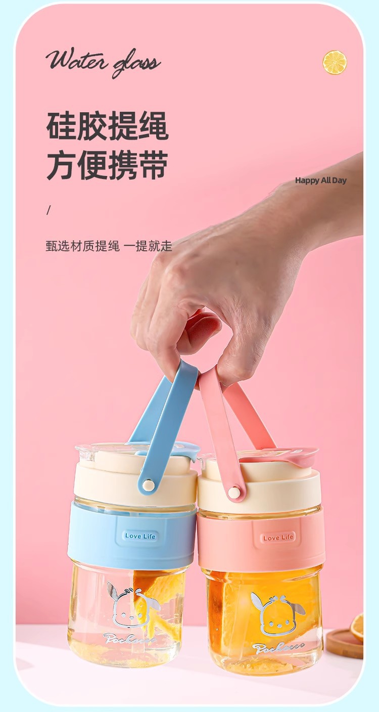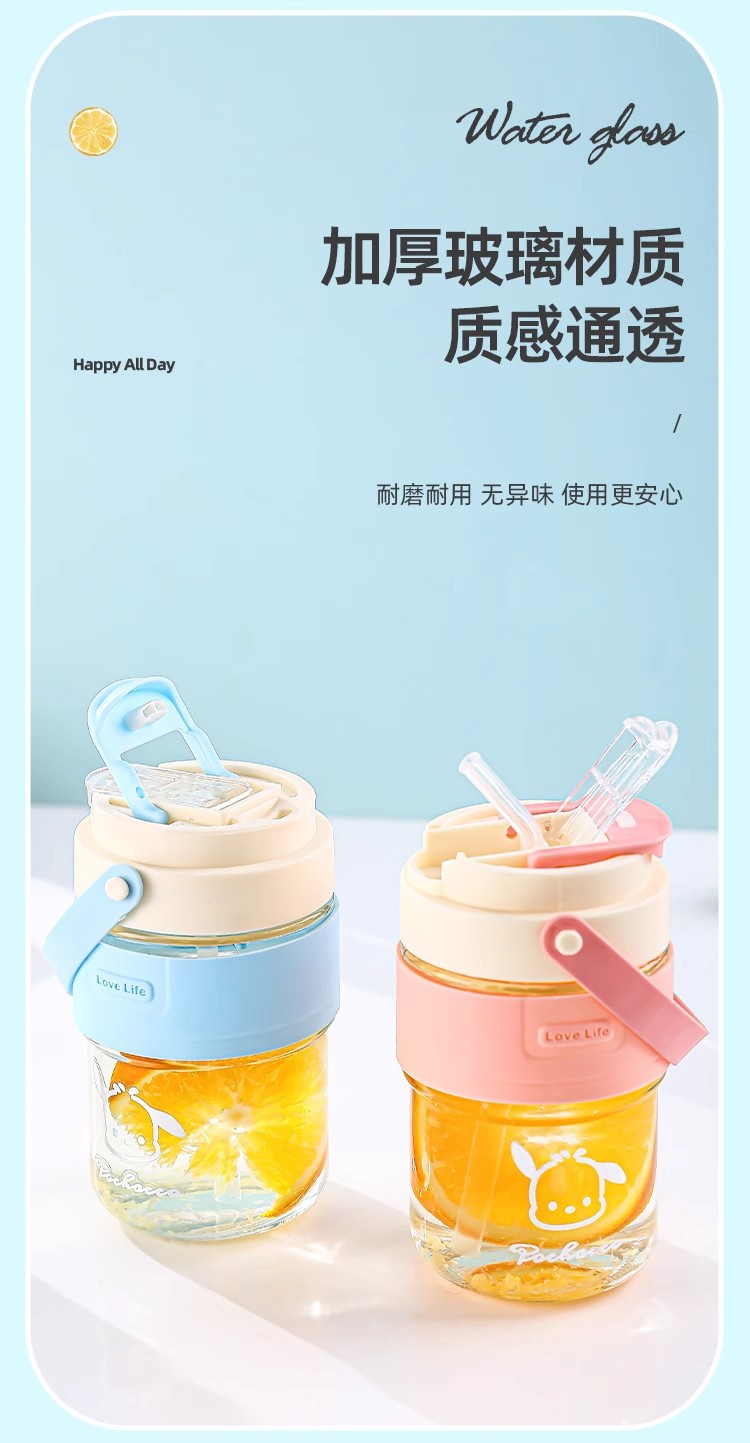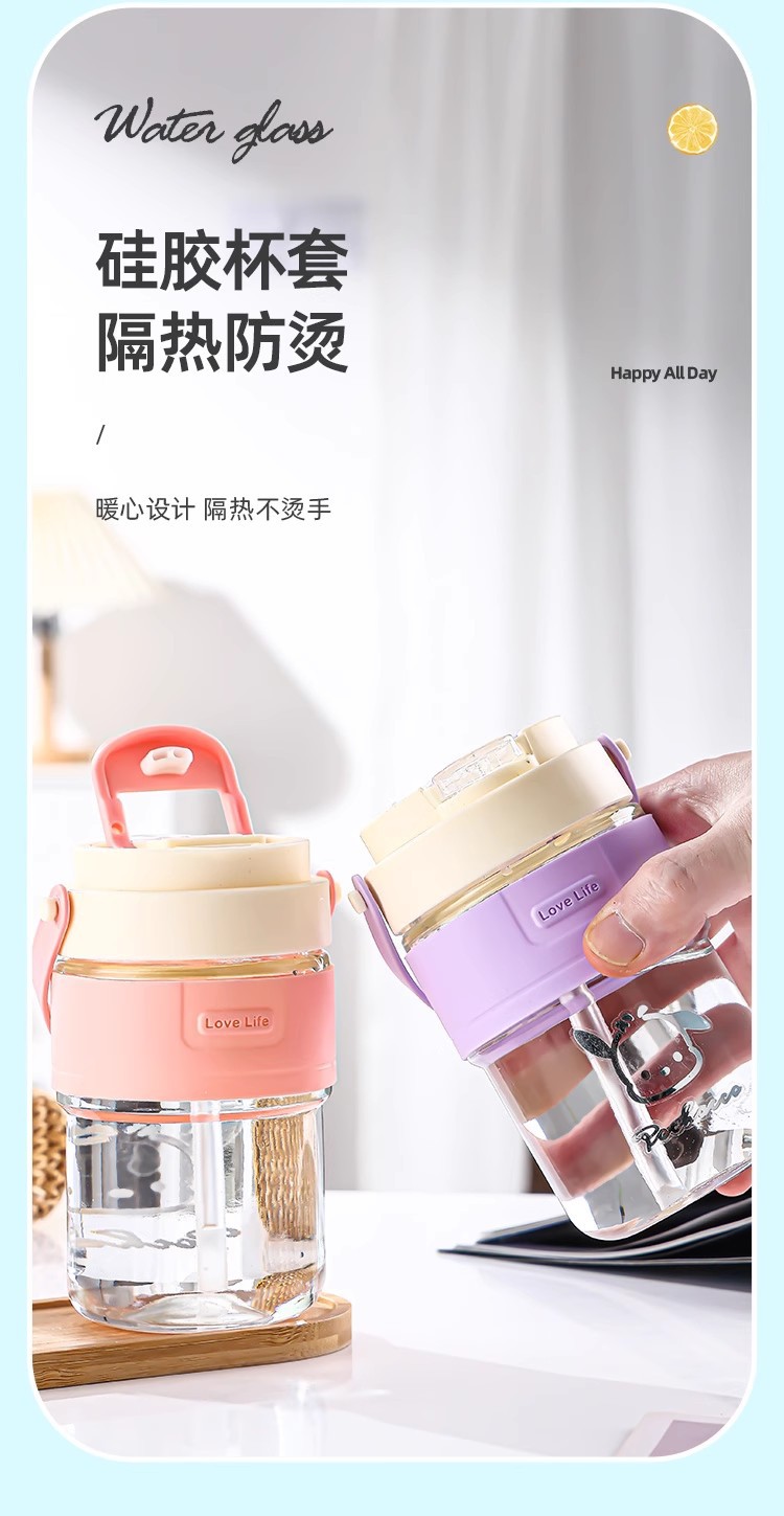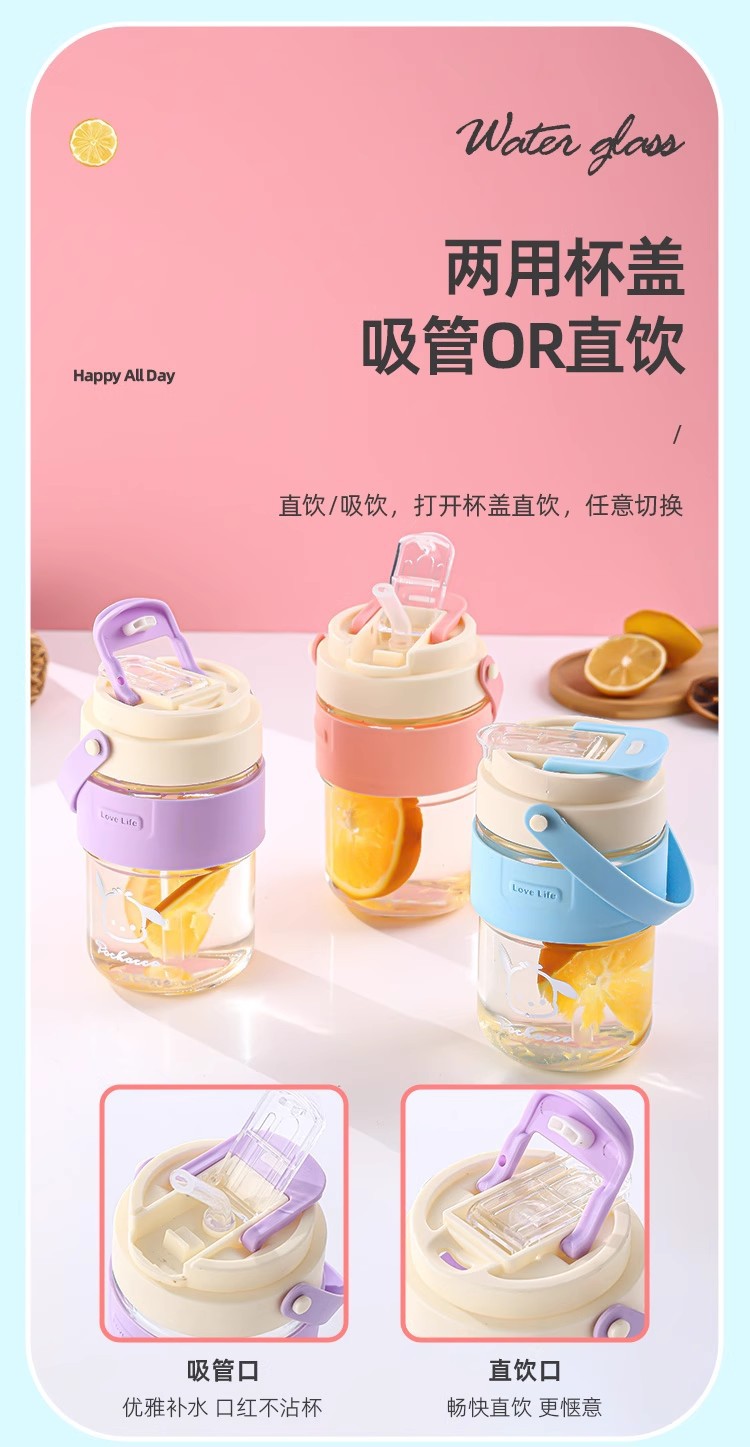 新款玻璃双饮杯网红手提吸管杯高颜值开业礼品地推玻璃水杯便携杯