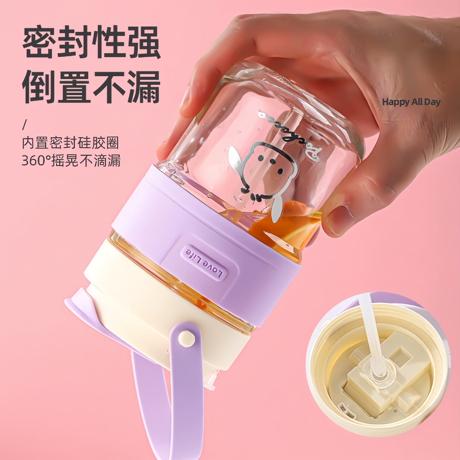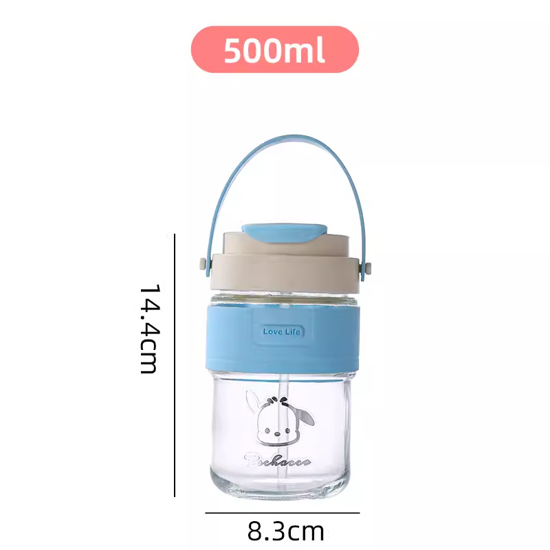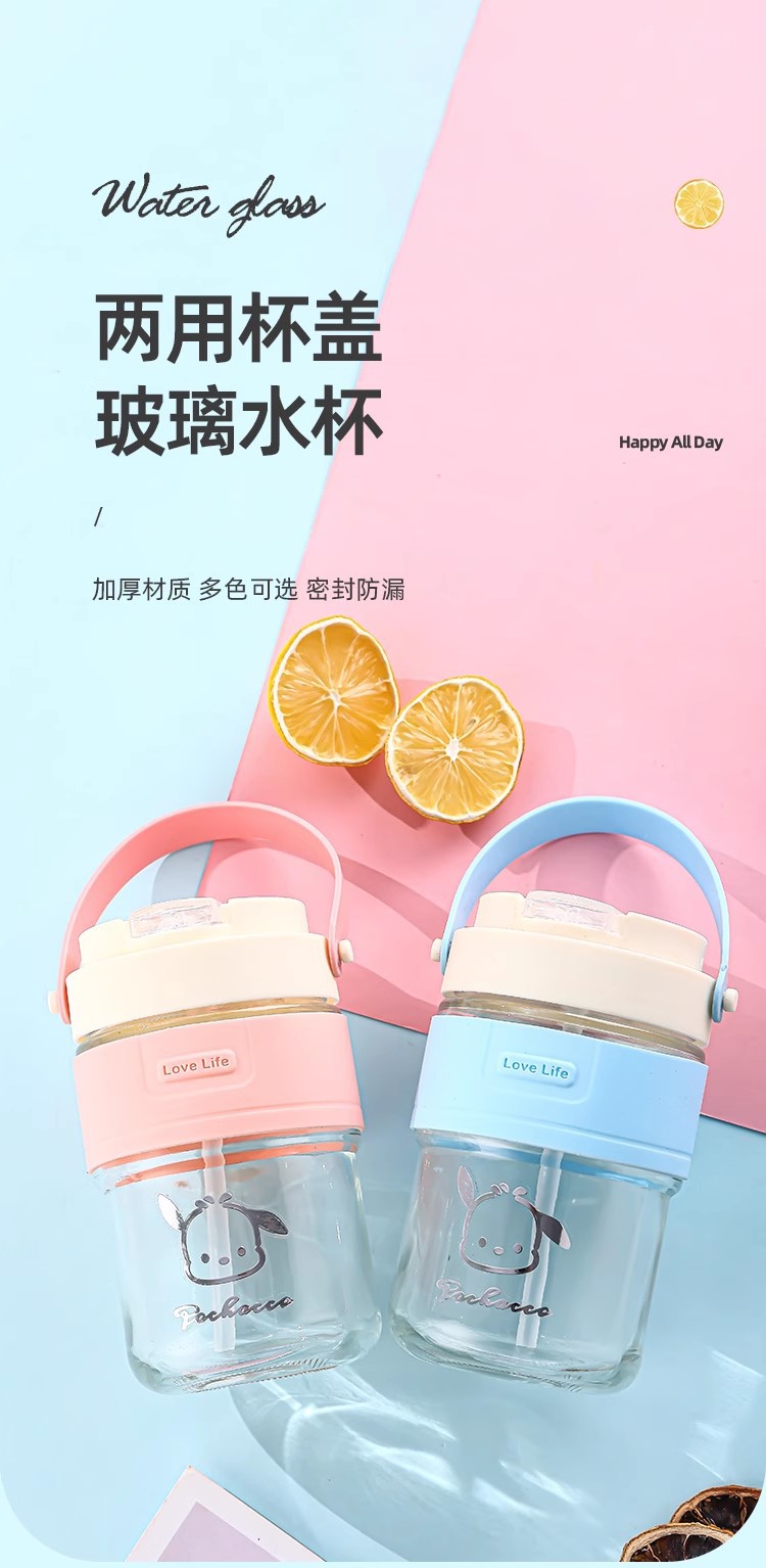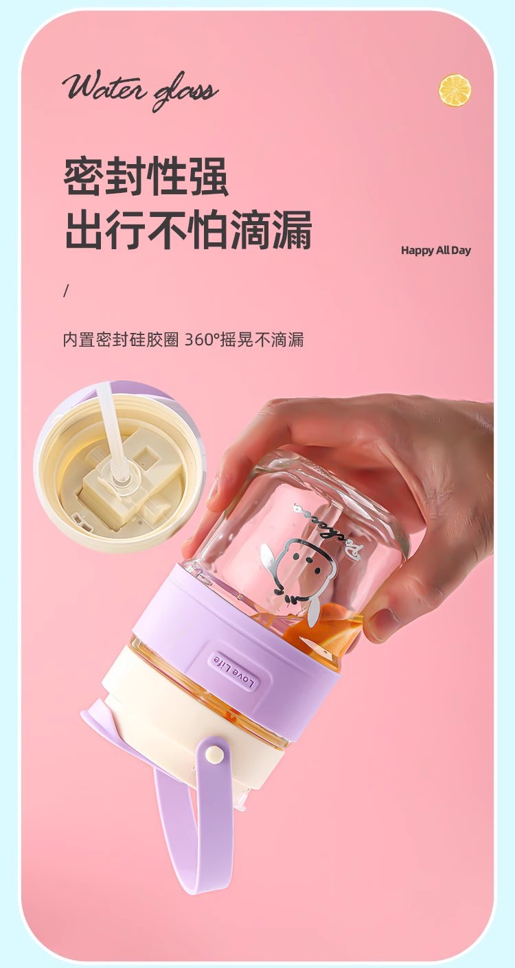 新款玻璃双饮杯网红手提吸管杯高颜值开业礼品地推玻璃水杯便携杯