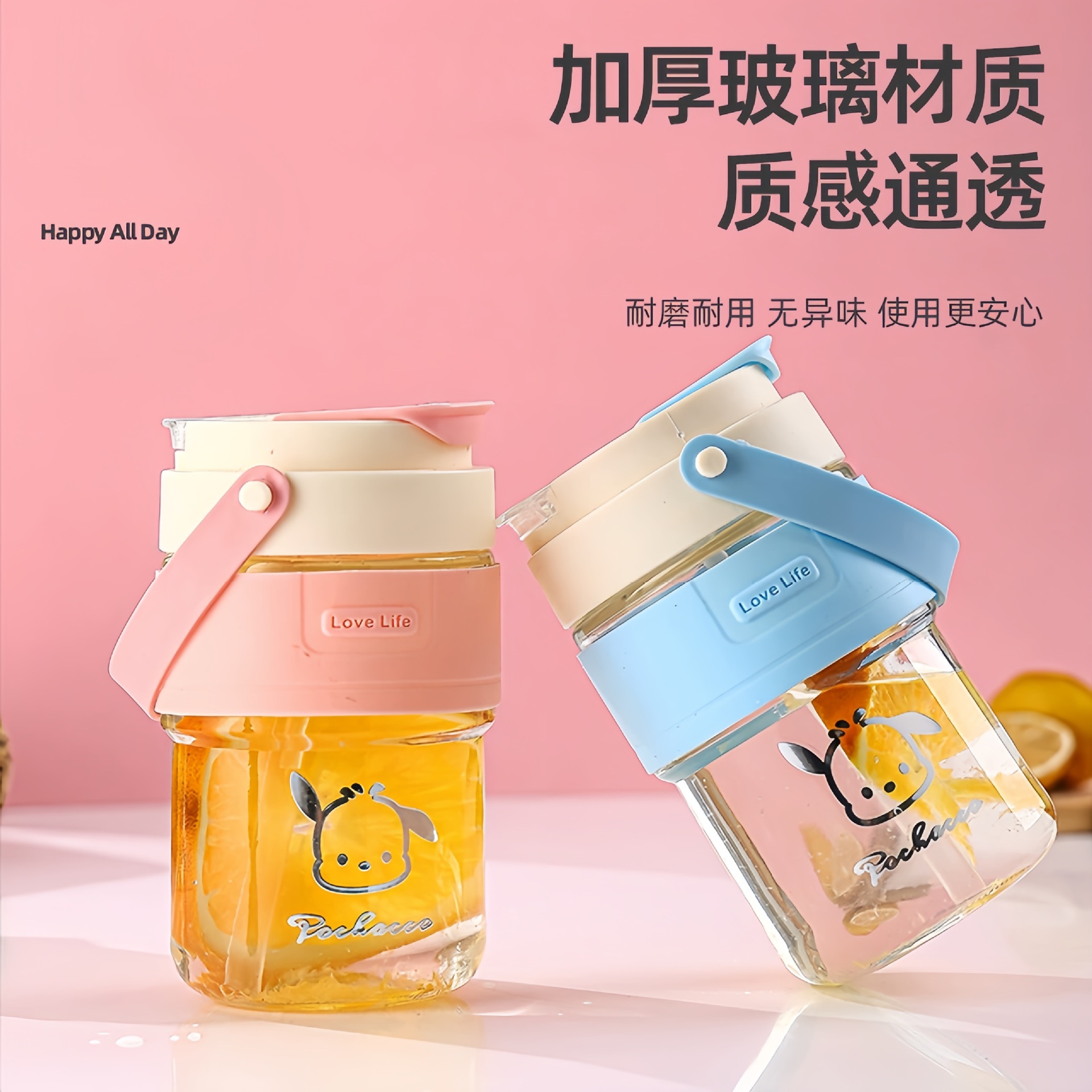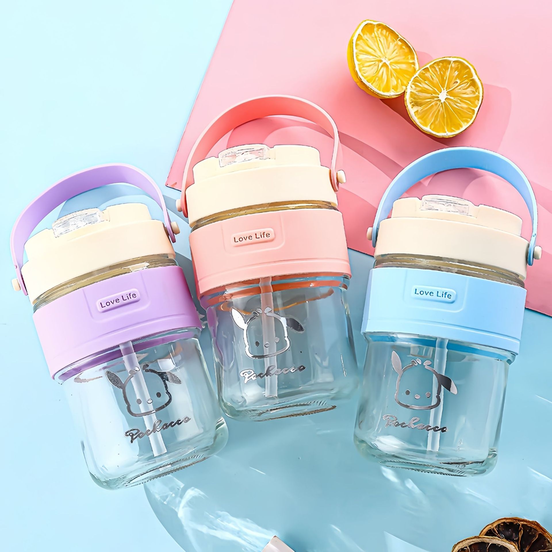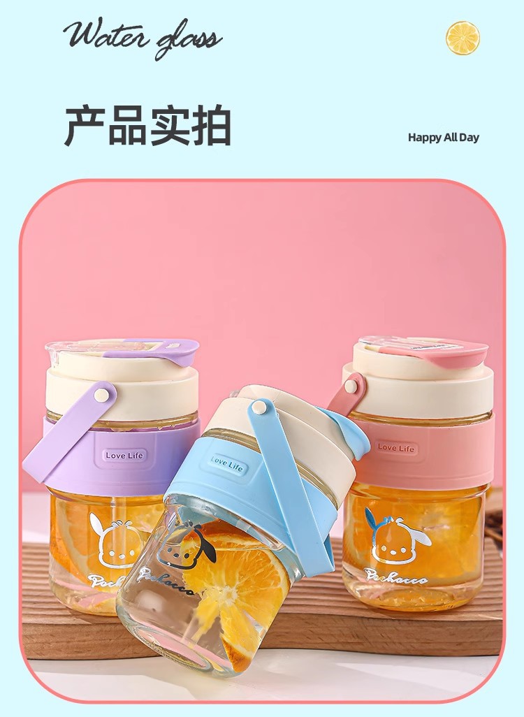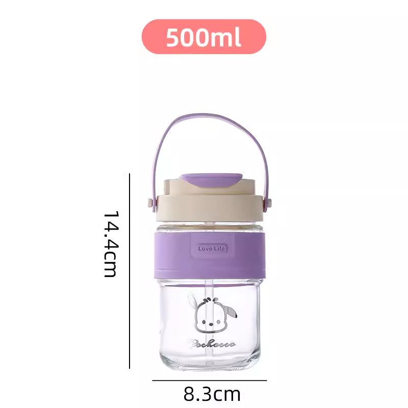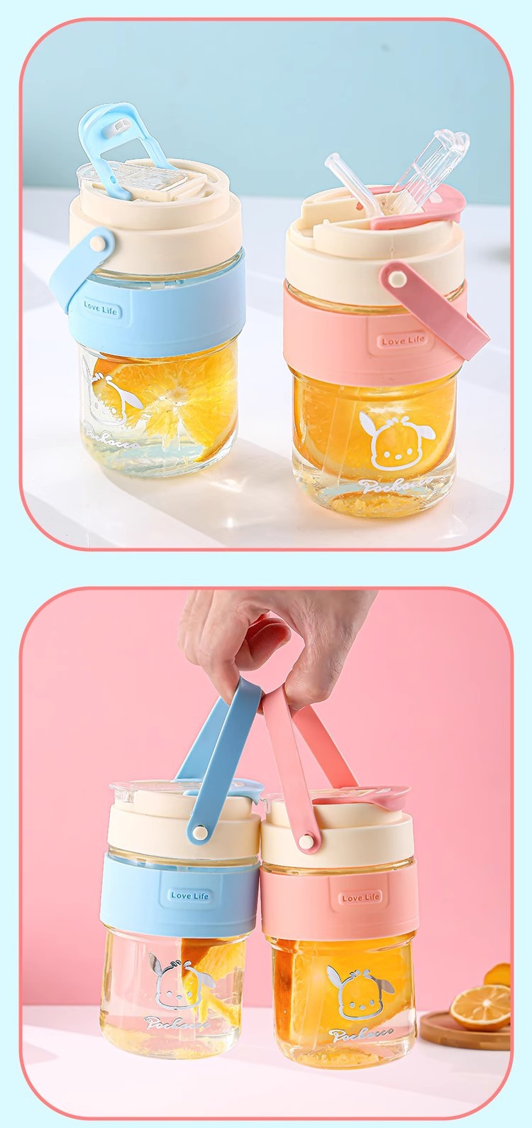 新款玻璃双饮杯网红手提吸管杯高颜值开业礼品地推玻璃水杯便携杯