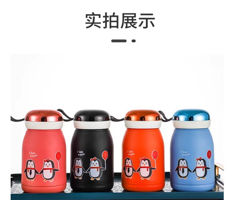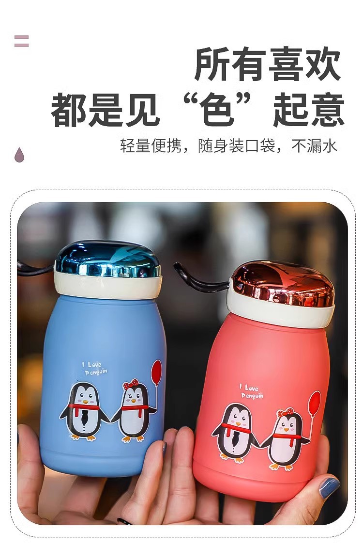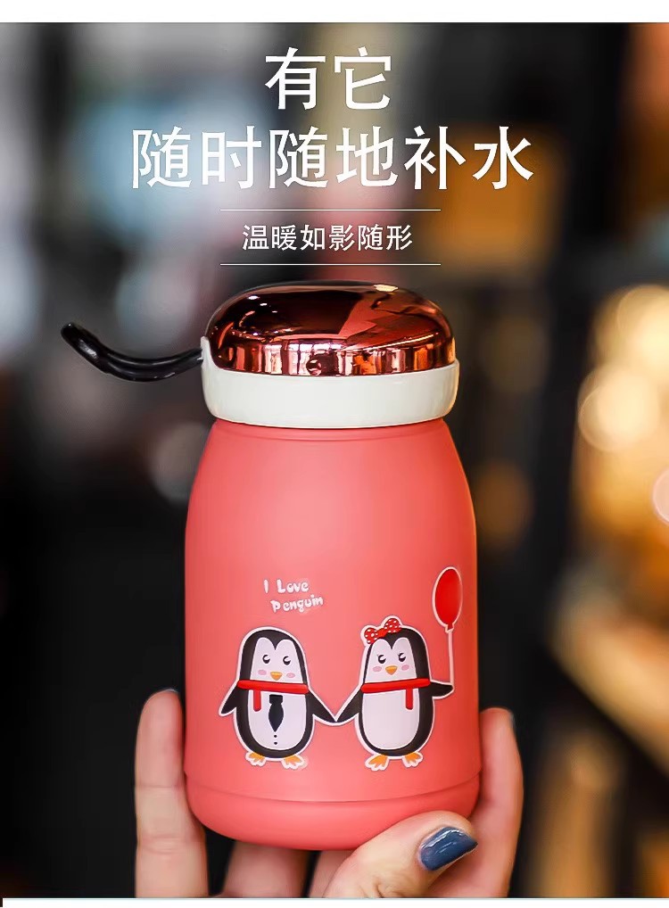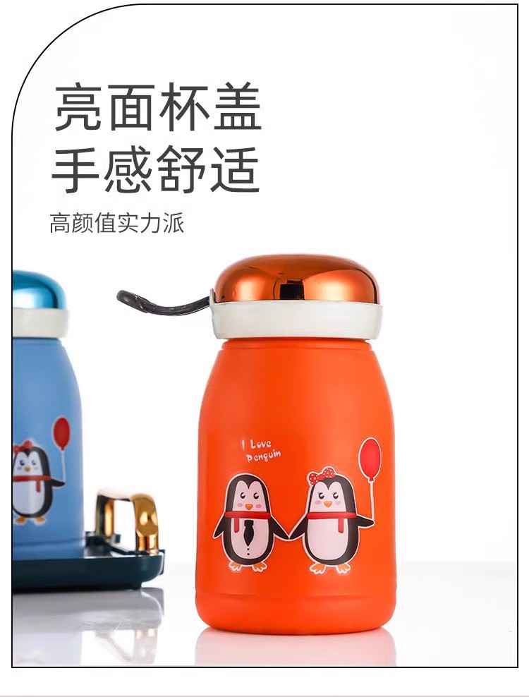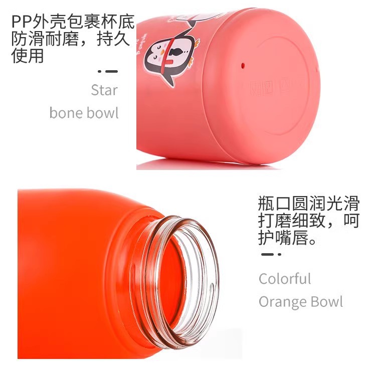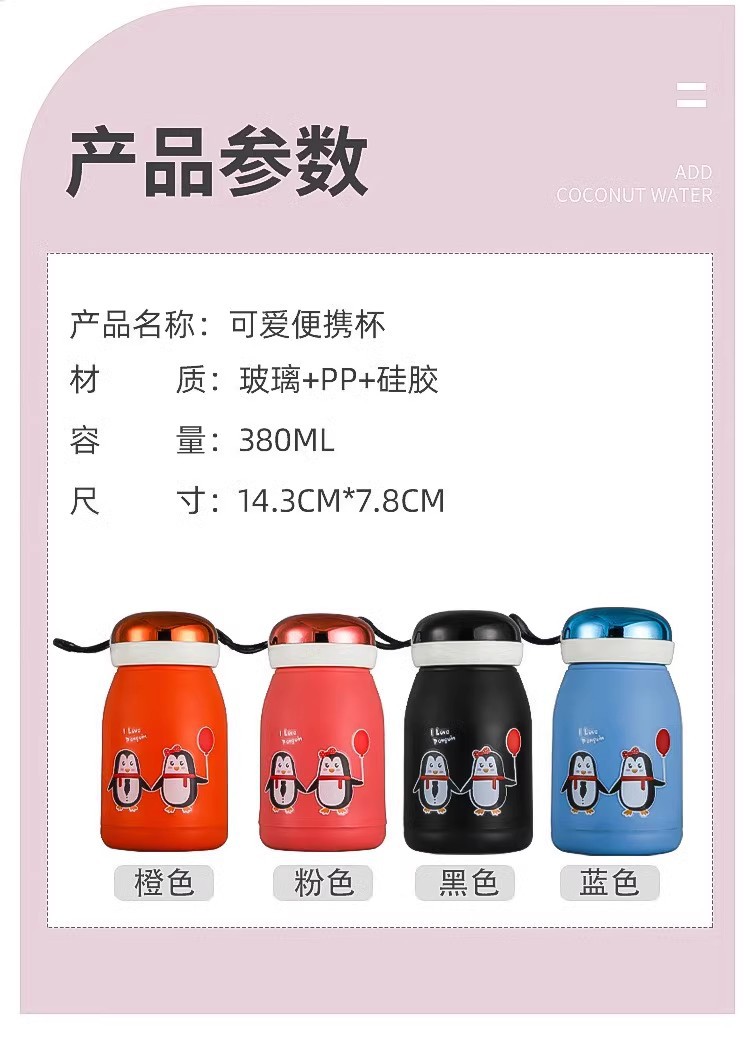 新款玲珑企鹅杯塑料外壳防烫防摔便携玻璃水杯可爱卡通可定制LOGO