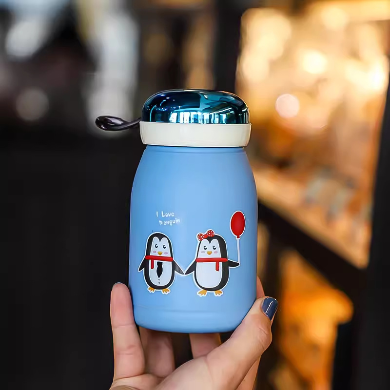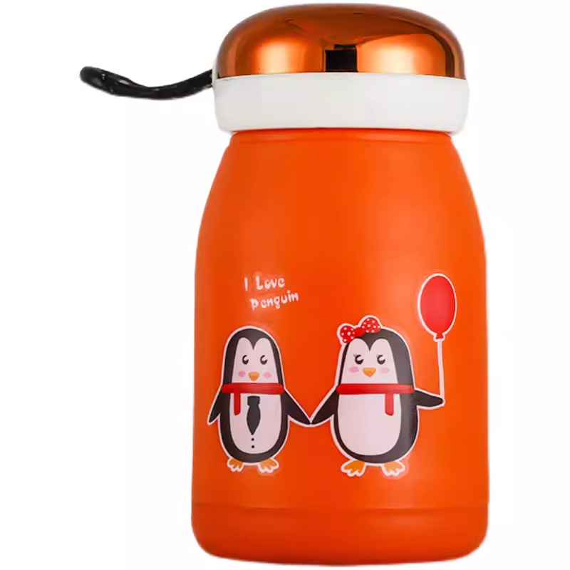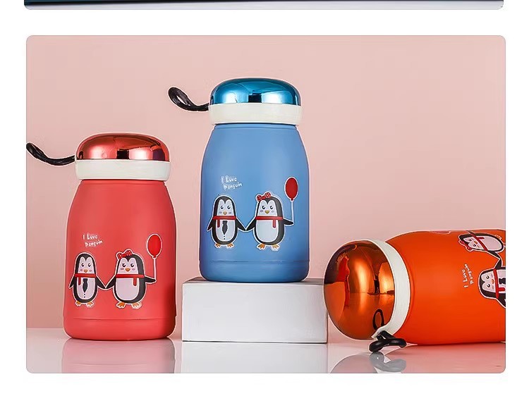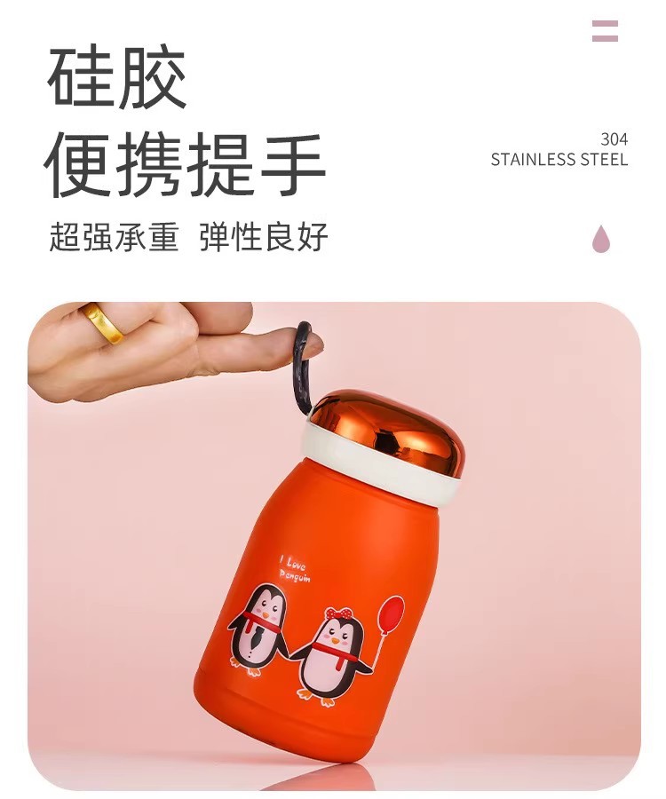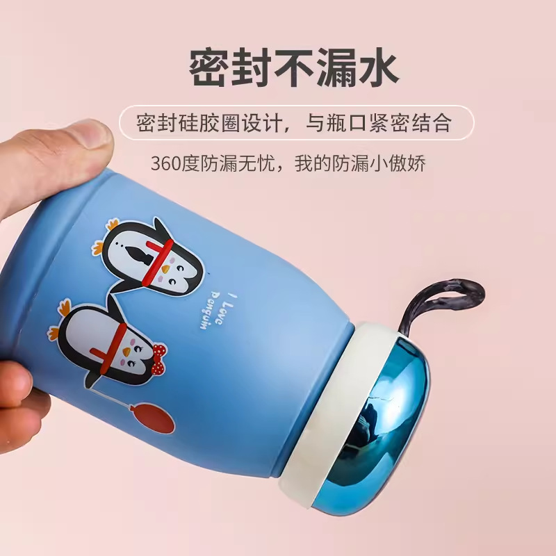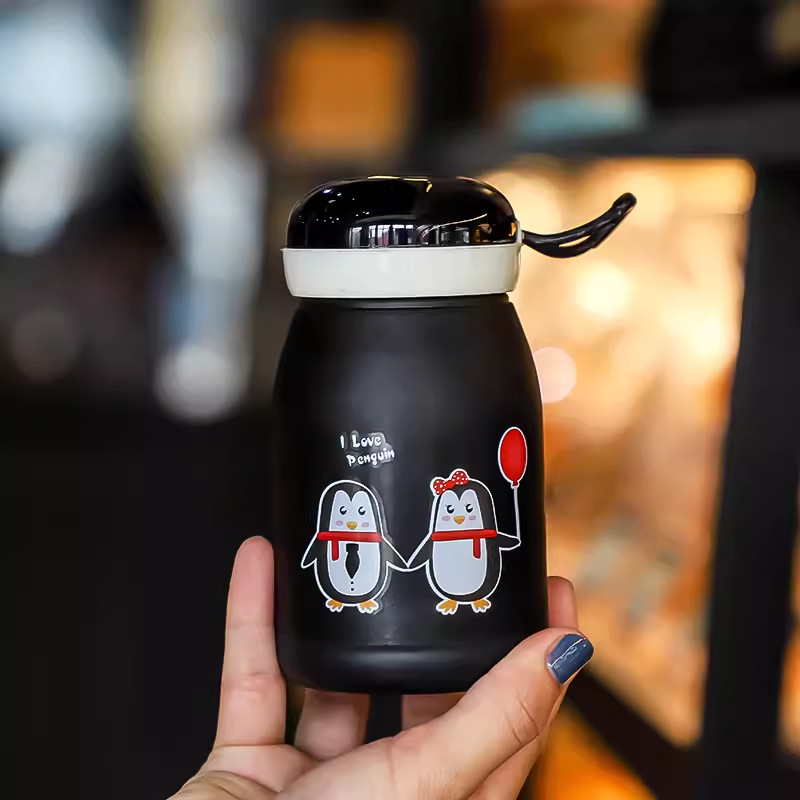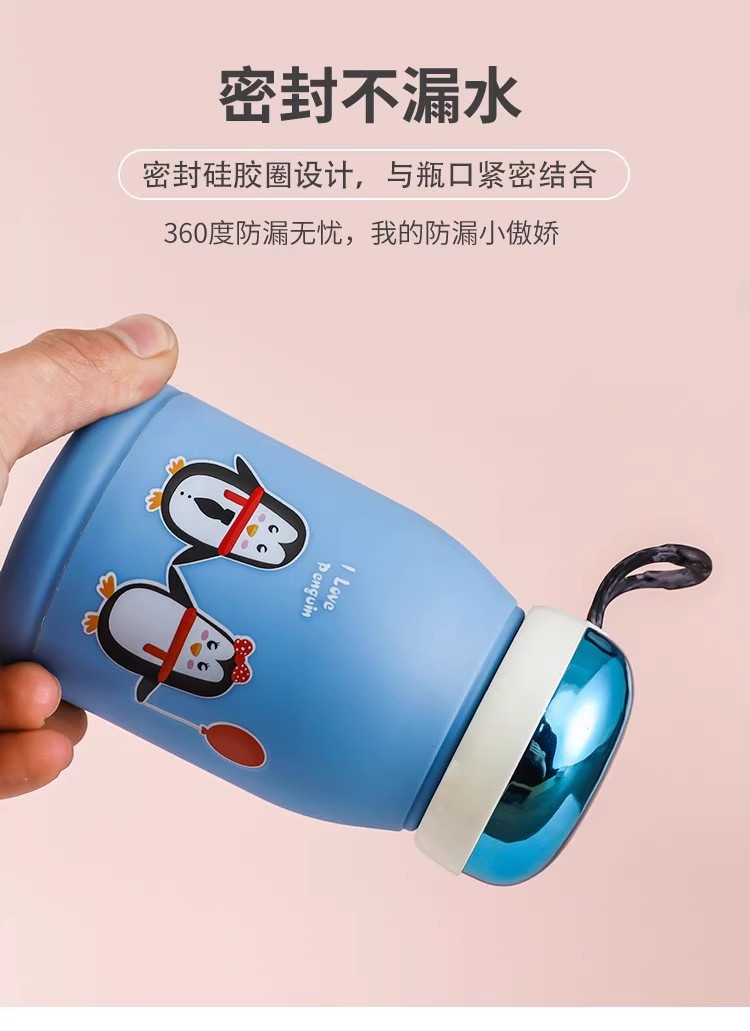 新款玲珑企鹅杯塑料外壳防烫防摔便携玻璃水杯可爱卡通可定制LOGO