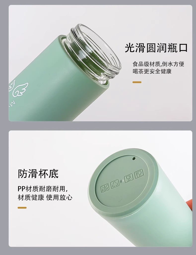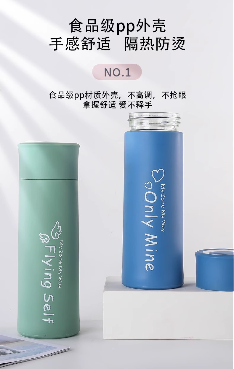 创意新款双层提手玻璃水杯宣传广告礼品杯印制logo玻璃杯