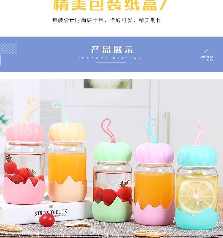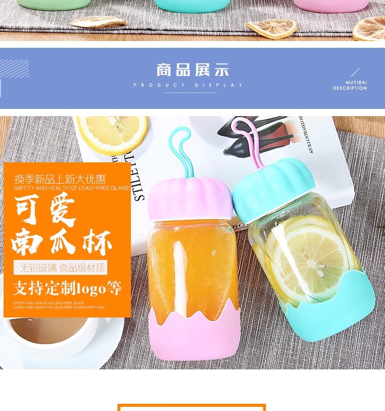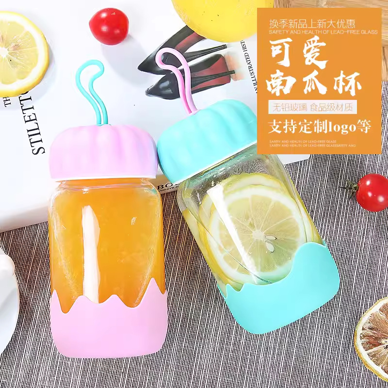 南瓜水杯玻璃 便携创意可爱杯子女学生泡茶杯 蘑菇杯赠礼品广告杯