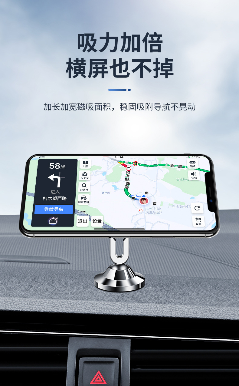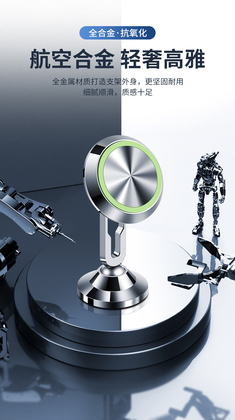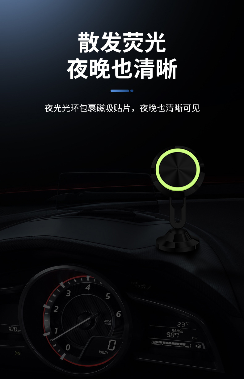 新款车载手机支架双轴360度旋转夜光汽车导航磁吸手机支架印logo