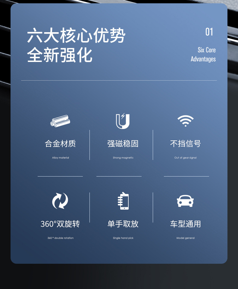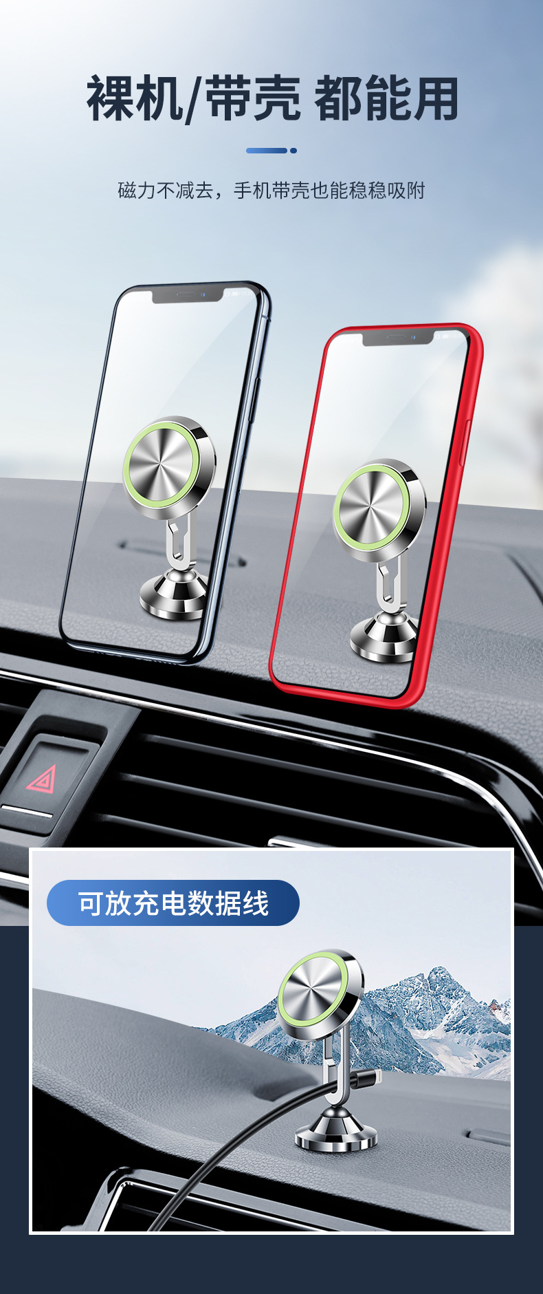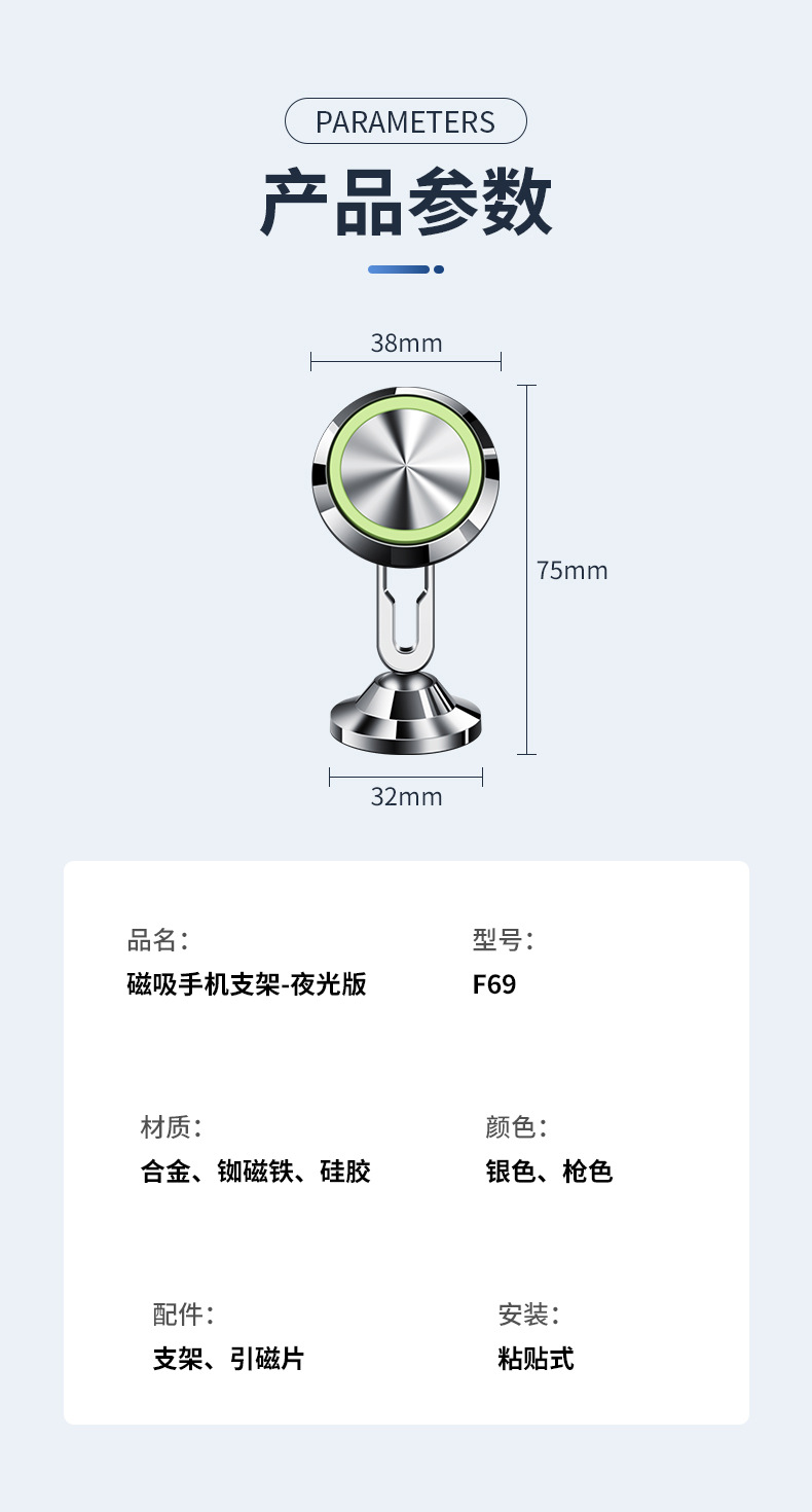 新款车载手机支架双轴360度旋转夜光汽车导航磁吸手机支架印logo