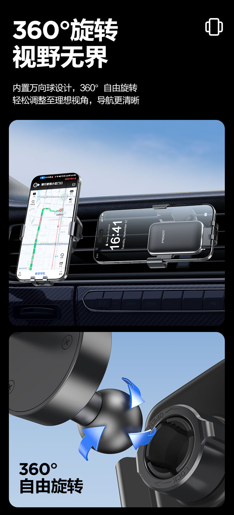品胜汽车车载手机支架出风口铝合金重力支架导航支撑固定支架定制