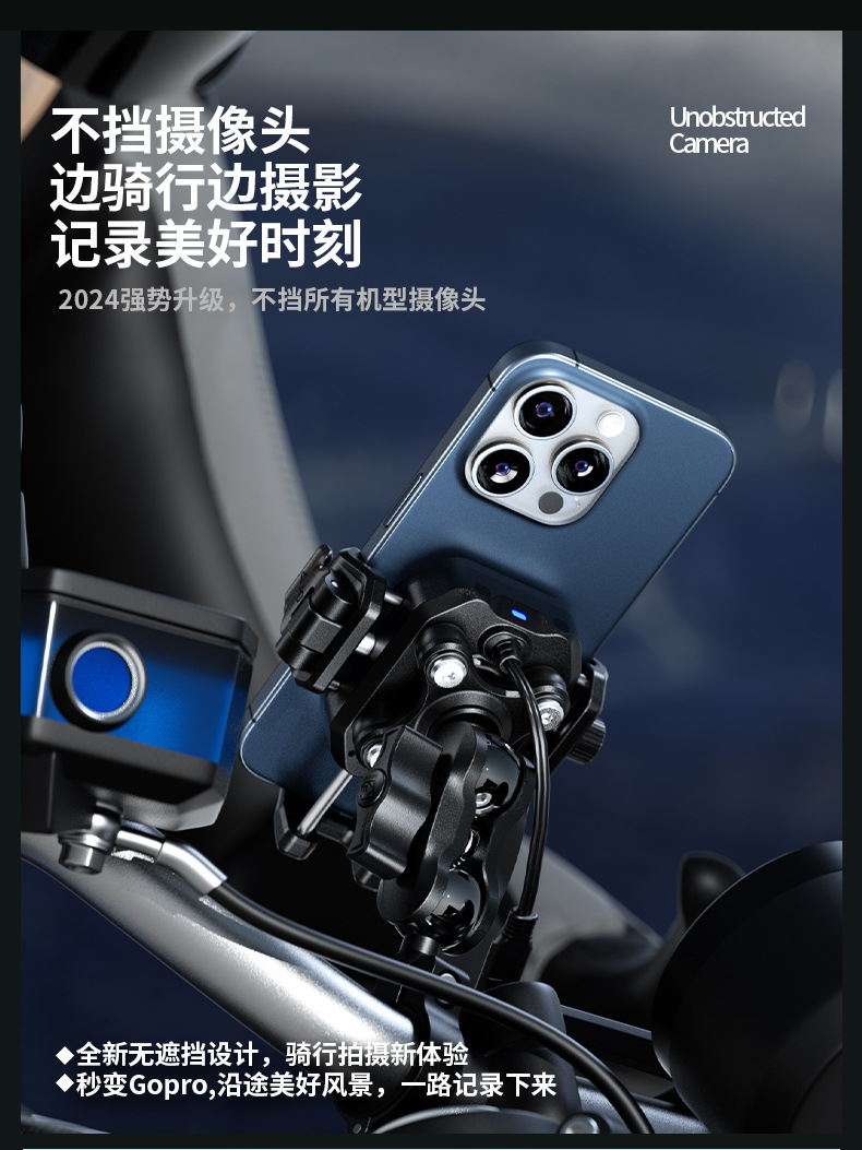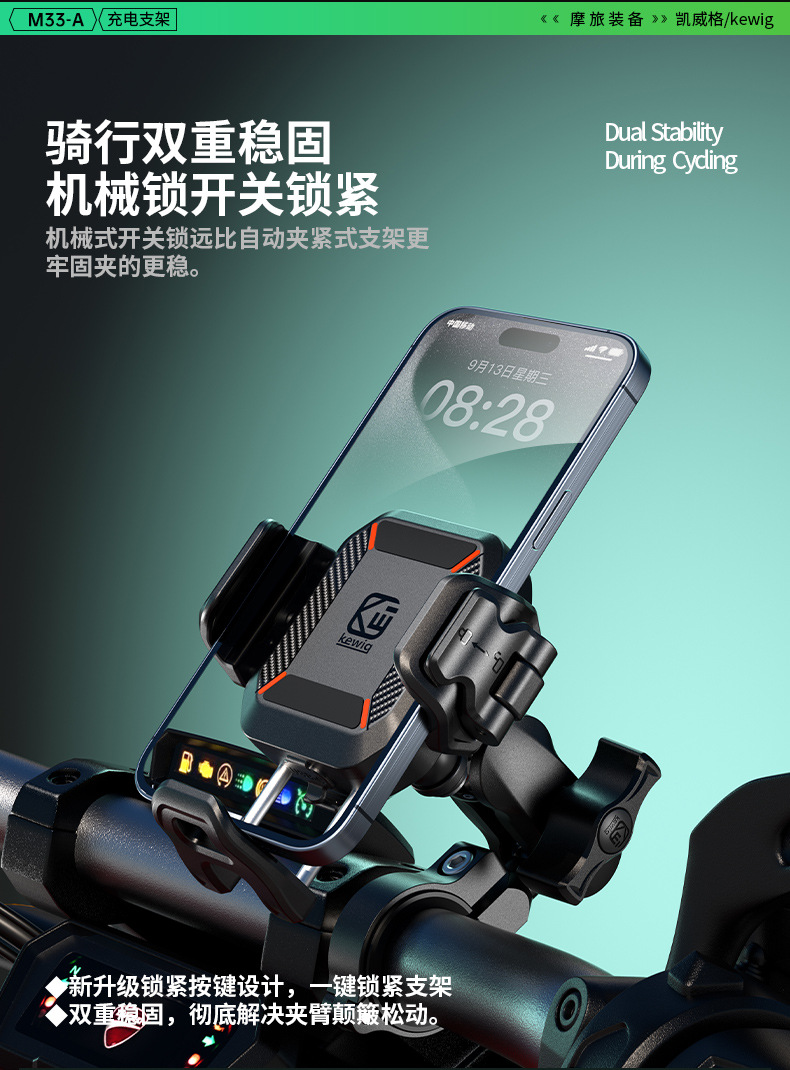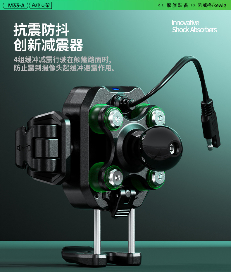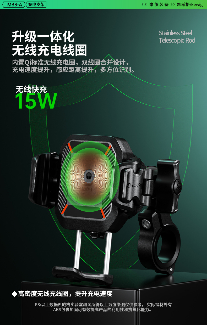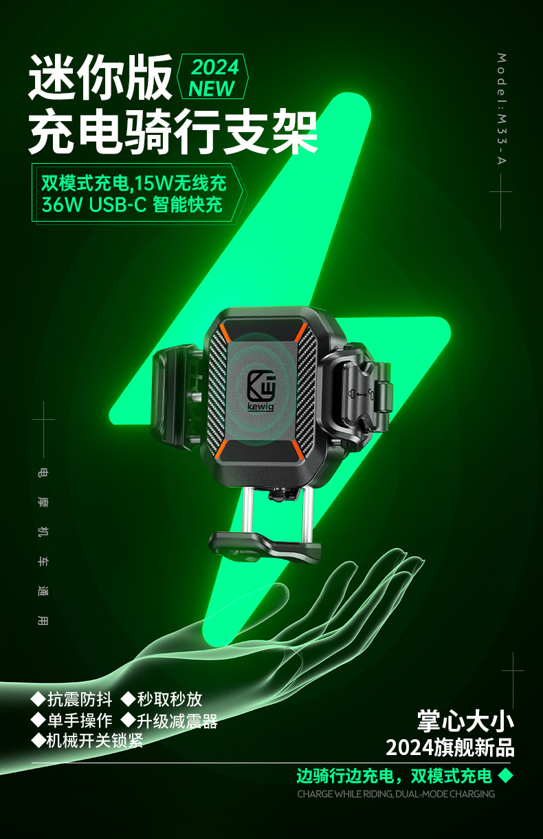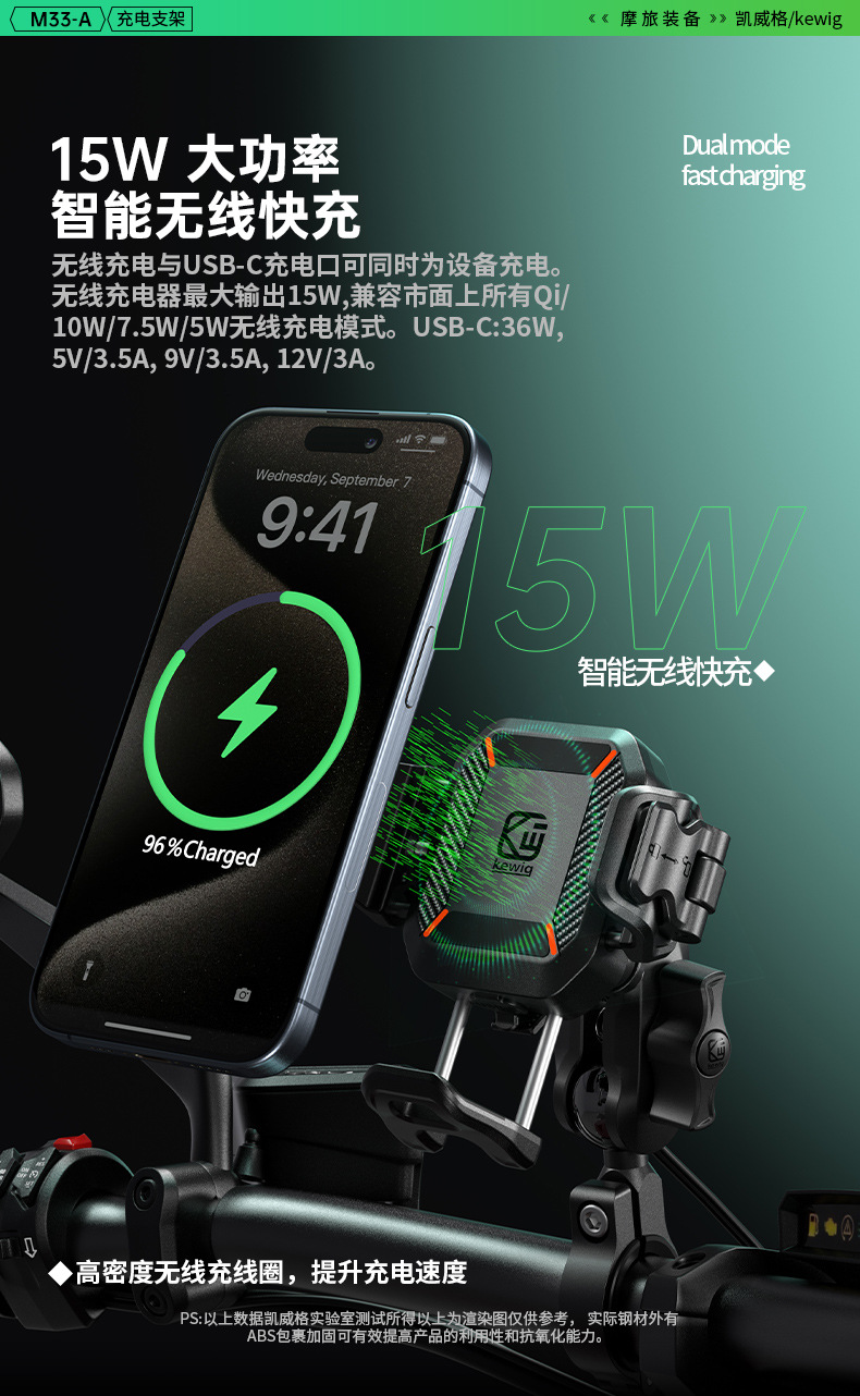 凯威格东南亚跨境热销15W摩托车防震手机支架无线快充充电支架