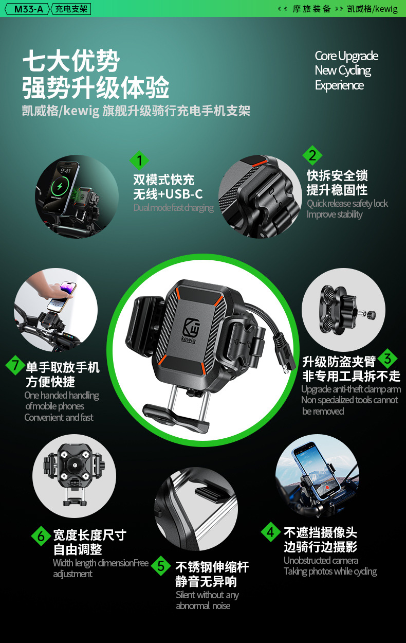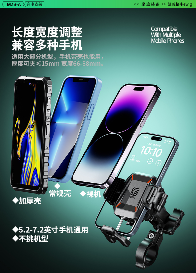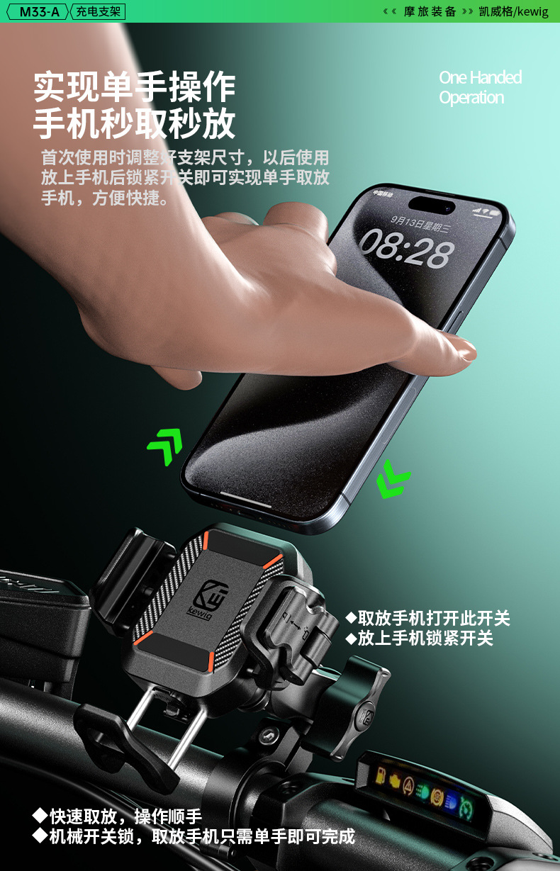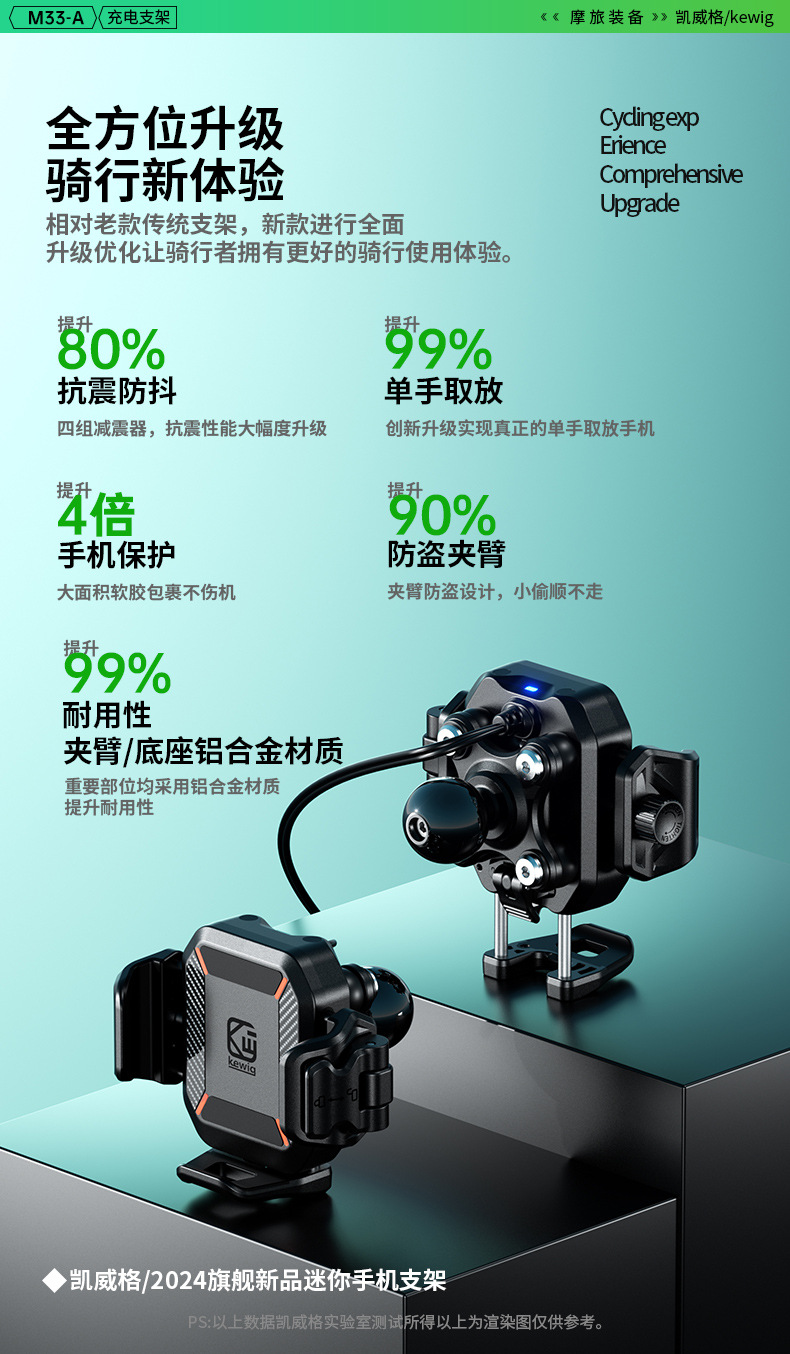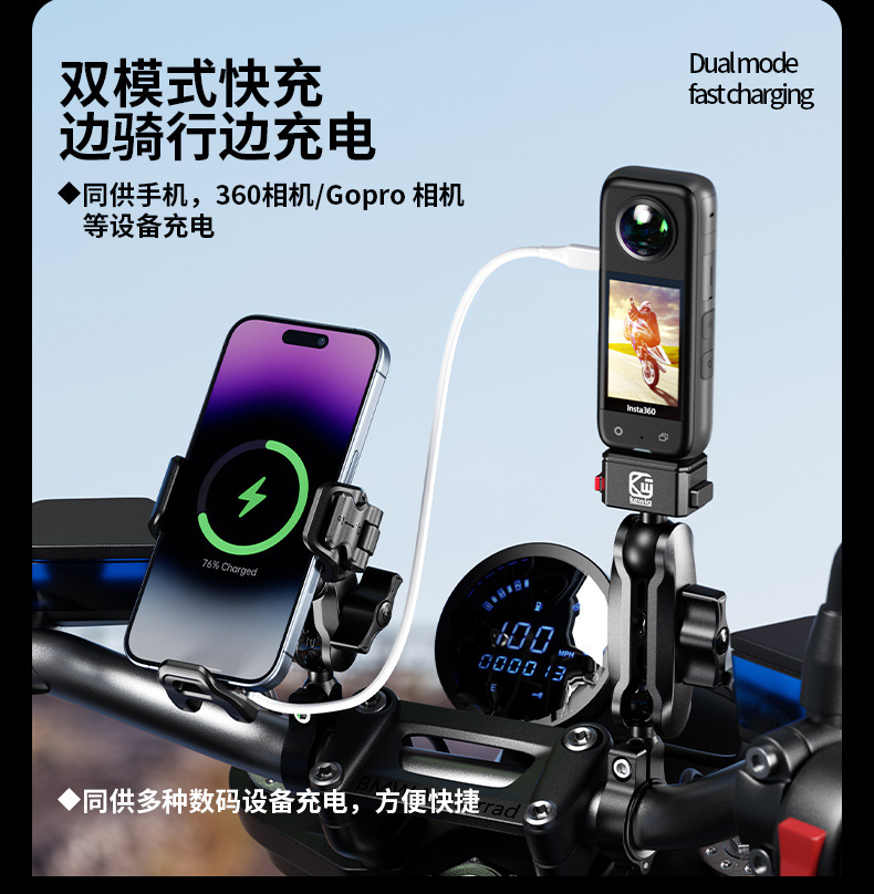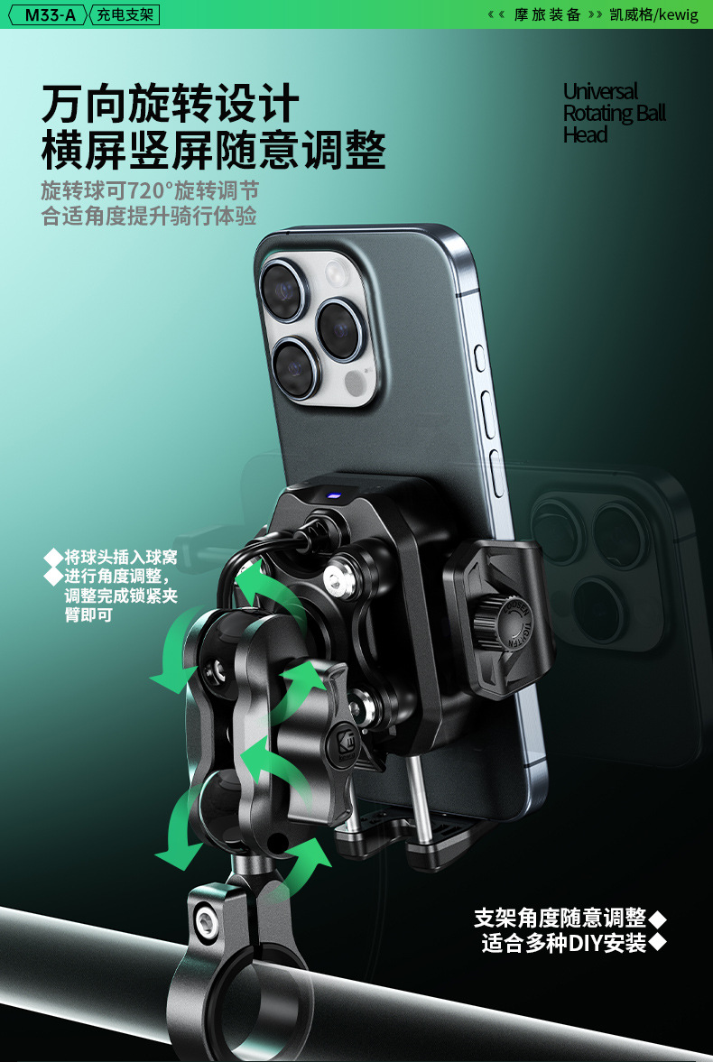 凯威格东南亚跨境热销15W摩托车防震手机支架无线快充充电支架