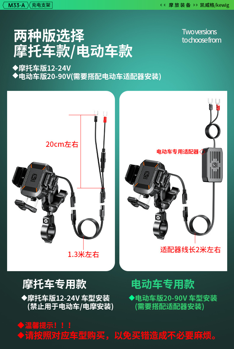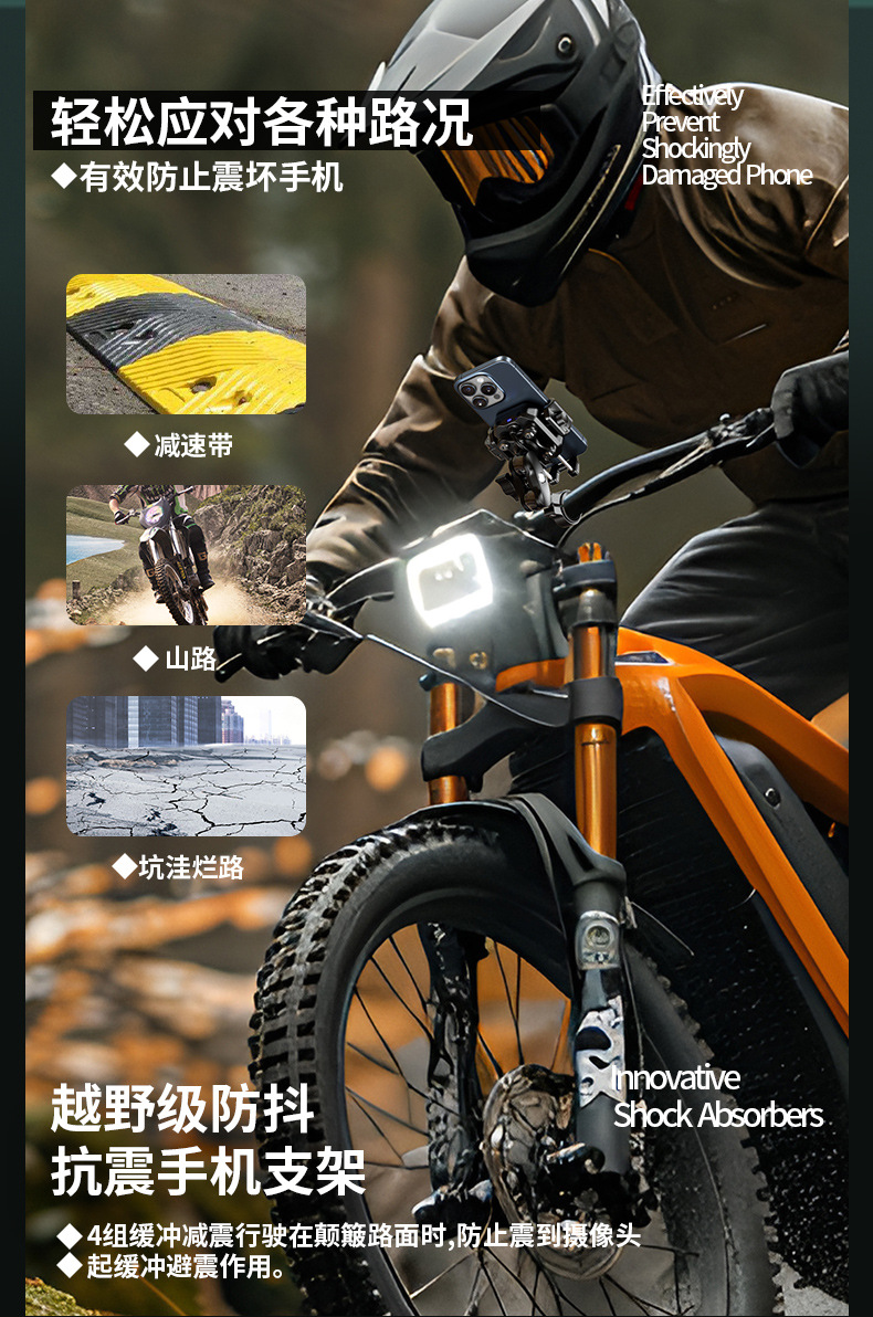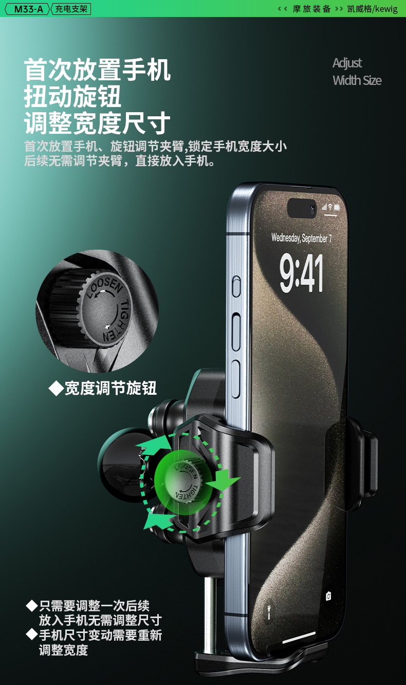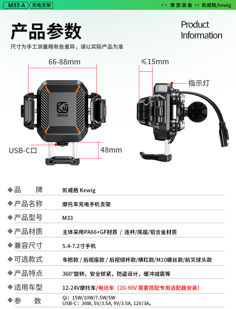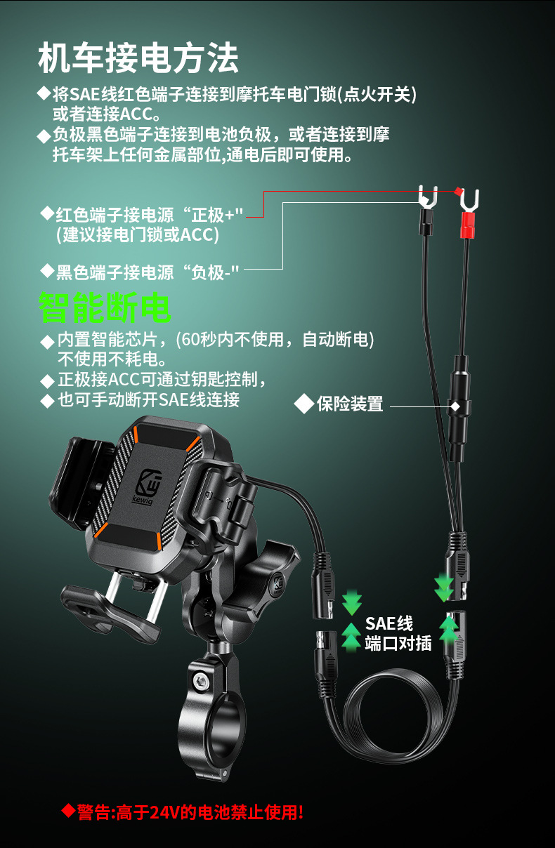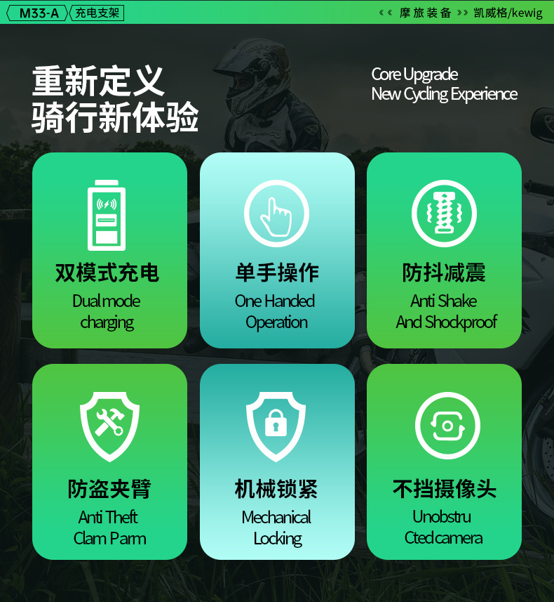 凯威格东南亚跨境热销15W摩托车防震手机支架无线快充充电支架