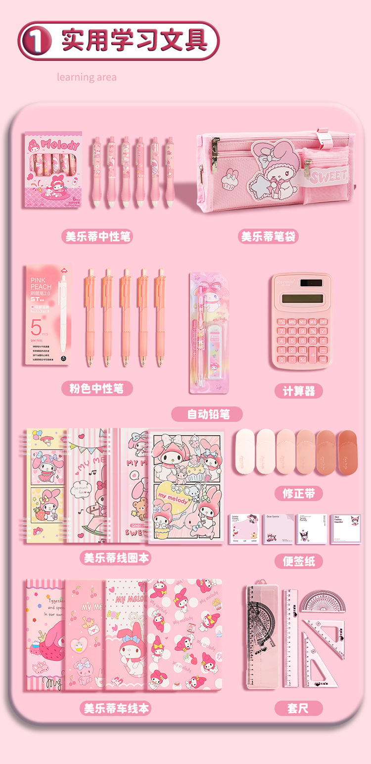 开学季女孩小学生美乐蒂文具礼品伴手礼学生文具生日礼物文具套装