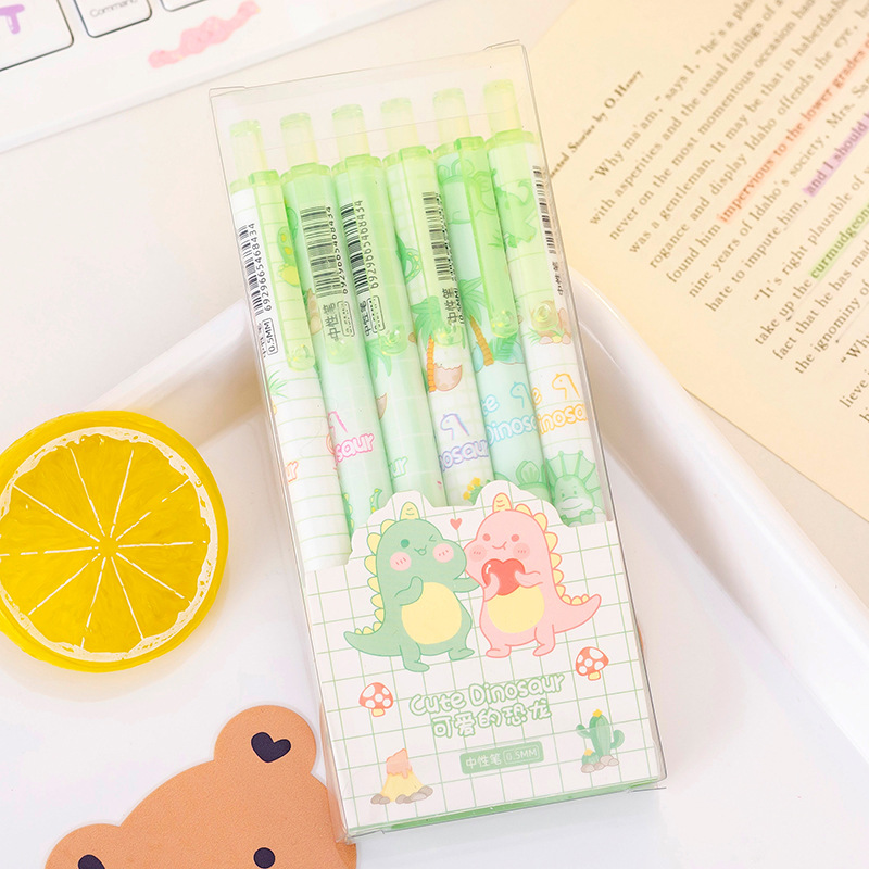 创意卡通按动中性笔套装小学生学习用品黑色水笔高颜值6支0.5批发