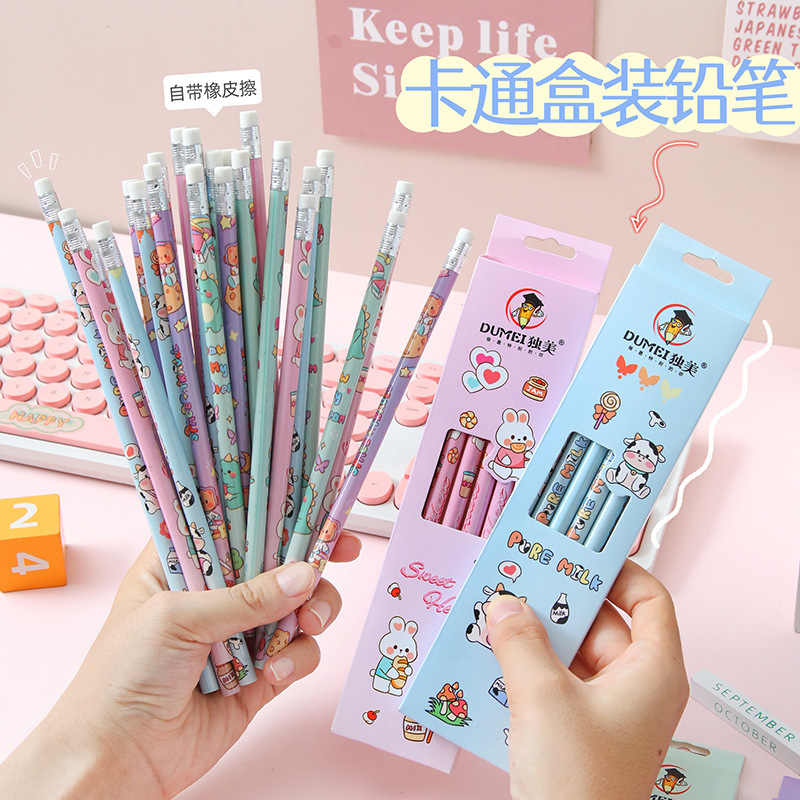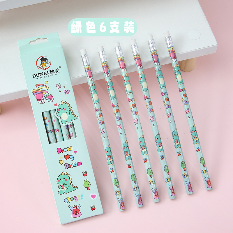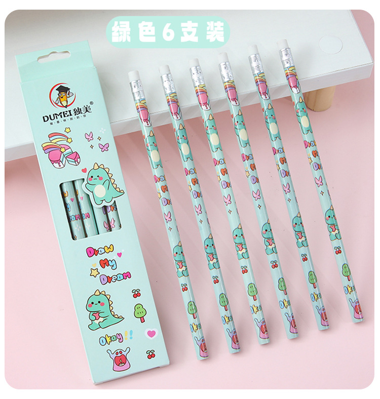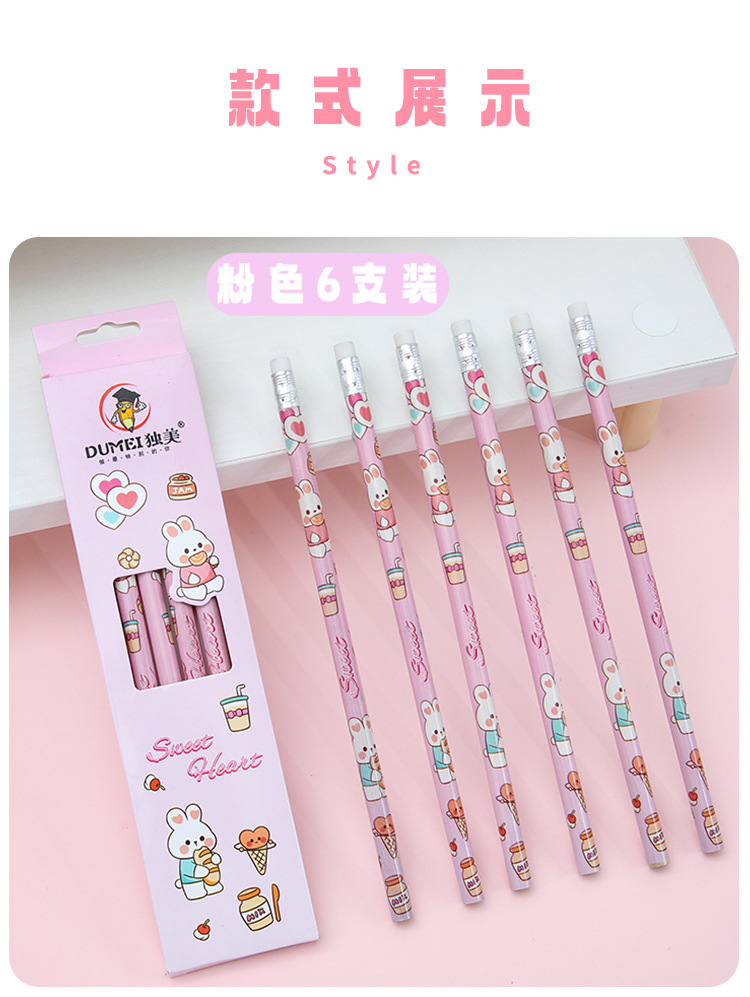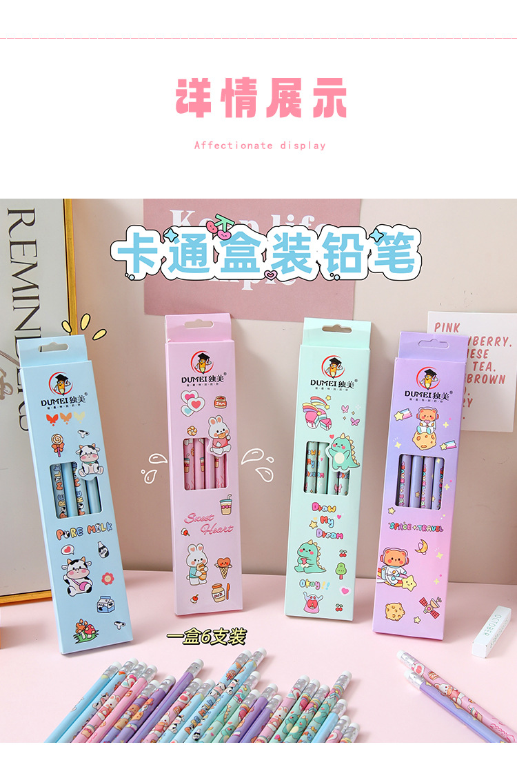 儿童卡通铅笔盒装/6支可爱幼儿园小学生专用高颜值学习文具HB铅笔