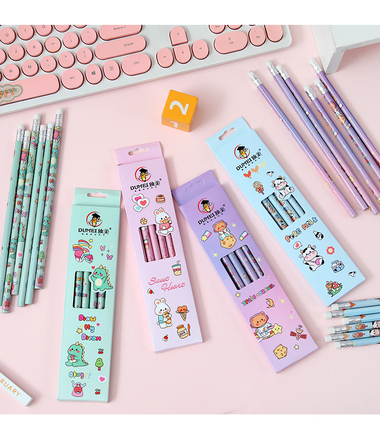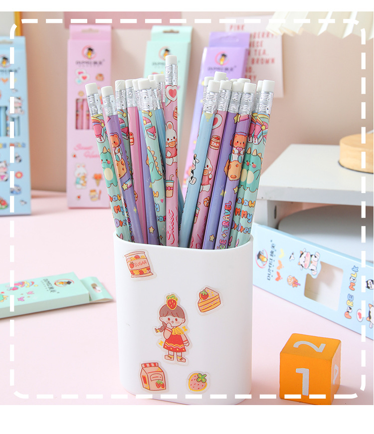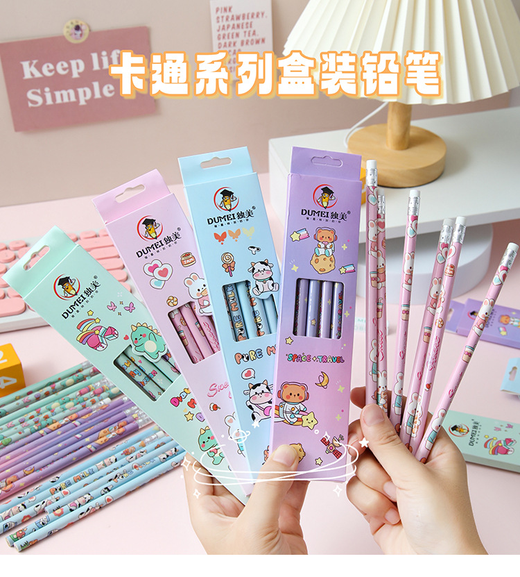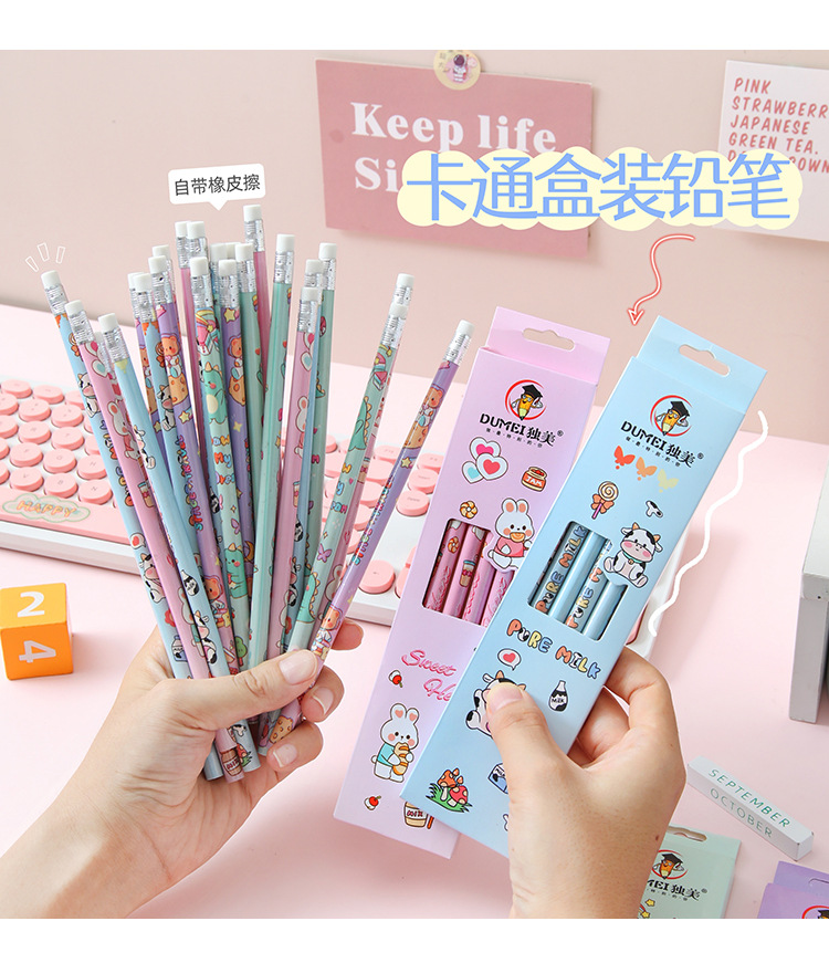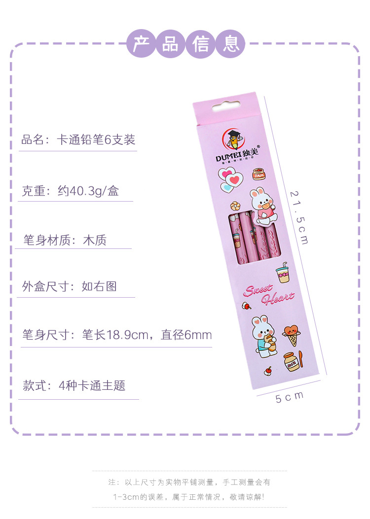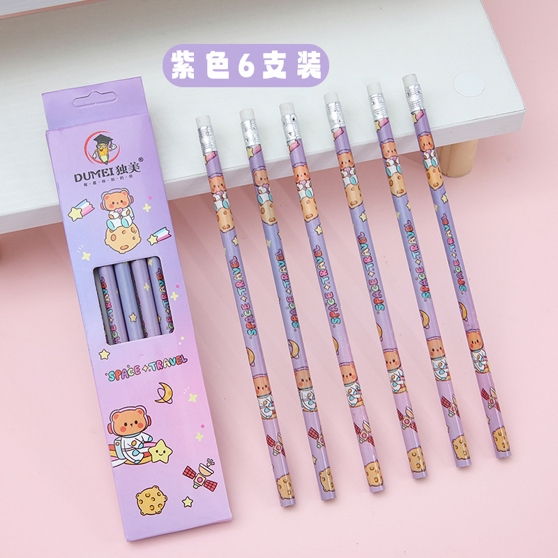 儿童卡通铅笔盒装/6支可爱幼儿园小学生专用高颜值学习文具HB铅笔