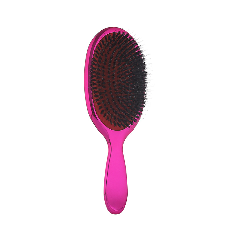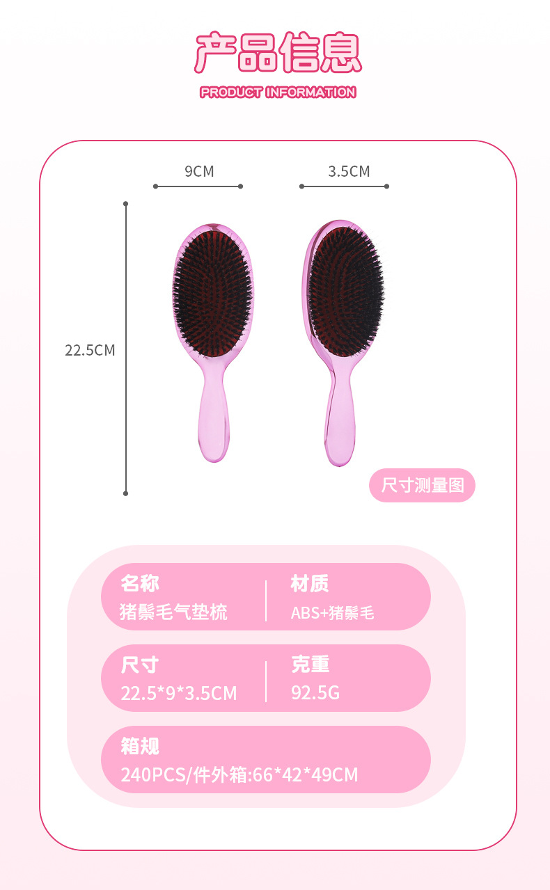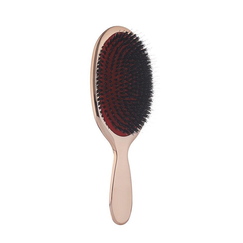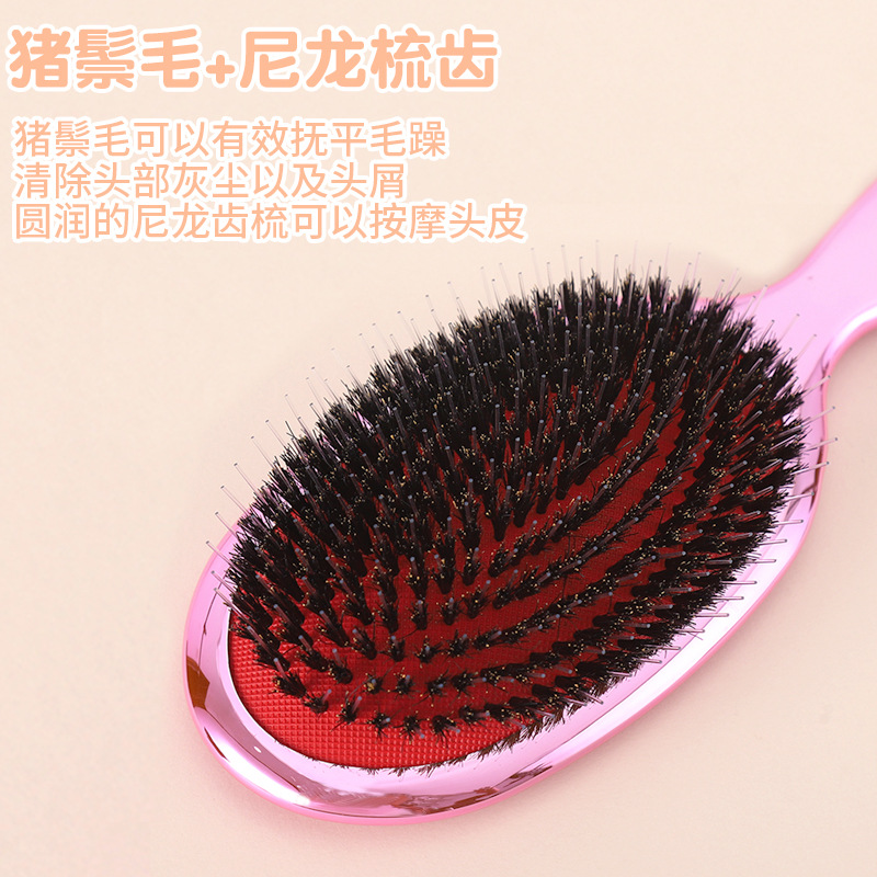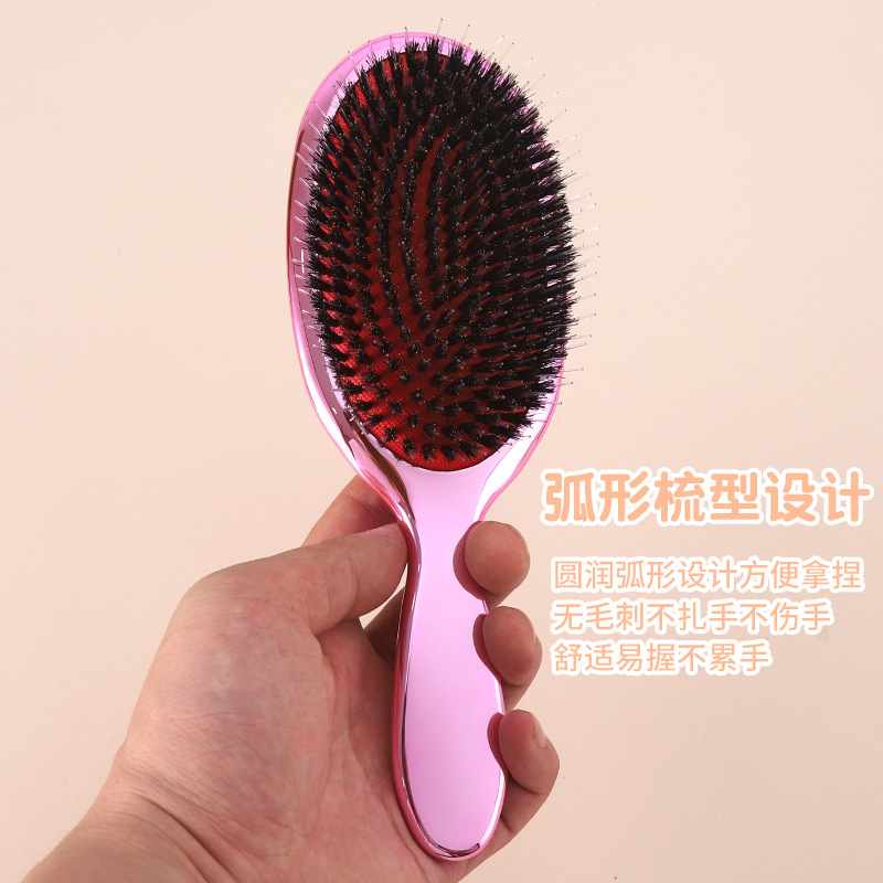 跨境专供电镀椭圆大号猪鬃毛梳美发顺发造型气垫梳头皮按摩梳子